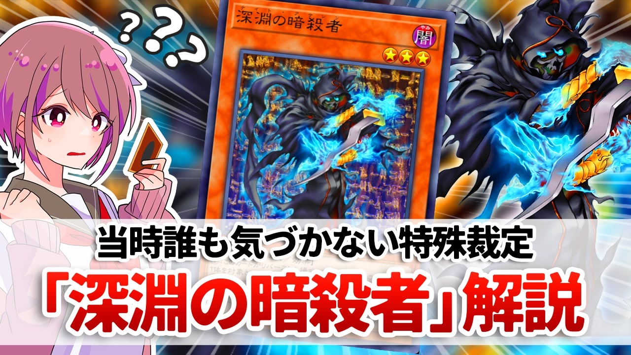 無限コストのコンボ、少年が気づけない特殊裁定、規制からのエラッタなど、語ることは多いのにイマイチ話題に上がらないモンスター、深淵の暗殺者の解説です。<br>まさかエラッタ語のテキストの再録がアレしかないとは・・・。 <br><br>【支援絵】<br>渋柿流太郎さん、ありがとうございます! <a href="https://x.com/K3HfycmTVK20376/status/1934743235299320229" target="_blank" rel="noopener nofollow">https://x.com/K3HfycmTVK20376/status/1934743235299320229</a><br /><br>【素材・制作者様】<br><a href="https://kahaduxxxe.booth.pm/" target="_blank" rel="noopener nofollow">https://kahaduxxxe.booth.pm/</a><br><a href="https://twitter.com/akr_1020" target="_blank" rel="noopener nofollow">https://twitter.com/akr_1020</a><br>※許可を得て使用しております。<br><br>【Twitter】<br><a href="https://twitter.com/pi_ni_ki" target="_blank" rel="noopener nofollow">https://twitter.com/pi_ni_ki</a><br><br>【支援絵アルバム】<br><a href="https://note.com/pix989/n/nf5aab604fd77" target="_blank" rel="noopener nofollow">https://note.com/pix989/n/nf5aab604fd77</a>