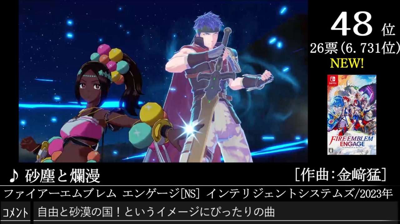 あの憤りの様子、例えるならこう…1500ハマりした後に別の奴がオスイチで<br>コンプしていったみたいな感じか?この金髪兄さん(未プ並感<br><br><span style="color: #a4c2f4;">そういえば前回編集しながら思ったけどラスマゲのあの編曲、<br>チャキチャキした音の粒立ちと破天荒な曲進行、そしてあの舐めるようなメロディ…<br>微レ存、スパボンやる前の福田さんじゃないかと妄想してる。</span><br>---------------------------------<br>スクリーンショット大募集!<br>詳しくは下記投稿フォームのご案内やスクショ状況スプレッドシート等をご確認下さい<br>↓<br><a href="https://ws.formzu.net/dist/S9500351/" target="_blank" rel="noopener nofollow">https://ws.formzu.net/dist/S9500351/</a><br><br>投票結果はこちら<br>↓<br><a href="https://w.atwiki.jp/gamemusicbest100/pages/10214.html" target="_blank" rel="noopener nofollow">https://w.atwiki.jp/gamemusicbest100/pages/10214.html</a><br><br>ご質問等ある際はこちらのページへコメント下さいませ<br>↓<br><a href="https://arutoneriko2.hatenablog.com/entry/2023/12/17/001849" target="_blank" rel="noopener nofollow">https://arutoneriko2.hatenablog.com/entry/2023/12/17/001849</a><br>---------------------------------<br><a href="https://www.nicovideo.jp/watch/sm45086038" class="watch">sm45086038</a>←Part39|今回|Part41(完)→<span style="color: #cc0000;"><strong><i>6月28日(土) 夜7時</i></strong></span> <a href="https://www.nicovideo.jp/mylist/50993049" target="_blank" rel="noopener">mylist/50993049</a><br>---------------------------------<br>↓ショートカット↓<br><br>48位<a href="#" class="seekTime" data-seekTime="0:31" onclick="seekNicoPlayer('#0:31'); return false;">#0:31</a> 47位<a href="#" class="seekTime" data-seekTime="3:31" onclick="seekNicoPlayer('#3:31'); return false;">#3:31</a> 46位<a href="#" class="seekTime" data-seekTime="6:41" onclick="seekNicoPlayer('#6:41'); return false;">#6:41</a> 45位<a href="#" class="seekTime" data-seekTime="11:46" onclick="seekNicoPlayer('#11:46'); return false;">#11:46</a> 44位<a href="#" class="seekTime" data-seekTime="13:38" onclick="seekNicoPlayer('#13:38'); return false;">#13:38</a><br>43位<a href="#" class="seekTime" data-seekTime="18:58" onclick="seekNicoPlayer('#18:58'); return false;">#18:58</a> 42位<a href="#" class="seekTime" data-seekTime="24:02" onclick="seekNicoPlayer('#24:02'); return false;">#24:02</a> 41位<a href="#" class="seekTime" data-seekTime="26:42" onclick="seekNicoPlayer('#26:42'); return false;">#26:42</a> 40位<a href="#" class="seekTime" data-seekTime="29:03" onclick="seekNicoPlayer('#29:03'); return false;">#29:03</a> 39位<a href="#" class="seekTime" data-seekTime="34:43" onclick="seekNicoPlayer('#34:43'); return false;">#34:43</a><br>38位<a href="#" class="seekTime" data-seekTime="37:13" onclick="seekNicoPlayer('#37:13'); return false;">#37:13</a> 37位<a href="#" class="seekTime" data-seekTime="40:26" onclick="seekNicoPlayer('#40:26'); return false;">#40:26</a> 36位<a href="#" class="seekTime" data-seekTime="43:17" onclick="seekNicoPlayer('#43:17'); return false;">#43:17</a> 35位<a href="#" class="seekTime" data-seekTime="45:58" onclick="seekNicoPlayer('#45:58'); return false;">#45:58</a> 34位<a href="#" class="seekTime" data-seekTime="48:23" onclick="seekNicoPlayer('#48:23'); return false;">#48:23</a><br>33位<a href="#" class="seekTime" data-seekTime="51:32" onclick="seekNicoPlayer('#51:32'); return false;">#51:32</a> 32位<a href="#" class="seekTime" data-seekTime="56:26" onclick="seekNicoPlayer('#56:26'); return false;">#56:26</a> 31位<a href="#" class="seekTime" data-seekTime="59:43" onclick="seekNicoPlayer('#59:43'); return false;">#59:43</a> 30位<a href="#" class="seekTime" data-seekTime="63:34" onclick="seekNicoPlayer('#63:34'); return false;">#63:34</a> 29位<a href="#" class="seekTime" data-seekTime="70:19" onclick="seekNicoPlayer('#70:19'); return false;">#70:19</a><br>28位<a href="#" class="seekTime" data-seekTime="74:49" onclick="seekNicoPlayer('#74:49'); return false;">#74:49</a> 27位<a href="#" class="seekTime" data-seekTime="80:02" onclick="seekNicoPlayer('#80:02'); return false;">#80:02</a> 26位<a href="#" class="seekTime" data-seekTime="83:39" onclick="seekNicoPlayer('#83:39'); return false;">#83:39</a> 25位<a href="#" class="seekTime" data-seekTime="86:45" onclick="seekNicoPlayer('#86:45'); return false;">#86:45</a> 24位<a href="#" class="seekTime" data-seekTime="89:26" onclick="seekNicoPlayer('#89:26'); return false;">#89:26</a>