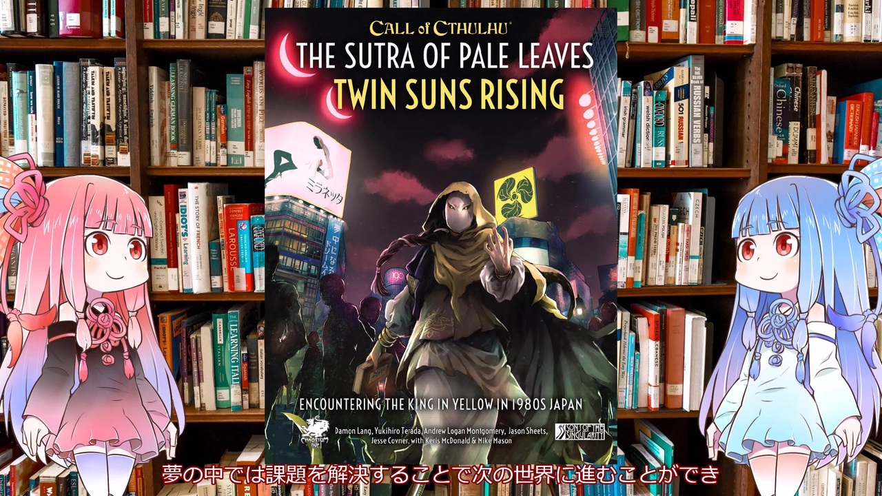 2025年にアメリカ公式ケイオシアム社から発売された未訳の新クトゥルフ神話TRPGのキャンペーンシナリオ集の上巻【青朽葉経典 双陽昇る(The Sutra of Pale Leaves Twin Suns Rising)】を解説します。<br>昭和のバブル時代にあたる1980年代の日本を舞台にしたハスター神話のシナリオ集です。<br>単発またはキャンペーンとして遊べる3本のシナリオが収録されており、奈良、東京、名古屋、神奈川などを舞台にしています。<br>アメリカ目線で日本のバブル時代を再現した結果、日本公式や同人シナリオとも異なる独特の空気感を楽しめます。<br>下巻のキャンペーン集【朽葉経典 カルコサ降臨】と合わせて全6話の長編キャンペーンとしても遊べます<br><br>【いいね】ボタンを押すとシナリオ集に登場するハスターのオリジナル呪文の内容を閲覧できます<br><br>夢喰い:仏教と交通事故と夢の法隆寺シティーシナリオ<br>ファンフィクション:コミケと漫画と魔法少女の東京シティーシナリオ<br>東京蒼白仮面:ヤクザと刑事と妖怪の歌舞伎町シティーシナリオ<br><br>【青朽葉経典 双陽昇る(The Sutra of Pale Leaves Twin Suns Rising販売サイトDrivethrurpg】<br><a href="https://www.drivethrurpg.com/en/product/522152/call-of-cthulhu-the-sutra-of-pale-leaves-twin-suns-rising?src=hottest_filtered" target="_blank" rel="noopener nofollow">https://www.drivethrurpg.com/en/product/522152/call-of-cthulhu-the-sutra-of-pale-leaves-twin-suns-rising?src=hottest_filtered</a><br><br>【青朽葉経典 カルコサ降臨 下巻 解説動画】<br><a href="https://www.nicovideo.jp/watch/sm45560595" target="_blank" rel="noopener nofollow">https://www.nicovideo.jp/watch/sm45560595</a><br><br>【黄昏の天使 解説動画】<br><a href="https://www.nicovideo.jp/watch/sm41110929" target="_blank" rel="noopener nofollow">https://www.nicovideo.jp/watch/sm41110929</a><br><br>【ディスコ・インフェルノ 解説動画】<br><a href="https://www.nicovideo.jp/watch/sm43175271" target="_blank" rel="noopener nofollow">https://www.nicovideo.jp/watch/sm43175271</a><br><br>【シークレット・オブ・ジャパン 解説動画】<br><a href="https://www.nicovideo.jp/watch/sm42664531" target="_blank" rel="noopener nofollow">https://www.nicovideo.jp/watch/sm42664531</a><br><br>【ニャルラトホテップの仮面 解説動画】<br><a href="https://www.nicovideo.jp/watch/sm41587148" target="_blank" rel="noopener nofollow">https://www.nicovideo.jp/watch/sm41587148</a><br><br>【恐怖の子供達 解説動画】<br><a href="https://www.nicovideo.jp/watch/sm41713675" target="_blank" rel="noopener nofollow">https://www.nicovideo.jp/watch/sm41713675</a><br><br><br><a target="_blank" href="https://qa.nicovideo.jp/faq/show/19424?site_domain=default" style="font-size: 13px;color: #657586; text-decoration: underline; line-height: 1.4">この動画は投稿者によって修正されました</a>