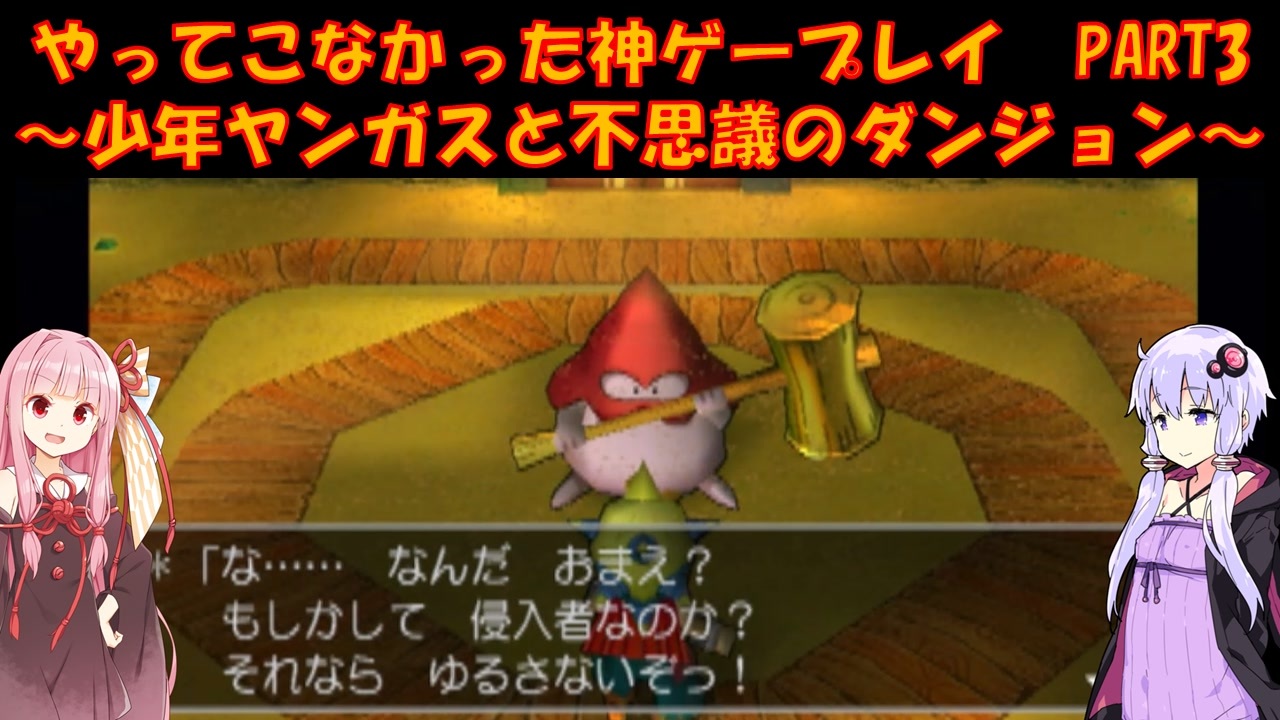 PS2 少年ヤンガスと不思議のダンジョンをプレイ<br>ゆかりさんはメジャーじゃないゲームをやる俺カッケー族だったのでドラクエをやったことがありませんでした(DSのⅤ以外)<br><br>茜:キノコと比べると消極的やな<br>ゆ:そのデカい木づちは飾りかぁ~?<br><br>PART1:<a href="https://www.nicovideo.jp/watch/sm45104666" target="_blank" rel="noopener nofollow">https://www.nicovideo.jp/watch/sm45104666</a><br><br>各DQシリーズ第1回リンク<br>DQ1:<a href="https://www.nicovideo.jp/watch/sm41819145" target="_blank" rel="noopener nofollow">https://www.nicovideo.jp/watch/sm41819145</a><br>DQ2:<a href="https://www.nicovideo.jp/watch/sm41895278" target="_blank" rel="noopener nofollow">https://www.nicovideo.jp/watch/sm41895278</a><br>DQ3:<a href="https://www.nicovideo.jp/watch/sm42034398" target="_blank" rel="noopener nofollow">https://www.nicovideo.jp/watch/sm42034398</a><br>DQ4:<a href="https://www.nicovideo.jp/watch/sm42520974" target="_blank" rel="noopener nofollow">https://www.nicovideo.jp/watch/sm42520974</a><br>DQ5:<a href="https://www.nicovideo.jp/watch/sm42848575" target="_blank" rel="noopener nofollow">https://www.nicovideo.jp/watch/sm42848575</a><br>DQ6:<a href="https://www.nicovideo.jp/watch/sm43080264" target="_blank" rel="noopener nofollow">https://www.nicovideo.jp/watch/sm43080264</a><br>DQ7:<a href="https://www.nicovideo.jp/watch/sm43851863" target="_blank" rel="noopener nofollow">https://www.nicovideo.jp/watch/sm43851863</a><br>DQ8:<a href="https://www.nicovideo.jp/watch/sm44676588" target="_blank" rel="noopener nofollow">https://www.nicovideo.jp/watch/sm44676588</a><br>DQM1:<a href="https://www.nicovideo.jp/watch/sm43525709" target="_blank" rel="noopener nofollow">https://www.nicovideo.jp/watch/sm43525709</a><br>DQMCH:<a href="https://www.nicovideo.jp/watch/sm44443421" target="_blank" rel="noopener nofollow">https://www.nicovideo.jp/watch/sm44443421</a><br><br>動画内で使用させていただいた素材<br>【イラスト】<br>結月ゆかり→ペテン師様:<a href="https://seiga.nicovideo.jp/seiga/im5494168" target="_blank" rel="noopener nofollow">https://seiga.nicovideo.jp/seiga/im5494168</a><br>琴葉茜→ユメのオワリ様:<a href="https://seiga.nicovideo.jp/seiga/im10706241" target="_blank" rel="noopener nofollow">https://seiga.nicovideo.jp/seiga/im10706241</a><br><br>【音声】<br>A.I.Voice:琴葉茜<br><a href="https://aivoice.jp/product/kotonoha/" target="_blank" rel="noopener nofollow">https://aivoice.jp/product/kotonoha/</a><br><br>A.I.Voice:結月ゆかり<br><a href="https://aivoice.jp/product/yukari/" target="_blank" rel="noopener nofollow">https://aivoice.jp/product/yukari/</a><br><br>【その他素材】<br><br>この動画で利用している株式会社スクウェア・エニックスを代表とする共同著作者が権利を所有する著作物及びスギヤマ工房有限会社が権利を所有する楽曲の転載・配布は禁止いたします。<br>© 2006 ARMOR PROJECT/BIRD STUDIO/SQUARE ENIX All Rights Reserved.<br>© SUGIYAMA KOBO
