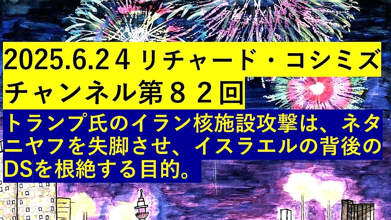 <span style="color: #cc0000;"><strong>◐『「 リチャード・コシミズ・チャンネル 」⦅ 第82回放送 ⦆⦅ 暫定版 ⦆』</strong></span><br><br><span style="color: #ff0000;"><strong> 「『 ドナルド・トランプ氏 』の『 イラン核施設攻撃 』は、『 ネタニヤフ 』を『 失脚 』させ、『 イスラエル 』の『 背後 』の『 DEEP STATE 』を『 根絶 』する『 目的 』」</strong></span><br><br> <span style="color: #38761d;"><strong>◐『 リチャード・コシミズ・チャンネル⦅ ニコニコ チャンネル ⦆』</strong></span><br> <span style="color: #0000ff;"><strong><a href="https://ch.nicovideo.jp/richardkoshimizu" target="_blank" rel="noopener nofollow">https://ch.nicovideo.jp/richardkoshimizu</a></strong></span><br><br> <span style="color: #38761d;"><strong>◐『 リチャード・コシミズ「 ニコニコ生放送⦅ LIVE ⦆」』</strong></span><br> <span style="color: #0000ff;"><strong><a href="https://www.nicovideo.jp/user/120930363/live_programs" target="_blank" rel="noopener nofollow">https://www.nicovideo.jp/user/120930363/live_programs</a></strong></span><br><br> <span style="color: #38761d;"><strong>◐『「 リチャード・コシミズ 講演会 」公式「 動画ギャラリー 」</strong></span><span style="color: #ff0000;"><strong>⦅ 最新動画 ⦆⦅ YouTube版 ⦆</strong></span><span style="color: #38761d;"><strong>』</strong></span><br> <span style="color: #0000ff;"><strong><a href="https://www.youtube.com/@richardkoshimizu-video-gallery" target="_blank" rel="noopener nofollow">https://www.youtube.com/@richardkoshimizu-video-gallery</a></strong></span><br><br>