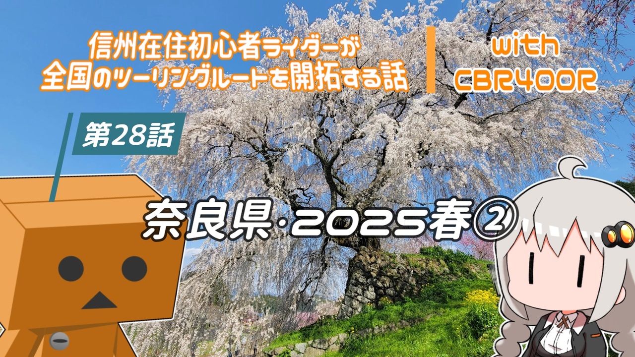 前回からのつづき回。パンクにめげず再侵攻し長谷寺までたどりついたふぁー。各地を攻め落としながら最終的には下北山村へ! しかし、すんなりいくはずもなし。関西の罠にはまるのであった な回。<br><br>■行ったところ<br>又兵衛桜(本郷の瀧桜)<br><a href="https://maps.app.goo.gl/UA8t6mP6JKJD85146" target="_blank" rel="noopener nofollow">https://maps.app.goo.gl/UA8t6mP6JKJD85146</a><br> 天河大辨財天社(天河神社)<br><a href="https://maps.app.goo.gl/G16tLQpvrVrJhEjW7" target="_blank" rel="noopener nofollow">https://maps.app.goo.gl/G16tLQpvrVrJhEjW7</a><br>下北山の桜並木<br><a href="https://maps.app.goo.gl/tnDnpCNiYVMBmKRs6" target="_blank" rel="noopener nofollow">https://maps.app.goo.gl/tnDnpCNiYVMBmKRs6</a><br><br> ふぁーれん <a href="https://twitter.com/fahren_fuwarin" target="_blank" rel="noopener nofollow">https://twitter.com/fahren_fuwarin</a><br><br><br>■第27話 <a href="https://www.nicovideo.jp/watch/sm45105932" class="watch">sm45105932</a> ← ここ → ■第29話 <a href="https://www.nicovideo.jp/watch/sm45154963" class="watch">sm45154963</a>