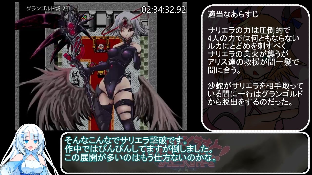 もんむす・くえすと!ぱらどっくすRPG終章 Ver3.04<br>コンバートなし<br><br>レギュ補足<br>難易度変更の禁止<br>ルーラールーラー使用禁止<br>システムデータは空っぽの状態で始める<br><br>前<a href="https://www.nicovideo.jp/watch/sm45051508" class="watch">sm45051508</a><br>次<a href="https://www.nicovideo.jp/watch/sm45278078" class="watch">sm45278078</a><br><br>区間<br>ルカ投獄 から 天界魔王城救援終了 まで<br><br>沙蛇って影薄いけどサリエラに行動させない時点で相当強いよね<br><br><br><span style="color: #ff0000; font-size: 18px;">ご視聴の注意<br>もんぱらの深刻なネタバレがあります<br>ゲームプレイ後の視聴を推奨いたします</span><br><br><span style="color: #262626; font-size: 13px;">計測区間 NEWGAME選択から エンディングのタイトルロゴが表示された 瞬間まで<br><br>もんぱら用まいりすと<a href="https://www.nicovideo.jp/mylist/62081897" target="_blank" rel="noopener">mylist/62081897</a></span><br>BLACKSOULSⅡ<a href="https://www.nicovideo.jp/mylist/63878502" target="_blank" rel="noopener">mylist/63878502</a><br><span style="color: #262626; font-size: 13px;">BLACKSOULS </span><a href="https://www.nicovideo.jp/mylist/59887561" target="_blank" rel="noopener">mylist/59887561</a><br>その他<a href="https://www.nicovideo.jp/mylist/63112367" target="_blank" rel="noopener">mylist/63112367</a><br><br><br>実はもんぱらのdiscordサーバー作ってます。<br>なんか語りたい人がいたらどうぞ。<br><a href="https://discord.gg/MspJUkHYBn" target="_blank" rel="noopener nofollow">https://discord.gg/MspJUkHYBn</a><br><br><br>VOICEVOX:whitecul<br>