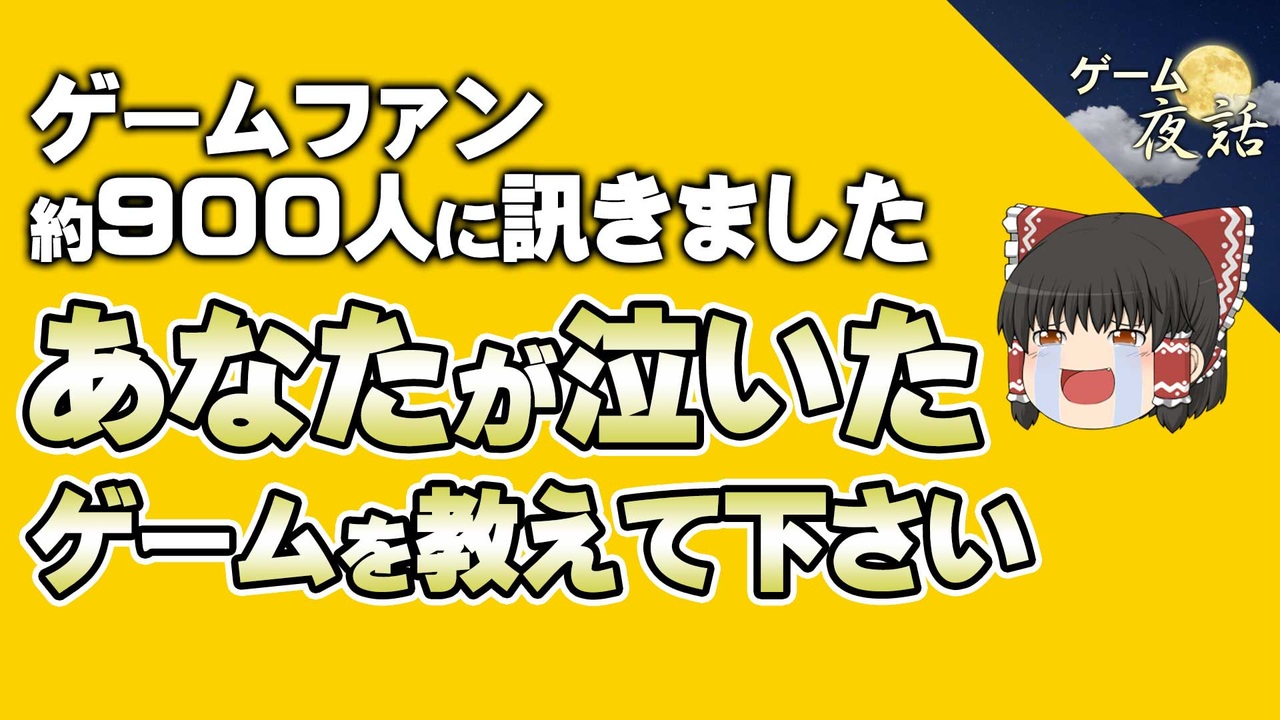 前回の動画にギフト・ニコニ広告して下さった方、ありがとうございました。<br>原則、「前編」「後編」合わせて毎回約30分を予定しています。<br><br>▼ゲーム夜話マイリスト<br><a href="https://www.nicovideo.jp/mylist/56973971" target="_blank" rel="noopener nofollow">https://www.nicovideo.jp/mylist/56973971</a><br><br>🔽<strong>第218回「ゲームファンが選んだ、思わず涙した名作ゲーム6選</strong>」<br>今回は視聴者アンケート企画です。皆さんからお寄せ頂いた体験談をもとに、<br>涙を誘う名作ゲームを紹介しています<br><br>🔽ネタバレ回避で、スキップをする際にご活用頂ければ幸いです。<br>・2番目のゲームにスキップ 03:37<br>・3番目のゲームにスキップ 07:23<br>・4番目のゲームにスキップ 12:13<br>・5番目のゲームにスキップ 18:05<br>・6番目のゲームにスキップ 23:04<br>(動画のネタバレにならないようにタイトルは伏せています)<br><br>✅<strong>関連動画</strong><br>🔽第59回「ドラゴンクエストⅤ 天空の花嫁」<br>前編:<a href="https://www.nicovideo.jp/watch/sm35506518" class="watch">sm35506518</a>(映画「ユアストーリー」の話もあり)<br>中編:<a href="https://www.nicovideo.jp/watch/sm35534300" class="watch">sm35534300</a><br>後編:<a href="https://www.nicovideo.jp/watch/sm35559361" class="watch">sm35559361</a><br><br>🔽第50回「MOTHER2 ギーグの逆襲」<br>前編:<a href="https://www.nicovideo.jp/watch/sm34783178" class="watch">sm34783178</a><br>後編:<a href="https://www.nicovideo.jp/watch/sm34826699" class="watch">sm34826699</a><br><br>🔽第146回「ゼルダの伝説ティアーズオブザキングダム」<br>前編:<a href="https://www.nicovideo.jp/watch/sm42229513" class="watch">sm42229513</a><br>後編:<a href="https://www.nicovideo.jp/watch/sm42275074" class="watch">sm42275074</a><br><br>🔽第27回「大神」<br>前編:<a href="https://www.nicovideo.jp/watch/sm32890058" class="watch">sm32890058</a><br>中編:<a href="https://www.nicovideo.jp/watch/sm32938996" class="watch">sm32938996</a><br>後編:<a href="https://www.nicovideo.jp/watch/sm32944382" class="watch">sm32944382</a><br><br>🔽第91回「メタルギアソリッド3 スネークイーター」<br>前編:<a href="https://www.nicovideo.jp/watch/sm38123991" class="watch">sm38123991</a><br>中編:<a href="https://www.nicovideo.jp/watch/sm38148842" class="watch">sm38148842</a><br>後編:<a href="https://www.nicovideo.jp/watch/sm38169344" class="watch">sm38169344</a><br><br>■ゲーム夜話「X(旧:ツイッター」<a href="https://twitter.com/gameyawa" target="_blank" rel="noopener nofollow">https://twitter.com/gameyawa</a>