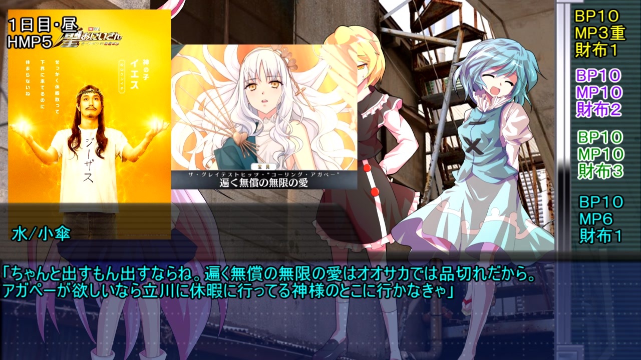 注意・当動画並びシステムにはPG-15(性・暴力・残酷・麻薬などの描写が含まれます)<br>苦手な方はブラウザバックを<br><br>水さん「人の心とか無いんか?」<br><br>私「あるよ?でも私は死ぬかもしれない最後の瞬間まで愛したいし<br>破滅も見たいとも思うんだ」<br><br>黄さん「DDの愛情歪みすぎw」<br><br><br>素材元様に「へもぐろびんA1C」様が抜けておりましたのでこの場にて<br><br><br>また広告者様紹介は両卓終了時にコメントスピークイージー開票おまけ動画作成予定なので<br>その際に紹介させていただきます<br><br><br><a href="https://www.nicovideo.jp/watch/sm45114892" class="watch">sm45114892</a>←前 次→<a href="https://www.nicovideo.jp/watch/sm45177516" class="watch">sm45177516</a><br><br><br><br>本日の「いいね!」使った素材的な話<br><br>サタスペ→<a href="https://www.nicovideo.jp/mylist/77457834" target="_blank" rel="noopener">mylist/77457834</a><br><br>TRPG一話マイリス→<a href="https://www.nicovideo.jp/mylist/61176507" target="_blank" rel="noopener">mylist/61176507</a><br><br>本作は、「冒険企画局」が権利を有する『アジアンパンクTRPGサタスペ』の、二次創作です。
