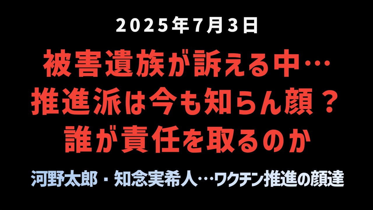 ◆被害遺族が訴える中… 推進派は今も知らん顔? 誰が責任を取るのか◇河野太郎・知念実希人… ワクチン推進の顔達<br>すごいワクチン推進ツートップ<a href="https://x.com/TakemiKeizo/status/1940622098621415658?t=_AQ4LSZdYdXslCdtd7D4VA&s=19" target="_blank" rel="noopener nofollow">https://x.com/TakemiKeizo/status/1940622098621415658?t=_AQ4LSZdYdXslCdtd7D4VA&s=19</a><br><br><br>◆今回の台本<a href="https://keiichiro8140.hatenablog.com/entry/20250703333" target="_blank" rel="noopener nofollow">https://keiichiro8140.hatenablog.com/entry/20250703333</a><br><br><br>◆YouTubeチャンネル登録よろしくお願いします<a href="https://youtube.com/@k16_888?si=1S8pLN1Tf9bGiJyV" target="_blank" rel="noopener nofollow">https://youtube.com/@k16_888?si=1S8pLN1Tf9bGiJyV</a><br><br><br>◆もしも(BAN)の時のためのマイリンク集<a href="https://lit.link/K16_888" target="_blank" rel="noopener nofollow">https://lit.link/K16_888</a><br><br><br>気になったニュース 2025/7/3<br><br><br />著作権、肖像権に配慮して作成しております。<br><br>◆気になったニュースの台本!?<br>メモ代わりに作った台本をそのままあげてます<br><a href="https://keiichiro8140.hatenablog.com/." target="_blank" rel="noopener nofollow">https://keiichiro8140.hatenablog.com/.</a><br><br><br>ここからはシリーズ紹介<br><br><br>◆ ワクチン解毒・デトックス<br><a href="https://x.gd/fZweg" target="_blank" rel="noopener nofollow">https://x.gd/fZweg</a><br><br>◆ウイリアム・マキス博士のがん治療(イベルメクチン・フェンベンダゾール等)<br><a href="https://x.gd/AtFYS" target="_blank" rel="noopener nofollow">https://x.gd/AtFYS</a><br><br>◆予防接種健康被害救済制度<br><a href="https://x.gd/0xK9x" target="_blank" rel="noopener nofollow">https://x.gd/0xK9x</a><br><br>◆気になったニュース #1501~<br><br>◆ 【ショートver】気になったニュース<br><a href="https://x.gd/7MxXC" target="_blank" rel="noopener nofollow">https://x.gd/7MxXC</a><br><br>◆ 気になったニュース #1001~<br><a href="https://x.gd/Lp8gv" target="_blank" rel="noopener nofollow">https://x.gd/Lp8gv</a><br><br>◆ 気になったニュース #501~<br><a href="https://x.gd/EmbS4" target="_blank" rel="noopener nofollow">https://x.gd/EmbS4</a><br><br>◆ 気になったニュース #1~#500<br><a href="https://x.gd/uPhNb" target="_blank" rel="noopener nofollow">https://x.gd/uPhNb</a><br><br>◆ X(旧Twitter)・テレグラムで気になった情報<br><a href="https://x.gd/YG6FT" target="_blank" rel="noopener nofollow">https://x.gd/YG6FT</a><br><br>◆ 日比谷5万人パレードデ⚪生放送アーカイブ動画<br><a href="https://x.gd/3CHJv" target="_blank" rel="noopener nofollow">https://x.gd/3CHJv</a><br><br>◆日比谷5万人パレード⚪モのマイリスト作ってみました<br><a href="https://nico.ms/mylist/76828848?ref=sp_other" target="_blank" rel="noopener nofollow">https://nico.ms/mylist/76828848?ref=sp_other</a><br><br>◆3.30 令和の百姓⚪⚪<br><a href="https://www.nicovideo.jp/series/511791?ref=garage_share_other" target="_blank" rel="noopener nofollow">https://www.nicovideo.jp/series/511791?ref=garage_share_other</a><br><br>◆ 及川幸久さんの【XNEWS】シリーズ<br><a href="https://x.gd/3k78K" target="_blank" rel="noopener nofollow">https://x.gd/3k78K</a><br><br>◆これまでの動画<a href="https://x.gd/sPXoJ" target="_blank" rel="noopener nofollow">https://x.gd/sPXoJ</a><br><br>◆もしも(BAN)の時のためのマイリンク集<a href="https://lit.link/K-16_News44" target="_blank" rel="noopener nofollow">https://lit.link/K-16_News44</a><br><br>