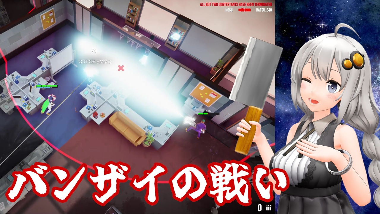 ごく普通のバンザイなバトルロイヤルです。半分MMD劇場です。<br>ごまの集いという謎の集まりで視聴者参加型で募集してプレイしたバンザイです。<br><br>参加者紹介<br>のす。さん <a href="https://www.nicovideo.jp/user/8542639" target="_blank" rel="noopener">user/8542639</a><br>でらさん <a href="https://www.nicovideo.jp/user/50055558" target="_blank" rel="noopener">user/50055558</a><br>ルナハートさん <a href="https://www.nicovideo.jp/user/2045914" target="_blank" rel="noopener">user/2045914</a><br>ありんこさん <a href="https://www.nicovideo.jp/user/6358823" target="_blank" rel="noopener">user/6358823</a><br>唐傘さん <a href="https://www.nicovideo.jp/user/88446301" target="_blank" rel="noopener">user/88446301</a><br>パープル中佐さん <a href="https://www.nicovideo.jp/user/46379481" target="_blank" rel="noopener">user/46379481</a><br>yaminさん<br>ばつさん<br><br /><br>結月ゆかりの昔話&物語シリーズ <a href="https://www.nicovideo.jp/series/7099" target="_blank" rel="noopener">series/7099</a><br>誰も走り方がわからないレースシリーズ→ <a href="https://www.nicovideo.jp/series/470454" target="_blank" rel="noopener">series/470454</a><br>実況動画(?)シリーズ→ <a href="https://www.nicovideo.jp/series/483805" target="_blank" rel="noopener">series/483805</a><br>未経験者向けMMD講座→ <a href="https://www.nicovideo.jp/series/164769" target="_blank" rel="noopener">series/164769</a><br>その他のMMD動画→ <a href="https://www.nicovideo.jp/series/7165" target="_blank" rel="noopener">series/7165</a><br><br>ツイッター → <a href="https://twitter.com/BioreRunba" target="_blank" rel="noopener nofollow">https://twitter.com/BioreRunba</a>