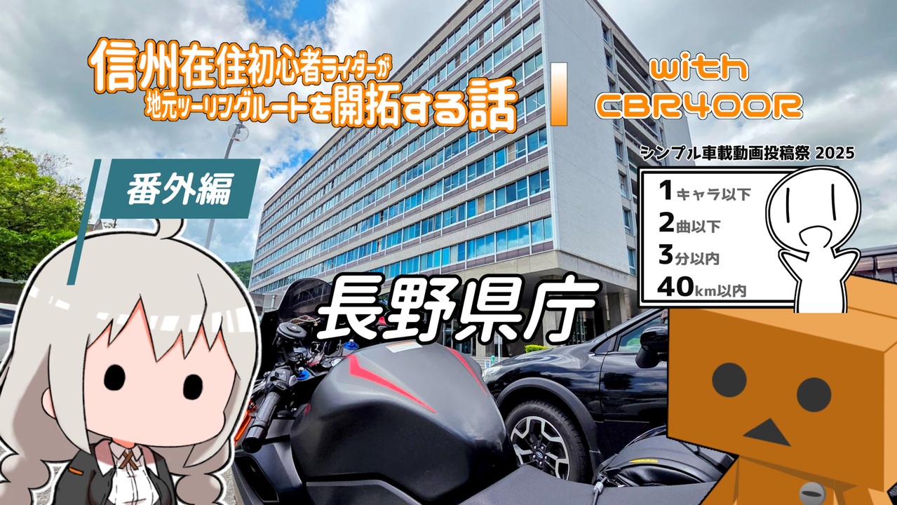 そーきさん主催の「シンプル車載動画投稿祭2025」参加作品です。<br>毎年毎年変化球を投げられるような肩はないので、今年はシンプルになりました。<br><br> 空路で鹿児島を目指した2023 <a href="https://www.nicovideo.jp/watch/sm42457646" class="watch">sm42457646</a><br> 陸路でそーきさんに会いに行った2024 <a href="https://www.nicovideo.jp/watch/sm44019992" class="watch">sm44019992</a><br><br> ふぁーれん <a href="https://twitter.com/fahren_fuwarin" target="_blank" rel="noopener nofollow">https://twitter.com/fahren_fuwarin</a><br><br>■行ったところ<br>長野県庁<br> 〒380-8570 長野県長野市南長野幅下692−2<br> <a href="https://maps.app.goo.gl/vF1kxwth2WX4jES58" target="_blank" rel="noopener nofollow">https://maps.app.goo.gl/vF1kxwth2WX4jES58</a><br>善光寺<br> 〒380-0851 長野県長野市長野元善町 491番地 イ<br> <a href="https://maps.app.goo.gl/s8mdp9tGVH28Qf8b6" target="_blank" rel="noopener nofollow">https://maps.app.goo.gl/s8mdp9tGVH28Qf8b6</a><br><br> これまでの軌跡(マイマップ) <a href="https://www.google.com/maps/d/edit?mid=19pGGBMRUavXn_s0VEMjKAgSUhufdxcwF&usp=sharing" target="_blank" rel="noopener nofollow">https://www.google.com/maps/d/edit?mid=19pGGBMRUavXn_s0VEMjKAgSUhufdxcwF&usp=sharing</a><br><br>■企画<br>「シンプル車載動画投稿祭2025」<a href="https://www.nicovideo.jp/watch/sm44980059" class="watch">sm44980059</a><br> 主催 そーき 様 (<a href="https://www.nicovideo.jp/user/347413" target="_blank" rel="noopener">user/347413</a>)<br><br><br>■第1話 <a href="https://www.nicovideo.jp/watch/sm37440916" class="watch">sm37440916</a><br>■第180話 <a href="https://www.nicovideo.jp/watch/sm45066575" class="watch">sm45066575</a> ← ここ → ■第181話 8月後半からスタート(予定