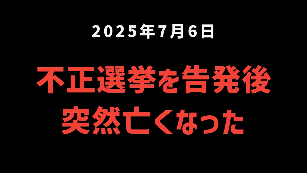 【不正選挙シリーズ第2弾】◆まさに死人に口なし 不正選挙告発後、不審死…犬丸勝子さんの不正選挙告発<a href="https://x.com/toshie_fujisan/status/1941408254669750367?t=nyrRzwmHy90tIWXuKfsLVA&s=19" target="_blank" rel="noopener nofollow">https://x.com/toshie_fujisan/status/1941408254669750367?t=nyrRzwmHy90tIWXuKfsLVA&s=19</a><br><br><br>◆今回の台本<a href="https://keiichiro8140.hatenablog.com/entry/20250706666" target="_blank" rel="noopener nofollow">https://keiichiro8140.hatenablog.com/entry/20250706666</a><br><br><br>◆YouTubeチャンネル登録よろしくお願いします<a href="https://youtube.com/@k16_888?si=1S8pLN1Tf9bGiJyV" target="_blank" rel="noopener nofollow">https://youtube.com/@k16_888?si=1S8pLN1Tf9bGiJyV</a><br><br><br>◆もしも(BAN)の時のためのマイリンク集<a href="https://lit.link/K16_888" target="_blank" rel="noopener nofollow">https://lit.link/K16_888</a><br><br><br>気になったニュース 2025/7/6<br><br><br />著作権、肖像権に配慮して作成しております。<br><br>◆気になったニュースの台本!?<br>メモ代わりに作った台本をそのままあげてます<br><a href="https://keiichiro8140.hatenablog.com/." target="_blank" rel="noopener nofollow">https://keiichiro8140.hatenablog.com/.</a><br><br><br>ここからはシリーズ紹介<br><br><br>◆ ワクチン解毒・デトックス<br><a href="https://x.gd/fZweg" target="_blank" rel="noopener nofollow">https://x.gd/fZweg</a><br><br>◆ウイリアム・マキス博士のがん治療(イベルメクチン・フェンベンダゾール等)<br><a href="https://x.gd/AtFYS" target="_blank" rel="noopener nofollow">https://x.gd/AtFYS</a><br><br>◆予防接種健康被害救済制度<br><a href="https://x.gd/0xK9x" target="_blank" rel="noopener nofollow">https://x.gd/0xK9x</a><br><br>◆気になったニュース #1501~<br><br>◆ 【ショートver】気になったニュース<br><a href="https://x.gd/7MxXC" target="_blank" rel="noopener nofollow">https://x.gd/7MxXC</a><br><br>◆ 気になったニュース #1001~<br><a href="https://x.gd/Lp8gv" target="_blank" rel="noopener nofollow">https://x.gd/Lp8gv</a><br><br>◆ 気になったニュース #501~<br><a href="https://x.gd/EmbS4" target="_blank" rel="noopener nofollow">https://x.gd/EmbS4</a><br><br>◆ 気になったニュース #1~#500<br><a href="https://x.gd/uPhNb" target="_blank" rel="noopener nofollow">https://x.gd/uPhNb</a><br><br>◆ X(旧Twitter)・テレグラムで気になった情報<br><a href="https://x.gd/YG6FT" target="_blank" rel="noopener nofollow">https://x.gd/YG6FT</a><br><br>◆ 日比谷5万人パレードデ⚪生放送アーカイブ動画<br><a href="https://x.gd/3CHJv" target="_blank" rel="noopener nofollow">https://x.gd/3CHJv</a><br><br>◆日比谷5万人パレード⚪モのマイリスト作ってみました<br><a href="https://nico.ms/mylist/76828848?ref=sp_other" target="_blank" rel="noopener nofollow">https://nico.ms/mylist/76828848?ref=sp_other</a><br><br>◆3.30 令和の百姓⚪⚪<br><a href="https://www.nicovideo.jp/series/511791?ref=garage_share_other" target="_blank" rel="noopener nofollow">https://www.nicovideo.jp/series/511791?ref=garage_share_other</a><br><br>◆ 及川幸久さんの【XNEWS】シリーズ<br><a href="https://x.gd/3k78K" target="_blank" rel="noopener nofollow">https://x.gd/3k78K</a><br><br>◆これまでの動画<a href="https://x.gd/sPXoJ" target="_blank" rel="noopener nofollow">https://x.gd/sPXoJ</a><br><br>◆もしも(BAN)の時のためのマイリンク集<a href="https://lit.link/K-16_News44" target="_blank" rel="noopener nofollow">https://lit.link/K-16_News44</a><br><br>