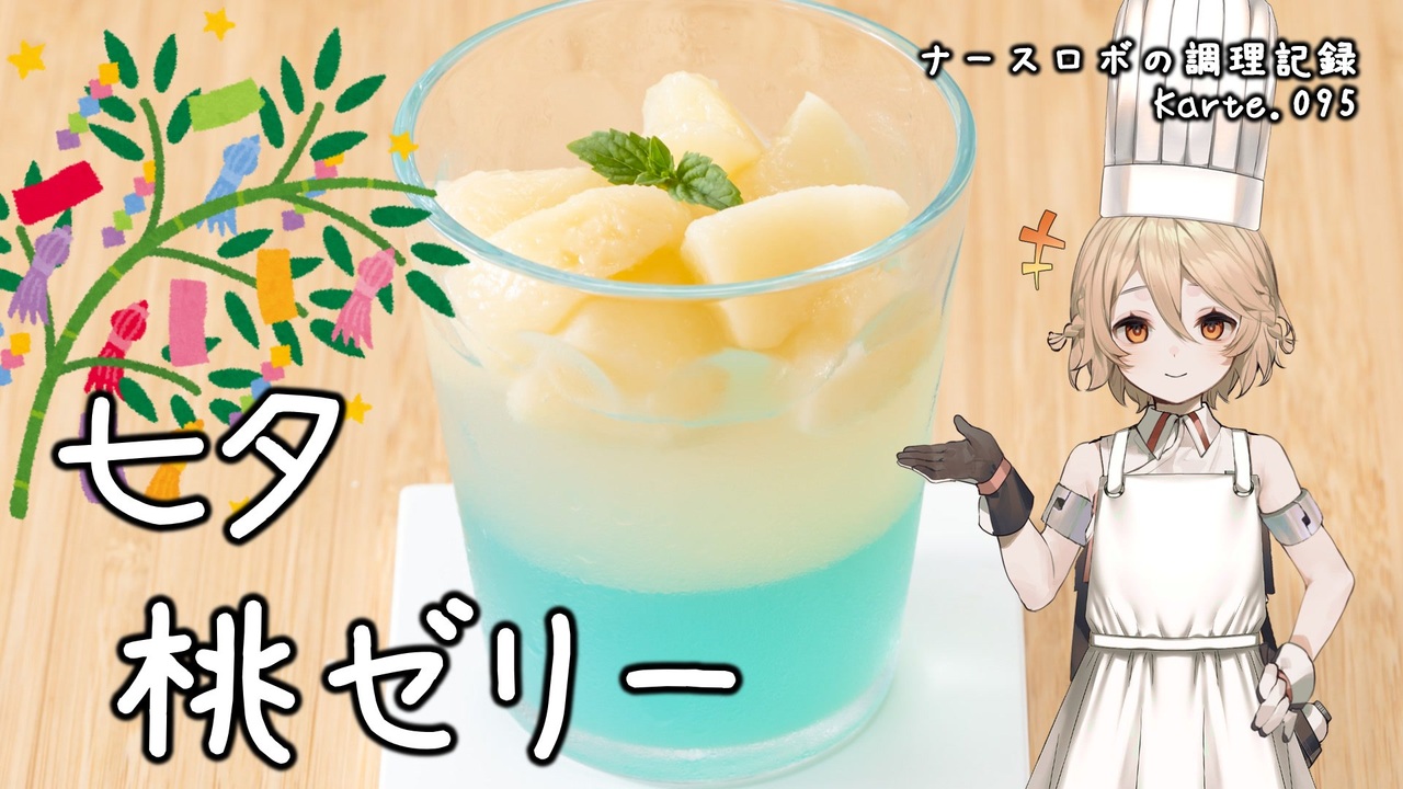 Part95は白桃のコンポートゼリー!<br>明日は七夕ということで、夜空を意識して青色を入れた2層ゼリーで作ります!<br>手間が増えますが見栄えがとても良くなるので是非試してみてください。<br>1層で作っても美味しく頂けるのでみなさんもぜひ作ってみてくださいね。<br><br>音声: VOICEVOX:ナースロボ_タイプT<br>立ち絵: 捨て犬A<br>イラスト: いらすとや<br>SE: otologic, 効果音ラボ<br>BGM: BGMer<br /><br>[各種リンク]<br>ニコニコ動画: <a href="http://nicovideo.jp/user/130153578" target="_blank" rel="noopener nofollow">http://nicovideo.jp/user/130153578</a><br>YouTubeメイン(料理): <a href="http://youtube.com/@cooking25euph" target="_blank" rel="noopener nofollow">http://youtube.com/@cooking25euph</a><br>YouTubeサブ(料理以外): <a href="https://youtube.com/@sub25euph" target="_blank" rel="noopener nofollow">https://youtube.com/@sub25euph</a><br>X (twitter): <a href="https://twitter.com/nico25euph" target="_blank" rel="noopener nofollow">https://twitter.com/nico25euph</a><br>Bluesky: <a href="http://nico25euph.bsky.social" target="_blank" rel="noopener nofollow">http://nico25euph.bsky.social</a><br>TikTok: <a href="http://tiktok.com/@nico25euph" target="_blank" rel="noopener nofollow">http://tiktok.com/@nico25euph</a>