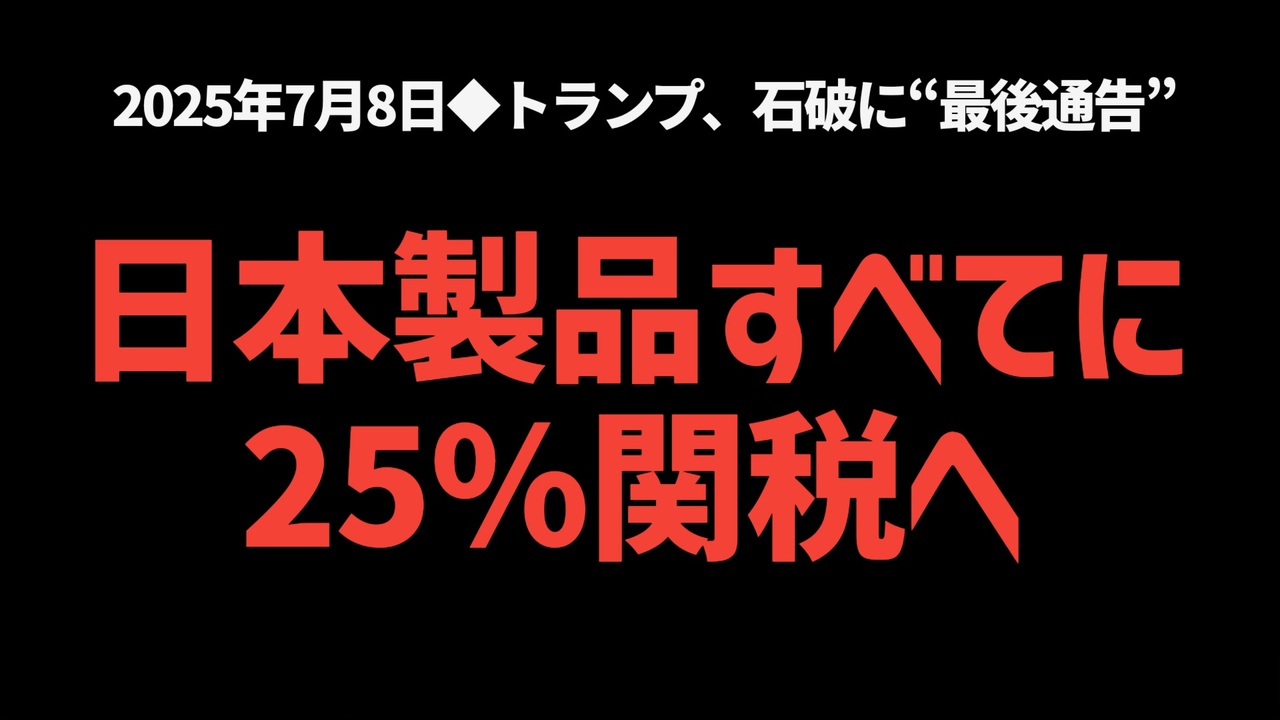 ◆トランプ、石破に“最後通告” 日本製品すべてに25%関税へ<a href="https://x.com/Tamama0306/status/1942274433869308054?t=qfmp_okiBRdBGbdjfzt07g&s=19" target="_blank" rel="noopener nofollow">https://x.com/Tamama0306/status/1942274433869308054?t=qfmp_okiBRdBGbdjfzt07g&s=19</a><br><br><br>◆今回の台本<a href="https://keiichiro8140.hatenablog.com/entry/202507088888" target="_blank" rel="noopener nofollow">https://keiichiro8140.hatenablog.com/entry/202507088888</a><br><br><br>◆YouTubeチャンネル登録よろしくお願いします<a href="https://youtube.com/@k16_888?si=1S8pLN1Tf9bGiJyV" target="_blank" rel="noopener nofollow">https://youtube.com/@k16_888?si=1S8pLN1Tf9bGiJyV</a><br><br><br>◆もしも(BAN)の時のためのマイリンク集<a href="https://lit.link/K16_888" target="_blank" rel="noopener nofollow">https://lit.link/K16_888</a><br><br><br>気になったニュース 2025/7/8<br><br><br />著作権、肖像権に配慮して作成しております。<br><br>◆気になったニュースの台本!?<br>メモ代わりに作った台本をそのままあげてます<br><a href="https://keiichiro8140.hatenablog.com/." target="_blank" rel="noopener nofollow">https://keiichiro8140.hatenablog.com/.</a><br><br><br>ここからはシリーズ紹介<br><br><br>◆ ワクチン解毒・デトックス<br><a href="https://x.gd/fZweg" target="_blank" rel="noopener nofollow">https://x.gd/fZweg</a><br><br>◆ウイリアム・マキス博士のがん治療(イベルメクチン・フェンベンダゾール等)<br><a href="https://x.gd/AtFYS" target="_blank" rel="noopener nofollow">https://x.gd/AtFYS</a><br><br>◆予防接種健康被害救済制度<br><a href="https://x.gd/0xK9x" target="_blank" rel="noopener nofollow">https://x.gd/0xK9x</a><br><br>◆気になったニュース #1501~<br><br>◆ 【ショートver】気になったニュース<br><a href="https://x.gd/7MxXC" target="_blank" rel="noopener nofollow">https://x.gd/7MxXC</a><br><br>◆ 気になったニュース #1001~<br><a href="https://x.gd/Lp8gv" target="_blank" rel="noopener nofollow">https://x.gd/Lp8gv</a><br><br>◆ 気になったニュース #501~<br><a href="https://x.gd/EmbS4" target="_blank" rel="noopener nofollow">https://x.gd/EmbS4</a><br><br>◆ 気になったニュース #1~#500<br><a href="https://x.gd/uPhNb" target="_blank" rel="noopener nofollow">https://x.gd/uPhNb</a><br><br>◆ X(旧Twitter)・テレグラムで気になった情報<br><a href="https://x.gd/YG6FT" target="_blank" rel="noopener nofollow">https://x.gd/YG6FT</a><br><br>◆ 日比谷5万人パレードデ⚪生放送アーカイブ動画<br><a href="https://x.gd/3CHJv" target="_blank" rel="noopener nofollow">https://x.gd/3CHJv</a><br><br>◆日比谷5万人パレード⚪モのマイリスト作ってみました<br><a href="https://nico.ms/mylist/76828848?ref=sp_other" target="_blank" rel="noopener nofollow">https://nico.ms/mylist/76828848?ref=sp_other</a><br><br>◆3.30 令和の百姓⚪⚪<br><a href="https://www.nicovideo.jp/series/511791?ref=garage_share_other" target="_blank" rel="noopener nofollow">https://www.nicovideo.jp/series/511791?ref=garage_share_other</a><br><br>◆ 及川幸久さんの【XNEWS】シリーズ<br><a href="https://x.gd/3k78K" target="_blank" rel="noopener nofollow">https://x.gd/3k78K</a><br><br>◆これまでの動画<a href="https://x.gd/sPXoJ" target="_blank" rel="noopener nofollow">https://x.gd/sPXoJ</a><br><br>◆もしも(BAN)の時のためのマイリンク集<a href="https://lit.link/K-16_News44" target="_blank" rel="noopener nofollow">https://lit.link/K-16_News44</a><br><br>