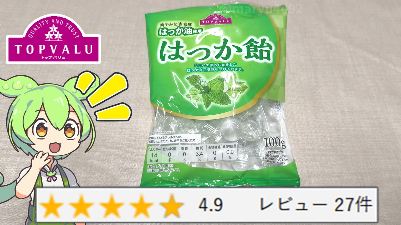 子供の頃、あまり好きではなかったはっか飴。<br>大人になった今なら美味しく食べられるのではないかと買ってみることにしました。<br><br><br><br>【関連動画】<br>おばあちゃんちにありそうなお菓子「黄金糖(177円)」2025.06.28<br><a href="https://www.nicovideo.jp/watch/sm45124845" target="_blank" rel="noopener nofollow">https://www.nicovideo.jp/watch/sm45124845</a><br><br>【参考】<br>はっか飴 ※本体価格108円/100g(トップバリュ)<br><a href="https://www.topvalu.net/items/detail/4901810190515/" target="_blank" rel="noopener nofollow">https://www.topvalu.net/items/detail/4901810190515/</a><br>株式会社リボン<br><a href="https://www.ribon-jp.com/" target="_blank" rel="noopener nofollow">https://www.ribon-jp.com/</a><br>小牧発祥!名古屋コーチン(小牧市)<br><a href="https://www.city.komaki.aichi.jp/admin/soshiki/chiikikassei/city/kannkoushinkou/5/4/3034.html" target="_blank" rel="noopener nofollow">https://www.city.komaki.aichi.jp/admin/soshiki/chiikikassei/city/kannkoushinkou/5/4/3034.html</a><br>学校給食に名古屋コーチンを使ったメニューが登場しました(小牧市)<br><a href="https://www.city.komaki.aichi.jp/admin/soshiki/chiikikassei/city/kannkoushinkou/5/4/1/3037.html" target="_blank" rel="noopener nofollow">https://www.city.komaki.aichi.jp/admin/soshiki/chiikikassei/city/kannkoushinkou/5/4/1/3037.html</a><br><br>【使用した素材】(※敬称略) <br>(合成音声)VOICEVOX/ずんだもん/四国めたん<br><a href="https://voicevox.hiroshiba.jp/" target="_blank" rel="noopener nofollow">https://voicevox.hiroshiba.jp/</a> <br>(立ち絵)坂本アヒル<br> <a href="https://seiga.nicovideo.jp/seiga/im10788496?track" target="_blank" rel="noopener nofollow">https://seiga.nicovideo.jp/seiga/im10788496?track</a><br>(楽曲)甘茶の音楽工房/「楽しい麦畑」「フルーツパフェ」「お城の舞踏会」<br><a href="https://amachamusic.chagasi.com/" target="_blank" rel="noopener nofollow">https://amachamusic.chagasi.com/</a>
