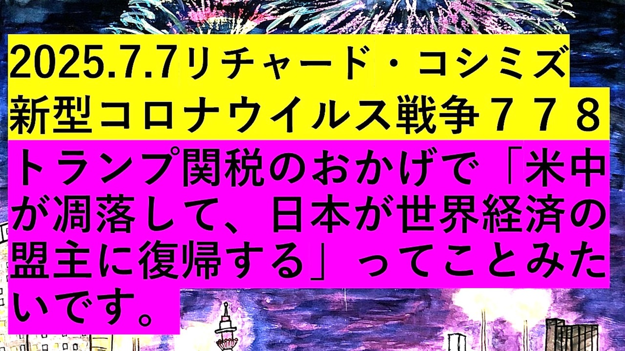 <span style="color: #cc0000;"><strong>◐『 テーマ : 「 新型コロナウイルス戦争⦅ 778 ⦆」⦅ 暫定版 ⦆』</strong></span><br><br><span style="color: #ff0000;"><strong> 「『 ドナルド・トランプ関税 』のおかげで『 米中 』が『 凋落 』して、『 日本 』が『 世界経済 』の『 盟主 』に『 復帰 』するってことみたいです 」</strong></span><br><br> <span style="color: #38761d;"><strong>◐『 リチャード・コシミズ・チャンネル⦅ ニコニコ チャンネル ⦆』</strong></span><br> <span style="color: #0000ff;"><strong><a href="https://ch.nicovideo.jp/richardkoshimizu" target="_blank" rel="noopener nofollow">https://ch.nicovideo.jp/richardkoshimizu</a></strong></span><br><br> <span style="color: #38761d;"><strong>◐『 リチャード・コシミズ「 ニコニコ生放送⦅ LIVE ⦆」』</strong></span><br> <span style="color: #0000ff;"><strong><a href="https://www.nicovideo.jp/user/120930363/live_programs" target="_blank" rel="noopener nofollow">https://www.nicovideo.jp/user/120930363/live_programs</a></strong></span><br><br> <span style="color: #38761d;"><strong>◐『「 リチャード・コシミズ 講演会 」公式「 動画ギャラリー 」</strong></span><span style="color: #ff0000;"><strong>⦅ 最新動画 ⦆⦅ YouTube版 ⦆</strong></span><span style="color: #38761d;"><strong>』</strong></span><br> <span style="color: #0000ff;"><strong><a href="https://www.youtube.com/@richardkoshimizu-video-gallery" target="_blank" rel="noopener nofollow">https://www.youtube.com/@richardkoshimizu-video-gallery</a></strong></span><br><br>
