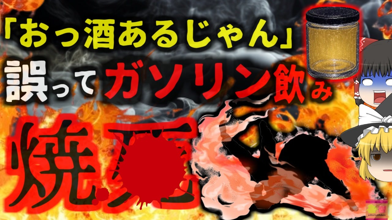 <a href="#" class="seekTime" data-seekTime="00:10" onclick="seekNicoPlayer('#00:10'); return false;">#00:10</a> 全身熱傷で亡くなった男性<br><a href="#" class="seekTime" data-seekTime="1:14" onclick="seekNicoPlayer('#1:14'); return false;">#1:14</a> 熱傷の深度と診断<br><a href="#" class="seekTime" data-seekTime="2:26" onclick="seekNicoPlayer('#2:26'); return false;">#2:26</a> 3度熱傷は命の危機も<br><a href="#" class="seekTime" data-seekTime="3:04" onclick="seekNicoPlayer('#3:04'); return false;">#3:04</a> 深度が浅くても広範囲の場合…<br><a href="#" class="seekTime" data-seekTime="3:56" onclick="seekNicoPlayer('#3:56'); return false;">#3:56</a> 「絶対にしてはいけなかったこと」<br><a href="#" class="seekTime" data-seekTime="4:17" onclick="seekNicoPlayer('#4:17'); return false;">#4:17</a> サルサジャーに入っていたのはお酒ではなく・・・<br><a href="#" class="seekTime" data-seekTime="5:03" onclick="seekNicoPlayer('#5:03'); return false;">#5:03</a> 一瞬で火だるまに<br><a href="#" class="seekTime" data-seekTime="6:39" onclick="seekNicoPlayer('#6:39'); return false;">#6:39</a> ガソリンの取り扱いと危険性<br><br><br>引用・出展・参考文献(視聴者提供資料など<br>身近な危険物の火災、その消火方法<br>総務省消防庁<br><a href="https://x.gd/9MJME" target="_blank" rel="noopener nofollow">https://x.gd/9MJME</a><br>dailymail<br><a href="https://x.gd/HFtu6" target="_blank" rel="noopener nofollow">https://x.gd/HFtu6</a><br>大阪市 ガソリンは大変危険です!<br><a href="https://x.gd/Rt8GF" target="_blank" rel="noopener nofollow">https://x.gd/Rt8GF</a><br>独立行政法人 国民生活センター <br>ガソリン携行缶の取り扱いに注意-取り扱いを誤るとガソリンの漏えいや噴出の原因に<br><a href="https://x.gd/LNJDc" target="_blank" rel="noopener nofollow">https://x.gd/LNJDc</a><br><br><br><br />※この動画は過去の事件を知り、現在でも同じことが発生する危険性を再認識、関与しないように促すための動画であり、視聴者を扇動、動揺を誘うためのコンテンツではありません。<br><br>ご要望にお応えして、メンバーシップの開設を行いました。<br>下記URLからも登録可能ですので、ご興味がある方は是非ご参加ください。<br><a href="https://www.youtube.com/channel/UCcT5a1J7XJW7CLYI2RKl4pw/join" target="_blank" rel="noopener nofollow">https://www.youtube.com/channel/UCcT5a1J7XJW7CLYI2RKl4pw/join</a><br><br><br>Twitter<br>→<a href="https://twitter.com/yukkurisurutoko" target="_blank" rel="noopener nofollow">https://twitter.com/yukkurisurutoko</a><br><br>取り急ぎ、簡易的にですがマイリストを作りました。<br>【ゆっくり解説】事故・事件関係紹介リスト <br><a href="https://www.nicovideo.jp/mylist/71034319" target="_blank" rel="noopener nofollow">https://www.nicovideo.jp/mylist/71034319</a><br>【ゆっくり解説】放射線系事故<br><a href="https://www.nicovideo.jp/mylist/71034368" target="_blank" rel="noopener nofollow">https://www.nicovideo.jp/mylist/71034368</a><br>【ゆっくり解説】鉄道系事故・事件関連<br><a href="https://www.nicovideo.jp/mylist/71034379" target="_blank" rel="noopener nofollow">https://www.nicovideo.jp/mylist/71034379</a>