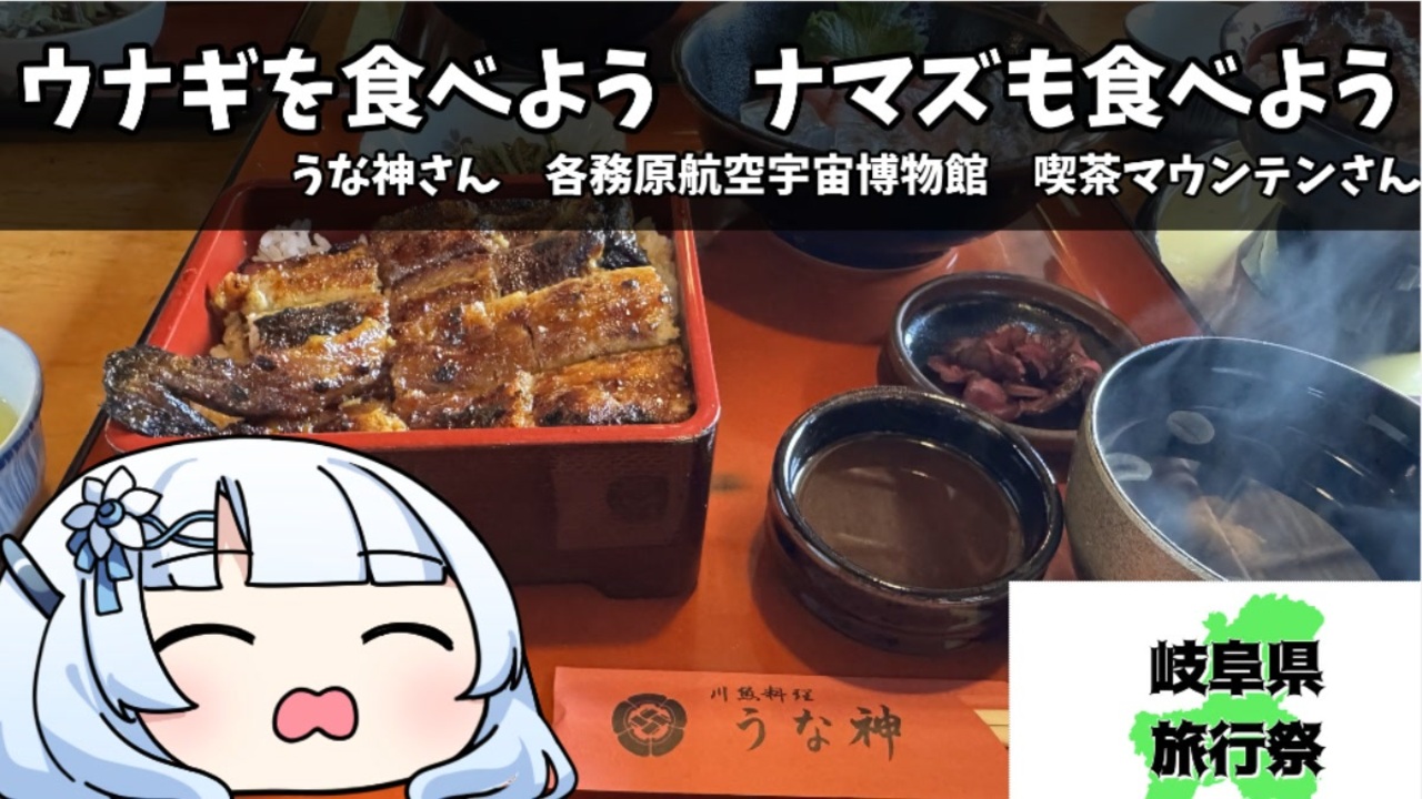 雪待月様の岐阜県旅行祭2025参加作品です<br><br><a href="https://www.nicovideo.jp/watch/sm45072786" target="_blank" rel="noopener nofollow">https://www.nicovideo.jp/watch/sm45072786</a><br>岐阜県のうな神さんにて、動画投稿者のbooさん、満満さん、雪待月さん、せんてふさんとのうなぎオフをしました<br><br>カニの名を冠する町や鬼の住処に寄り道したよ<br><br>各務ヶ原の航空宇宙博物館、とっても楽しいです<br><br><br>そして名古屋での登山に成功したのでした<br><br><br>うな神さん:<a href="https://www.cci-k.or.jp/gurume/shop/115/" target="_blank" rel="noopener nofollow">https://www.cci-k.or.jp/gurume/shop/115/</a><br><br>各務ヶ原航空宇宙博物館:<a href="https://kakamigahara-kankou.jp/tourism/117" target="_blank" rel="noopener nofollow">https://kakamigahara-kankou.jp/tourism/117</a><br><br>喫茶マウンテンさん:<a href="https://ja.wikipedia.org/wiki/%E5%96%AB%E8%8C%B6%E3%83%9E%E3%82%A6%E3%83%B3%E3%83%86%E3%83%B3" target="_blank" rel="noopener nofollow">https://ja.wikipedia.org/wiki/%E5%96%AB%E8%8C%B6%E3%83%9E%E3%82%A6%E3%83%B3%E3%83%86%E3%83%B3</a><br><br><br>使用させていただいたもの<br><br><br>【立ち絵】<br>WhiteCUL<br><br>ヒザフライ様 ゆっくりWhiteCUL素材 <a href="https://seiga.nicovideo.jp/seiga/im11288356" target="_blank" rel="noopener nofollow">https://seiga.nicovideo.jp/seiga/im11288356</a><br><br><br>【BGM】<br>DOVA-SYNDROME様 <a href="https://dova-s.jp/bgm/play2354.html" target="_blank" rel="noopener nofollow">https://dova-s.jp/bgm/play2354.html</a><br><br>BGMer様 <a href="https://bgmer.net/" target="_blank" rel="noopener nofollow">https://bgmer.net/</a><br><br><br>【その他】<br>雫ちゃん様 アイシーカラーの斜めシェイプトランジションⅡ:<a href="https://commons.nicovideo.jp/works/nc396496" target="_blank" rel="noopener nofollow">https://commons.nicovideo.jp/works/nc396496</a><br><br>雫ちゃん様 アイシーカラーの球形トランジションGB:<a href="https://www.nicovideo.jp/watch/sm43750090" target="_blank" rel="noopener nofollow">https://www.nicovideo.jp/watch/sm43750090</a><br><br><br>岐阜県旅行祭2025 ロゴ:<a href="https://seiga.nicovideo.jp/seiga/im11575309" target="_blank" rel="noopener nofollow">https://seiga.nicovideo.jp/seiga/im11575309</a>