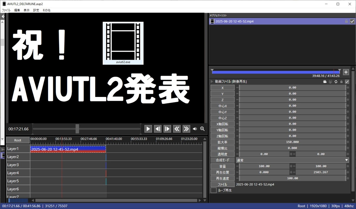 <span style="color: #ff0000; font-size: 16px;"><strong>人はプラグイン漬けされた状態から新規環境に耐えうるのか。</strong></span><br><br><span style="color: #ff0000; font-size: 24px;">祝!</span><span style="color: #ff9900; font-size: 24px;">AV</span><span style="color: #f1c232; font-size: 24px;">IU</span><span style="color: #00ff00; font-size: 24px;">TL</span><span style="color: #4a86e8; font-size: 24px;">2</span><span style="color: #0000ff; font-size: 24px;">発</span><span style="color: #9900ff; font-size: 24px;">表!</span><br><br>実際に使ってみたうえでの速報レビューです。<br>差異に戸惑うところもあるけど、普通にレベルアップしてて、使いやすい印象でした!<br><br>DLはこちら→<a href="https://spring-fragrance.mints.ne.jp/aviutl/" target="_blank" rel="noopener nofollow">https://spring-fragrance.mints.ne.jp/aviutl/</a> (AVIUTLのお部屋)