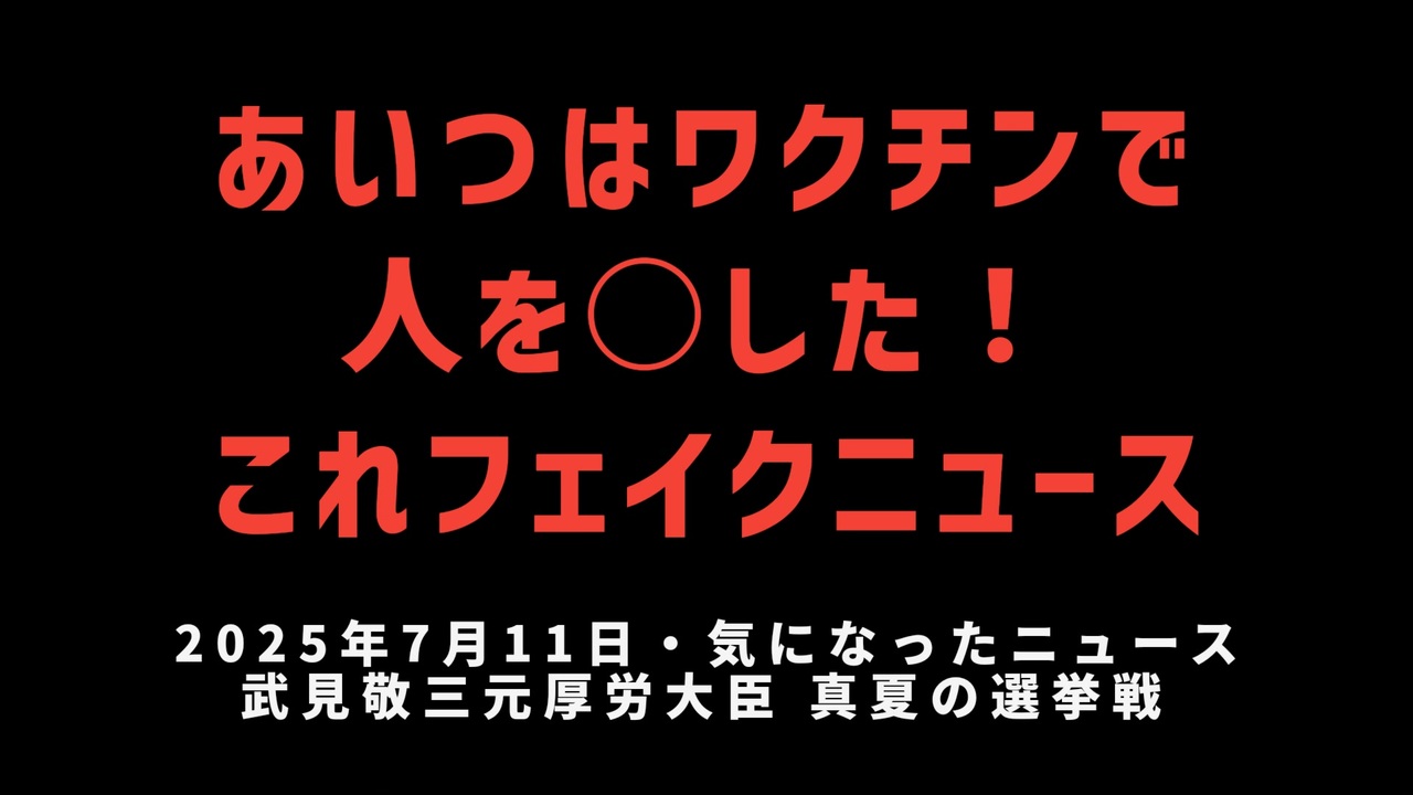 ◆武見敬三元厚労大臣『あいつはワクチンで人を殺したこれはフェイクニュース』WHO親善大使の真夏の選挙戦<br><a href="https://x.com/sousyou13/status/1943431784277909671?t=G1ruX8FZfWXb8E6-2xEjKQ&s=19" target="_blank" rel="noopener nofollow">https://x.com/sousyou13/status/1943431784277909671?t=G1ruX8FZfWXb8E6-2xEjKQ&s=19</a><br><br><br>◆今回の台本<a href="https://keiichiro8140.hatenablog.com/entry/20250711" target="_blank" rel="noopener nofollow">https://keiichiro8140.hatenablog.com/entry/20250711</a><br><br><br>◆YouTubeチャンネル登録よろしくお願いします<a href="https://youtube.com/@k16_888?si=1S8pLN1Tf9bGiJyV" target="_blank" rel="noopener nofollow">https://youtube.com/@k16_888?si=1S8pLN1Tf9bGiJyV</a><br><br><br>◆もしも(BAN)の時のためのマイリンク集<a href="https://lit.link/K16_888" target="_blank" rel="noopener nofollow">https://lit.link/K16_888</a><br><br><br>気になったニュース 2025/7/11<br><br><br />著作権、肖像権に配慮して作成しております。<br><br>◆気になったニュースの台本!?<br>メモ代わりに作った台本をそのままあげてます<br><a href="https://keiichiro8140.hatenablog.com/." target="_blank" rel="noopener nofollow">https://keiichiro8140.hatenablog.com/.</a><br><br><br>ここからはシリーズ紹介<br><br><br>◆ ワクチン解毒・デトックス<br><a href="https://x.gd/fZweg" target="_blank" rel="noopener nofollow">https://x.gd/fZweg</a><br><br>◆ウイリアム・マキス博士のがん治療(イベルメクチン・フェンベンダゾール等)<br><a href="https://x.gd/AtFYS" target="_blank" rel="noopener nofollow">https://x.gd/AtFYS</a><br><br>◆予防接種健康被害救済制度<br><a href="https://x.gd/0xK9x" target="_blank" rel="noopener nofollow">https://x.gd/0xK9x</a><br><br>◆気になったニュース #1501~<br><br>◆ 【ショートver】気になったニュース<br><a href="https://x.gd/7MxXC" target="_blank" rel="noopener nofollow">https://x.gd/7MxXC</a><br><br>◆ 気になったニュース #1001~<br><a href="https://x.gd/Lp8gv" target="_blank" rel="noopener nofollow">https://x.gd/Lp8gv</a><br><br>◆ 気になったニュース #501~<br><a href="https://x.gd/EmbS4" target="_blank" rel="noopener nofollow">https://x.gd/EmbS4</a><br><br>◆ 気になったニュース #1~#500<br><a href="https://x.gd/uPhNb" target="_blank" rel="noopener nofollow">https://x.gd/uPhNb</a><br><br>◆ X(旧Twitter)・テレグラムで気になった情報<br><a href="https://x.gd/YG6FT" target="_blank" rel="noopener nofollow">https://x.gd/YG6FT</a><br><br>◆ 日比谷5万人パレードデ⚪生放送アーカイブ動画<br><a href="https://x.gd/3CHJv" target="_blank" rel="noopener nofollow">https://x.gd/3CHJv</a><br><br>◆日比谷5万人パレード⚪モのマイリスト作ってみました<br><a href="https://nico.ms/mylist/76828848?ref=sp_other" target="_blank" rel="noopener nofollow">https://nico.ms/mylist/76828848?ref=sp_other</a><br><br>◆3.30 令和の百姓⚪⚪<br><a href="https://www.nicovideo.jp/series/511791?ref=garage_share_other" target="_blank" rel="noopener nofollow">https://www.nicovideo.jp/series/511791?ref=garage_share_other</a><br><br>◆ 及川幸久さんの【XNEWS】シリーズ<br><a href="https://x.gd/3k78K" target="_blank" rel="noopener nofollow">https://x.gd/3k78K</a><br><br>◆これまでの動画<a href="https://x.gd/sPXoJ" target="_blank" rel="noopener nofollow">https://x.gd/sPXoJ</a><br><br>◆もしも(BAN)の時のためのマイリンク集<a href="https://lit.link/K-16_News44" target="_blank" rel="noopener nofollow">https://lit.link/K-16_News44</a><br><br>