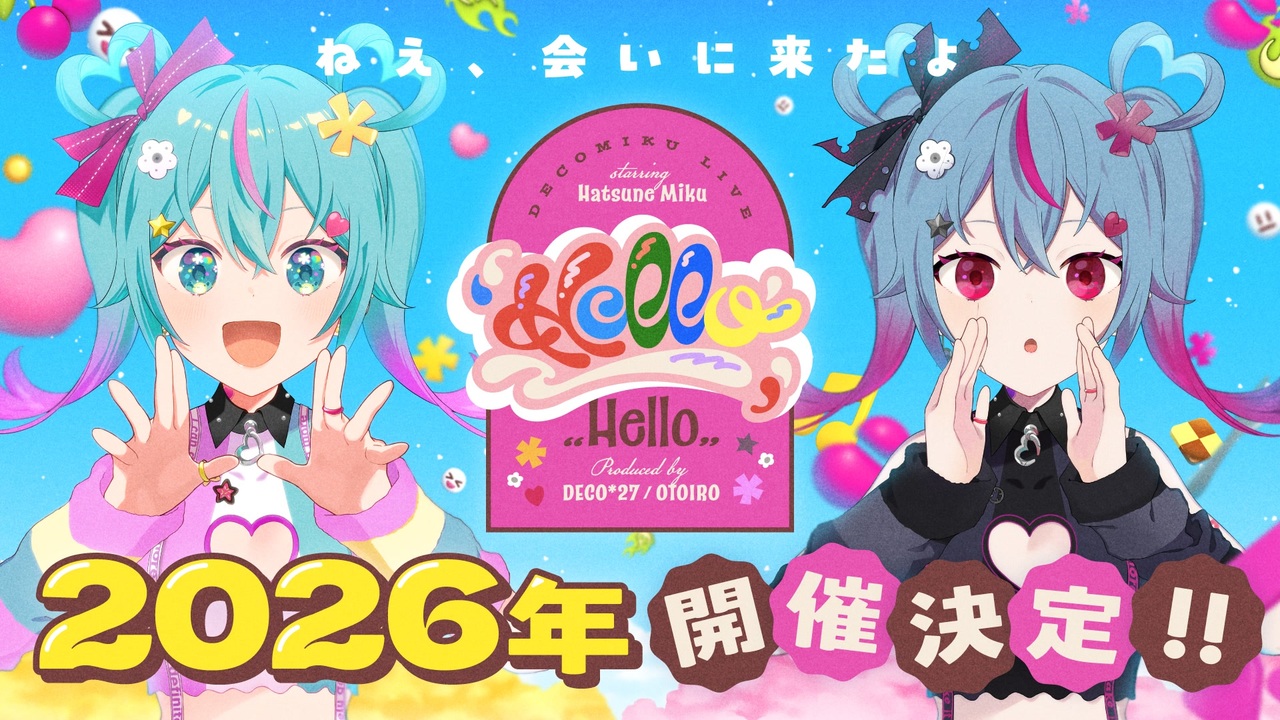 「ねえ、会いに来たよ」<br>公式X: <a href="https://x.com/DecoMiku_Live" target="_blank" rel="noopener nofollow">https://x.com/DecoMiku_Live</a><br>イベント詳細ページ: <a href="https://otoiro.co.jp/live/" target="_blank" rel="noopener nofollow">https://otoiro.co.jp/live/</a><br><br>DECO*27プロデュースによる初音ミク3Dワンマンライブ<デコミク LIVE starring 初音ミク『Hello』Produced by DECO*27 / OTOIRO>2026年開催決定!<br>会場、開催日程やチケット情報については、続報をお待ちください!<br><br>▼PV Credit<br>Sound Producer: DECO*27<br>Voice: 藤田 咲<br>Movie by OTOIRO<br>Director: lowpolydog<br>Illustrator: おむたつ<br>Designer: Ryota Arai<br>Composite: Shimpai Oniki, あわしま<br>Animator: 1024<br>Assistant: 貴夏, 橙瀬あんず<br><br>English Translator: Iori Majima<br><br>Sound Product Manager: Yusuke Sato<br><br><br>Art Director: yuka fujii, DMYM<br>Original Character Designer: おむたつ<br><br>Chief Producer: Iori Majima<br><br>Special Thanks: クリプトン・フューチャー・メディア<br><br>X: <a href="https://x.com/deco27" target="_blank" rel="noopener nofollow">https://x.com/deco27</a><br>TikTok: <a href="https://www.tiktok.com/@deco27_official" target="_blank" rel="noopener nofollow">https://www.tiktok.com/@deco27_official</a><br>Instagram: <a href="https://www.instagram.com/deco27_39/" target="_blank" rel="noopener nofollow">https://www.instagram.com/deco27_39/</a><br>音楽 & 動画素材: <a href="https://otoiro.co.jp/special/" target="_blank" rel="noopener nofollow">https://otoiro.co.jp/special/</a><br>LINEスタンプ: <a href="https://store.line.me/stickershop/author/2564873" target="_blank" rel="noopener nofollow">https://store.line.me/stickershop/author/2564873</a><br>公式グッズ: <a href="https://otoiro.official.ec/" target="_blank" rel="noopener nofollow">https://otoiro.official.ec/</a>