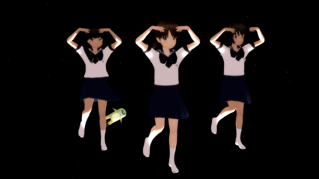 既存のモデルに既存のモーションを入れただけで、「作ってみた」というのもおこがましいですが、ご覧いただけたら幸いです。<br>お借りしたものにつきましては親作品に登録させて頂きました。唯々感謝あるのみです。<br>某アニメに影響を受けました・・・これは流行る!<br>_____________________________________________________<br><br>お借りしたもの<br>モデル:鎌倉女学院夏服モデルプロポーション修正配布 お芋様 <a href="https://www.nicovideo.jp/watch/sm42321660" class="watch">sm42321660</a><br>モデル:ムジーナ MMDモデル 時の番人様 <a href="https://3d.nicovideo.jp/works/td77950" target="_blank" rel="noopener">td77950</a><br>楽曲:キャンディーズ〜「銀河系まで飛んで行け!」 <a href="https://www.youtube.com/watch?v=ImxS7rLBLNY" target="_blank" rel="noopener nofollow">https://www.youtube.com/watch?v=ImxS7rLBLNY</a> <br>モーション元:【みうめ・メイリア・217】極楽浄土【踊っちゃってみた第4弾!!!】 MARiA[メイリア]様 <a href="https://www.nicovideo.jp/watch/sm28709238" class="watch">sm28709238</a><br>モーション:【MMD戦国BASARA】極楽浄土 モーショントレース yurie様 <a href="https://www.nicovideo.jp/watch/sm29180863" class="watch">sm29180863</a><br>モーション修正:VMDサイジングを速い・確か・安心にしてみた【ver5.01】 miu様 <a href="https://seiga.nicovideo.jp/seiga/im9755721" target="_blank" rel="noopener">im9755721</a><br>ステージ:なし<br>エフェクト:PowerShader v3.2 角砂糖様 <a href="https://www.nicovideo.jp/watch/sm32258872" class="watch">sm32258872</a><br>エフェクト:【MMD】発光エフェクト AutoLuminous 【MME】 そぼろ様 <a href="https://www.nicovideo.jp/watch/sm16087751" class="watch">sm16087751</a><br>エフェクト:空中に漂う埃エフェクト 化身バレッタ様 <a href="https://www.nicovideo.jp/watch/sm20916681" class="watch">sm20916681</a><br>_____________________________________________________<br><br>使用ツール<br>MMD 樋口優様 <a href="https://www.nicovideo.jp/watch/sm2420025" class="watch">sm2420025</a> <a href="https://www.nicovideo.jp/watch/sm2420128" class="watch">sm2420128</a><br>MME 舞力介入P様 <a href="https://www.nicovideo.jp/watch/sm12149815" class="watch">sm12149815</a><br>BowlRoll BowlRollアカウント様 <a href="https://seiga.nicovideo.jp/seiga/im4855495" target="_blank" rel="noopener">im4855495</a><br>PmxEditor 北極P様 <a href="https://www.nicovideo.jp/watch/sm20566765" class="watch">sm20566765</a><br>動画編集<br>DaVinci Resolve 20(無料版)<br><br>たま様、Limelight様、CBX250S様、PAL-BLAC[k]様、大黒屋様、お芋様、錫金銕鋼様、りゅう様、いーじす@よし様、へんぐーべん様、雪原 白銀様、heropu様、お芋様、お芋様、雪原 白銀様 広告ありがとうございます。