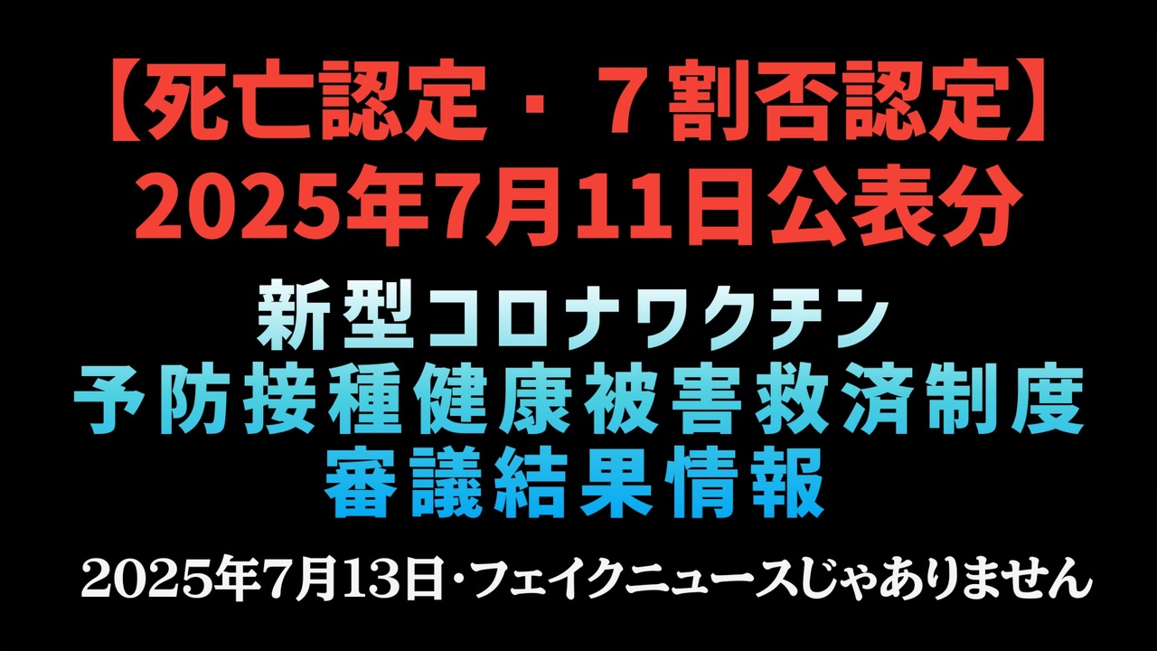 【フェイクニュースじゃありません】◆2025年7月11日公表分・新型コロナワクチン・予防接種健康被害救済制度・審議結果情報【死亡認定・7割否認定】<a href="https://x.com/JINKOUZOUKA_jp/status/1943545167367041433?t=uYfxqiPUguvMEe7yfCDhFw&s=19" target="_blank" rel="noopener nofollow">https://x.com/JINKOUZOUKA_jp/status/1943545167367041433?t=uYfxqiPUguvMEe7yfCDhFw&s=19</a><br><br><br>◆今回の台本<a href="https://keiichiro8140.hatenablog.com/entry/20250713999" target="_blank" rel="noopener nofollow">https://keiichiro8140.hatenablog.com/entry/20250713999</a><br><br><br>◆YouTubeチャンネル登録よろしくお願いします<a href="https://youtube.com/@k16_888?si=1S8pLN1Tf9bGiJyV" target="_blank" rel="noopener nofollow">https://youtube.com/@k16_888?si=1S8pLN1Tf9bGiJyV</a><br><br><br><br>◆もしも(BAN)の時のためのマイリンク集<a href="https://lit.link/K16_888" target="_blank" rel="noopener nofollow">https://lit.link/K16_888</a><br><br><br>◆0.1%が気になる方用<a href="https://www.nicovideo.jp/watch/sm44850879" class="watch">sm44850879</a><br><br><br>気になったニュース 2025/7/13<br><br><br />著作権、肖像権に配慮して作成しております。<br><br>◆気になったニュースの台本!?<br>メモ代わりに作った台本をそのままあげてます<br><a href="https://keiichiro8140.hatenablog.com/." target="_blank" rel="noopener nofollow">https://keiichiro8140.hatenablog.com/.</a><br><br><br>ここからはシリーズ紹介<br><br><br>◆ ワクチン解毒・デトックス<br><a href="https://x.gd/fZweg" target="_blank" rel="noopener nofollow">https://x.gd/fZweg</a><br><br>◆ウイリアム・マキス博士のがん治療(イベルメクチン・フェンベンダゾール等)<br><a href="https://x.gd/AtFYS" target="_blank" rel="noopener nofollow">https://x.gd/AtFYS</a><br><br>◆予防接種健康被害救済制度<br><a href="https://x.gd/0xK9x" target="_blank" rel="noopener nofollow">https://x.gd/0xK9x</a><br><br>◆気になったニュース #1501~<br><br>◆ 【ショートver】気になったニュース<br><a href="https://x.gd/7MxXC" target="_blank" rel="noopener nofollow">https://x.gd/7MxXC</a><br><br>◆ 気になったニュース #1001~<br><a href="https://x.gd/Lp8gv" target="_blank" rel="noopener nofollow">https://x.gd/Lp8gv</a><br><br>◆ 気になったニュース #501~<br><a href="https://x.gd/EmbS4" target="_blank" rel="noopener nofollow">https://x.gd/EmbS4</a><br><br>◆ 気になったニュース #1~#500<br><a href="https://x.gd/uPhNb" target="_blank" rel="noopener nofollow">https://x.gd/uPhNb</a><br><br>◆ X(旧Twitter)・テレグラムで気になった情報<br><a href="https://x.gd/YG6FT" target="_blank" rel="noopener nofollow">https://x.gd/YG6FT</a><br><br>◆ 日比谷5万人パレードデ⚪生放送アーカイブ動画<br><a href="https://x.gd/3CHJv" target="_blank" rel="noopener nofollow">https://x.gd/3CHJv</a><br><br>◆日比谷5万人パレード⚪モのマイリスト作ってみました<br><a href="https://nico.ms/mylist/76828848?ref=sp_other" target="_blank" rel="noopener nofollow">https://nico.ms/mylist/76828848?ref=sp_other</a><br><br>◆3.30 令和の百姓⚪⚪<br><a href="https://www.nicovideo.jp/series/511791?ref=garage_share_other" target="_blank" rel="noopener nofollow">https://www.nicovideo.jp/series/511791?ref=garage_share_other</a><br><br>◆ 及川幸久さんの【XNEWS】シリーズ<br><a href="https://x.gd/3k78K" target="_blank" rel="noopener nofollow">https://x.gd/3k78K</a><br><br>◆これまでの動画<a href="https://x.gd/sPXoJ" target="_blank" rel="noopener nofollow">https://x.gd/sPXoJ</a><br><br>◆もしも(BAN)の時のためのマイリンク集<a href="https://lit.link/K-16_News44" target="_blank" rel="noopener nofollow">https://lit.link/K-16_News44</a><br><br>
