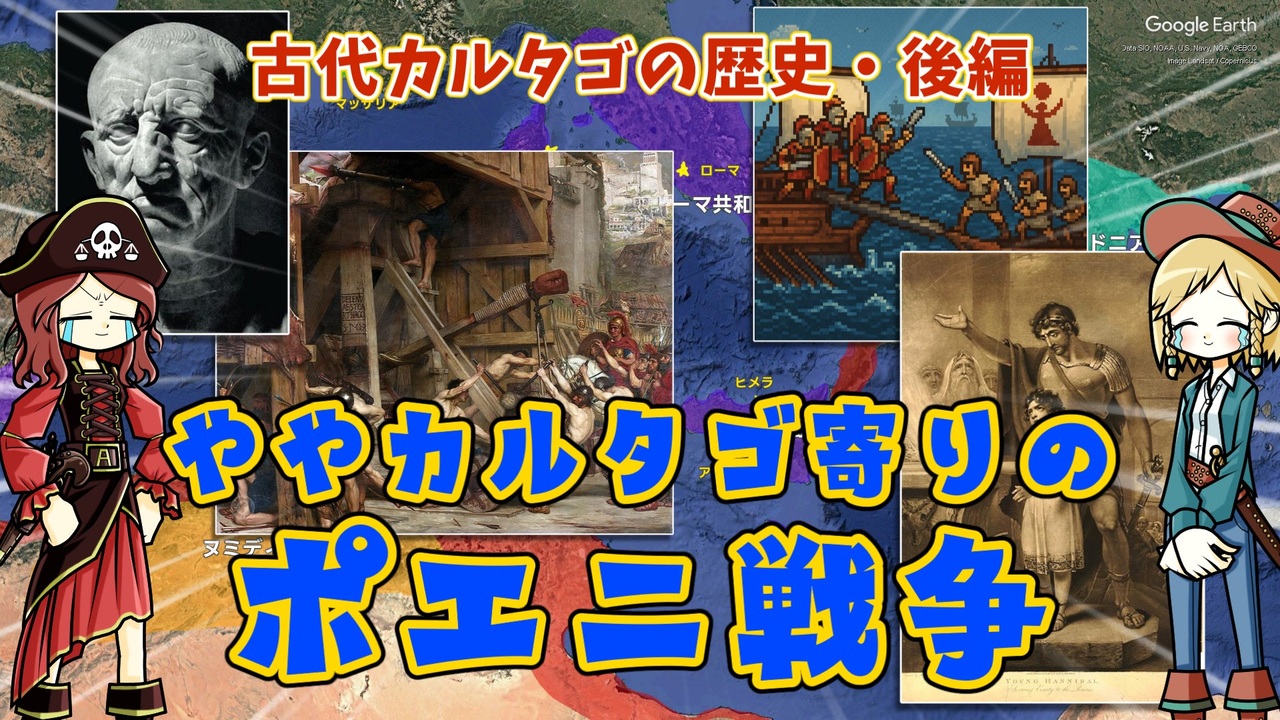 前編→ <a href="https://www.nicovideo.jp/watch/sm45163193?ref=garage_share_other" target="_blank" rel="noopener nofollow">https://www.nicovideo.jp/watch/sm45163193?ref=garage_share_other</a><br>基礎編→<a href="https://www.nicovideo.jp/watch/sm45093471?ref=garage_share_other" target="_blank" rel="noopener nofollow">https://www.nicovideo.jp/watch/sm45093471?ref=garage_share_other</a><br><br>カルタゴ史の後半です。トラジメーノ湖畔の戦いとカンネの戦いが全く出てこないポエニ戦争です(うせやろ?)。 <br>それでも40分近くなっちゃった。そう。それだけ語ることがいっぱいある時代でした。有名な戦闘無しでも。逆に。 <br>そんな感じの逆張り動画です。よろしこしこ。 <br>今回の参考文献: マリア=ジュリア・アマダジ(2009)『カルタゴの歴史 地中海覇権をめぐる戦い』石川勝二訳 白水社<br>栗田信子/佐藤育子(2016)『興亡の世界史 通商国家カルタゴ』講談社<br>ジャン・ユレ(2013)『シチリアの歴史』幸田礼雅訳 白水社<br>長谷川博隆「カルタゴの国制とハンニバル 前196年の国制改革への道」名古屋大学文学部研究論集 名古屋大学学術機関リポジトリ→<a href="https://nagoya.repo.nii.ac.jp/record/8144/files/jouflh_28_1.pdf" target="_blank" rel="noopener nofollow">https://nagoya.repo.nii.ac.jp/record/8144/files/jouflh_28_1.pdf</a> <br><br>その他 Wikipediaなど <br>twitter | <a href="https://twitter.com/Yukkuri_mond" target="_blank" rel="noopener nofollow">https://twitter.com/Yukkuri_mond</a><br />━━━━━━━━━━━━━━━━━━━━━<br><br>この動画はクリエイティブ・コモンズ継承(CC-BY-SA)ライセンスの素材を使用して制作しています。(<a href="https://creativecommons.org/licenses/by-sa/4.0/)" target="_blank" rel="noopener nofollow">https://creativecommons.org/licenses/by-sa/4.0/)</a><br>規約に基づき、この動画もCC-BY-SA 4.0 のもとで公開します。<br><br>投稿者共通情報☆彡<br><br>BGM, SE:ニコニ・コモンズ様<br><a href="http://commons.nicovideo.jp/" target="_blank" rel="noopener nofollow">http://commons.nicovideo.jp/</a><br>魔王魂様<br><a href="https://maoudamashii.jokersounds.com/" target="_blank" rel="noopener nofollow">https://maoudamashii.jokersounds.com/</a><br>Audiostock様<br><a href="https://audiostock.jp/" target="_blank" rel="noopener nofollow">https://audiostock.jp/</a><br><br>立ち絵 霊夢・魔理沙(黒子式):nicotalk様<br><a href="http://www.nicotalk.com/charasozai.html" target="_blank" rel="noopener nofollow">http://www.nicotalk.com/charasozai.html</a><br><br>立ち絵 パトラ、マリー、アン、メアリ:ライフライフ様<br><a href="https://0801lifelife.tumblr.com/" target="_blank" rel="noopener nofollow">https://0801lifelife.tumblr.com/</a><br><br>使用ツール1:ゆっくりムービーメーカー4<br><a href="https://manjubox.net/ymm4/" target="_blank" rel="noopener nofollow">https://manjubox.net/ymm4/</a><br><br>使用ツール2:AviUtl<br><a href="http://spring-fragrance.mints.ne.jp/aviutl/" target="_blank" rel="noopener nofollow">http://spring-fragrance.mints.ne.jp/aviutl/</a><br><br>各時代の地図 : World History Maps & Timelines <br><a href="http://geacron.com/home-en/" target="_blank" rel="noopener nofollow">http://geacron.com/home-en/</a><br><br>ゆっくりボイスについて:AquesTalkライセンス取得済み<br><br>キャラクターボイス<br>アン・ボニー:羽ノ華(A.I.VOICE)<br>メアリ・リード:琴葉 葵(A.I.VOICE)<br>クレオパトラ:結月ゆかり(VOICEROID2)<br>マリー‐アントワネット:東北きりたん (VOICEROID EX)<br>その他キャラ:青山龍星(A.I.VOICE)、伊織弓鶴(A.I.VOICE2)、栗田まろん(A.I.VOICE)、宮舞モカ(VOICEPEAK)、フリモメン(VOICEPEAK)<br><br><br><br>その他フリー素材ご提供元の皆様に圧倒的感謝<br>