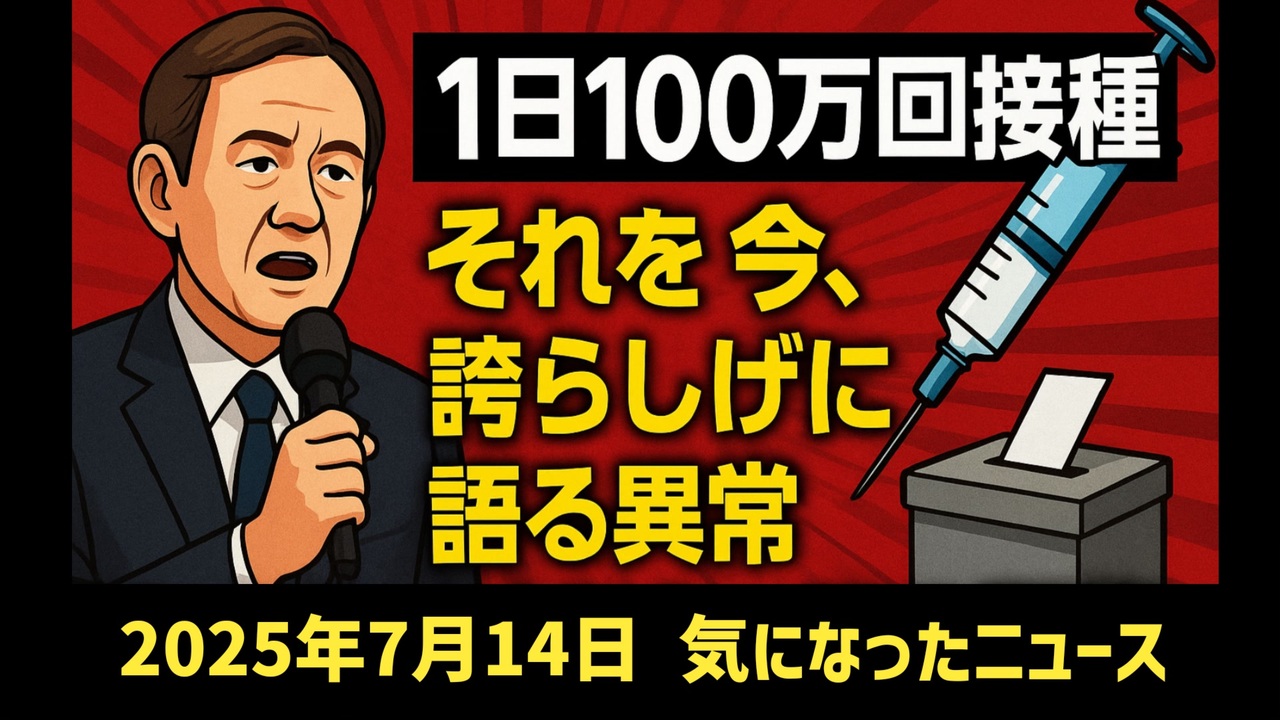 【参院選2025】◆1日100万回接種それを今、誇らしげに語るという異常<a href="https://x.com/mezameworld/status/1944359585801707841?t=atQl5lYiAwcWPowoJ0EEqQ&s=19" target="_blank" rel="noopener nofollow">https://x.com/mezameworld/status/1944359585801707841?t=atQl5lYiAwcWPowoJ0EEqQ&s=19</a><br><br><br>◆今回の台本<a href="https://keiichiro8140.hatenablog.com/entry/20250714888" target="_blank" rel="noopener nofollow">https://keiichiro8140.hatenablog.com/entry/20250714888</a><br><br><br>◆YouTubeチャンネル登録よろしくお願いします<a href="https://youtube.com/@k16_888?si=1S8pLN1Tf9bGiJyV" target="_blank" rel="noopener nofollow">https://youtube.com/@k16_888?si=1S8pLN1Tf9bGiJyV</a><br><br><br>◆もしも(BAN)の時のためのマイリンク集<a href="https://lit.link/K16_888" target="_blank" rel="noopener nofollow">https://lit.link/K16_888</a><br><br><br>気になったニュース 2025/7/14<br><br><br />著作権、肖像権に配慮して作成しております。<br><br>◆気になったニュースの台本!?<br>メモ代わりに作った台本をそのままあげてます<br><a href="https://keiichiro8140.hatenablog.com/." target="_blank" rel="noopener nofollow">https://keiichiro8140.hatenablog.com/.</a><br><br><br>ここからはシリーズ紹介<br><br><br>◆ ワクチン解毒・デトックス<br><a href="https://x.gd/fZweg" target="_blank" rel="noopener nofollow">https://x.gd/fZweg</a><br><br>◆ウイリアム・マキス博士のがん治療(イベルメクチン・フェンベンダゾール等)<br><a href="https://x.gd/AtFYS" target="_blank" rel="noopener nofollow">https://x.gd/AtFYS</a><br><br>◆予防接種健康被害救済制度<br><a href="https://x.gd/0xK9x" target="_blank" rel="noopener nofollow">https://x.gd/0xK9x</a><br><br>◆気になったニュース #1501~<br><br>◆ 【ショートver】気になったニュース<br><a href="https://x.gd/7MxXC" target="_blank" rel="noopener nofollow">https://x.gd/7MxXC</a><br><br>◆ 気になったニュース #1001~<br><a href="https://x.gd/Lp8gv" target="_blank" rel="noopener nofollow">https://x.gd/Lp8gv</a><br><br>◆ 気になったニュース #501~<br><a href="https://x.gd/EmbS4" target="_blank" rel="noopener nofollow">https://x.gd/EmbS4</a><br><br>◆ 気になったニュース #1~#500<br><a href="https://x.gd/uPhNb" target="_blank" rel="noopener nofollow">https://x.gd/uPhNb</a><br><br>◆ X(旧Twitter)・テレグラムで気になった情報<br><a href="https://x.gd/YG6FT" target="_blank" rel="noopener nofollow">https://x.gd/YG6FT</a><br><br>◆ 日比谷5万人パレードデ⚪生放送アーカイブ動画<br><a href="https://x.gd/3CHJv" target="_blank" rel="noopener nofollow">https://x.gd/3CHJv</a><br><br>◆日比谷5万人パレード⚪モのマイリスト作ってみました<br><a href="https://nico.ms/mylist/76828848?ref=sp_other" target="_blank" rel="noopener nofollow">https://nico.ms/mylist/76828848?ref=sp_other</a><br><br>◆3.30 令和の百姓⚪⚪<br><a href="https://www.nicovideo.jp/series/511791?ref=garage_share_other" target="_blank" rel="noopener nofollow">https://www.nicovideo.jp/series/511791?ref=garage_share_other</a><br><br>◆ 及川幸久さんの【XNEWS】シリーズ<br><a href="https://x.gd/3k78K" target="_blank" rel="noopener nofollow">https://x.gd/3k78K</a><br><br>◆これまでの動画<a href="https://x.gd/sPXoJ" target="_blank" rel="noopener nofollow">https://x.gd/sPXoJ</a><br><br>◆もしも(BAN)の時のためのマイリンク集<a href="https://lit.link/K-16_News44" target="_blank" rel="noopener nofollow">https://lit.link/K-16_News44</a><br><br>