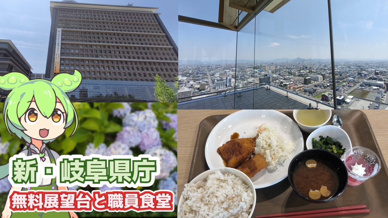 【岐阜県庁(岐阜県岐阜市薮田南2丁目1−1)】<br>老朽化や耐震性の問題から、建て替え工事をしていた岐阜県庁ですが<br>2023年1月4日に開庁しました。<br>1~3階、20階は一般開放されており、展望ロビーや職員食堂の利用ができるので<br>今回は展望ロビーに行ってから職員食堂でお昼を食べることにしました。<br><br><br>【参考】<br>県庁舎のご案内(岐阜県)<br><a href="https://www.pref.gifu.lg.jp/site/ken-shisetsu/2965.html" target="_blank" rel="noopener nofollow">https://www.pref.gifu.lg.jp/site/ken-shisetsu/2965.html</a><br>20階展望ロビーを試行的に土日祝日に開放します 2025.05.26(岐阜県)<br><a href="https://www.pref.gifu.lg.jp/page/432677.html" target="_blank" rel="noopener nofollow">https://www.pref.gifu.lg.jp/page/432677.html</a><br>(一財)岐阜県職員互助会職員食堂(岐阜県)<br><a href="https://www.pref.gifu.lg.jp/page/9747.html" target="_blank" rel="noopener nofollow">https://www.pref.gifu.lg.jp/page/9747.html</a><br>令和6年中の交通事故多発場所ワースト10 2025.02.26(岐阜県警察)<br><a href="https://www.pref.gifu.lg.jp/site/police/416451.html" target="_blank" rel="noopener nofollow">https://www.pref.gifu.lg.jp/site/police/416451.html</a><br>岐阜県内初のフレンチブル警察犬、名前は「オレオ」よろしくね <br>関署が嘱託書 2025.04.14(中日新聞)<br><a href="https://www.chunichi.co.jp/article/1053003" target="_blank" rel="noopener nofollow">https://www.chunichi.co.jp/article/1053003</a><br>フレンチブルドッグが岐阜県で初めての警察犬に!【メ~ロメロ!ポスト】(メーテレ)<br><a href="https://www.youtube.com/watch?v=Ki3-FLkVSh8" target="_blank" rel="noopener nofollow">https://www.youtube.com/watch?v=Ki3-FLkVSh8</a><br>ファミリーマート岐阜県庁店(ファミリーマート)<br><a href="https://www.family.co.jp/company/news_releases/2008/20080327_02.html" target="_blank" rel="noopener nofollow">https://www.family.co.jp/company/news_releases/2008/20080327_02.html</a><br><br>【使用した素材】(※敬称略)<br>(合成音声)VOICEVOX/ずんだもん/四国めたん<br><a href="https://voicevox.hiroshiba.jp/" target="_blank" rel="noopener nofollow">https://voicevox.hiroshiba.jp/</a><br>(立ち絵)坂本アヒル<br><a href="https://seiga.nicovideo.jp/seiga/m10788496/im10791276" target="_blank" rel="noopener nofollow">https://seiga.nicovideo.jp/seiga/m10788496/im10791276</a><br>(楽曲)甘茶の音楽工房/「日々是好日」<br><a href="https://amachamusic.chagasi.com" target="_blank" rel="noopener nofollow">https://amachamusic.chagasi.com</a>