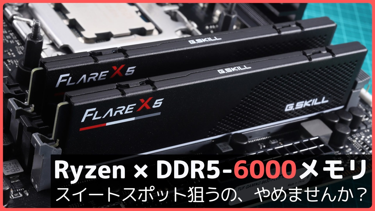 実験室 #11<br>「すいーとすぽっと」<br><br>▼この動画の関連ポスト(X)<br><a href="https://x.com/dougaMAT/status/1944805190277980496" target="_blank" rel="noopener nofollow">https://x.com/dougaMAT/status/1944805190277980496</a><br>▼YouTube版<br><a href="https://youtu.be/Qu98Gvw7z4U" target="_blank" rel="noopener nofollow">https://youtu.be/Qu98Gvw7z4U</a><br>▼マシュマロ<br><a href="https://marshmallow-qa.com/r9bctjl0hsulsj4" target="_blank" rel="noopener nofollow">https://marshmallow-qa.com/r9bctjl0hsulsj4</a><br><br><br>○出典&参考資料<br>▽Ryzen 7 9800X3Dの製品仕様【AMD】<br><a href="https://www.amd.com/ja/products/processors/desktops/ryzen/9000-series/amd-ryzen-7-9800x3d.html" target="_blank" rel="noopener nofollow">https://www.amd.com/ja/products/processors/desktops/ryzen/9000-series/amd-ryzen-7-9800x3d.html</a><br>▽AMD Extended Profiles for Overclocking (EXPO)【AMD】<br><a href="https://www.amd.com/ja/products/processors/technologies/expo.html" target="_blank" rel="noopener nofollow">https://www.amd.com/ja/products/processors/technologies/expo.html</a><br>▽デスクトップ向け AMD Ryzen プロセッサ【AMD】※公式の製品PR<br><a href="https://www.amd.com/ja/products/processors/desktops/ryzen.html" target="_blank" rel="noopener nofollow">https://www.amd.com/ja/products/processors/desktops/ryzen.html</a><br>▽DDR5 6000 vs 8000 MHz RAM – AMD Ryzen 9 9950X【Hardware Busters】 ※公式資料の丸コピ<br><a href="https://hwbusters.com/cpu/ddr5-6000-vs-8000-mhz-ram-amd-ryzen-9-9950x/2/" target="_blank" rel="noopener nofollow">https://hwbusters.com/cpu/ddr5-6000-vs-8000-mhz-ram-amd-ryzen-9-9950x/2/</a><br><br><a href="#" class="seekTime" data-seekTime="00:00" onclick="seekNicoPlayer('#00:00'); return false;">#00:00</a> オープニング<br><a href="#" class="seekTime" data-seekTime="00:36" onclick="seekNicoPlayer('#00:36'); return false;">#00:36</a> DDR5-6000がスイートスポットな理由<br><a href="#" class="seekTime" data-seekTime="02:02" onclick="seekNicoPlayer('#02:02'); return false;">#02:02</a> DDR5-6000動作は製品仕様外<br><a href="#" class="seekTime" data-seekTime="02:52" onclick="seekNicoPlayer('#02:52'); return false;">#02:52</a> 検証環境<br><a href="#" class="seekTime" data-seekTime="06:08" onclick="seekNicoPlayer('#06:08'); return false;">#06:08</a> メモリ帯域幅<br><a href="#" class="seekTime" data-seekTime="07:14" onclick="seekNicoPlayer('#07:14'); return false;">#07:14</a> メモリレイテンシ<br><a href="#" class="seekTime" data-seekTime="07:59" onclick="seekNicoPlayer('#07:59'); return false;">#07:59</a> Cinebench 2024「Multi Core」<br><a href="#" class="seekTime" data-seekTime="08:38" onclick="seekNicoPlayer('#08:38'); return false;">#08:38</a> Cinebench 2024「Single Core」<br><a href="#" class="seekTime" data-seekTime="09:05" onclick="seekNicoPlayer('#09:05'); return false;">#09:05</a> Blender Benchmark<br><a href="#" class="seekTime" data-seekTime="09:40" onclick="seekNicoPlayer('#09:40'); return false;">#09:40</a> モニタリングデータ<br><a href="#" class="seekTime" data-seekTime="13:53" onclick="seekNicoPlayer('#13:53'); return false;">#13:53</a> ゲーム系ベンチマーク<br><a href="#" class="seekTime" data-seekTime="14:15" onclick="seekNicoPlayer('#14:15'); return false;">#14:15</a> FF14ベンチマーク<br><a href="#" class="seekTime" data-seekTime="14:52" onclick="seekNicoPlayer('#14:52'); return false;">#14:52</a> VALORANT<br><a href="#" class="seekTime" data-seekTime="15:28" onclick="seekNicoPlayer('#15:28'); return false;">#15:28</a> フォートナイト<br><a href="#" class="seekTime" data-seekTime="16:00" onclick="seekNicoPlayer('#16:00'); return false;">#16:00</a> Forza Horizon 5<br><a href="#" class="seekTime" data-seekTime="16:29" onclick="seekNicoPlayer('#16:29'); return false;">#16:29</a> モンハンワイルズベンチマーク<br><a href="#" class="seekTime" data-seekTime="17:08" onclick="seekNicoPlayer('#17:08'); return false;">#17:08</a> アサクリシャドウズ<br><a href="#" class="seekTime" data-seekTime="17:36" onclick="seekNicoPlayer('#17:36'); return false;">#17:36</a> MSFS 2024<br><a href="#" class="seekTime" data-seekTime="18:23" onclick="seekNicoPlayer('#18:23'); return false;">#18:23</a> ベンチマーク結果まとめ<br><a href="#" class="seekTime" data-seekTime="19:26" onclick="seekNicoPlayer('#19:26'); return false;">#19:26</a> まとめ<br /><br>▼マイリスト│シリーズ<br>あかりチャンのジサカートーク <a href="https://www.nicovideo.jp/mylist/78957417" target="_blank" rel="noopener">mylist/78957417</a>│<a href="https://www.nicovideo.jp/series/534974" target="_blank" rel="noopener">series/534974</a><br>雑談遊園地 <a href="https://www.nicovideo.jp/mylist/78960043" target="_blank" rel="noopener">mylist/78960043</a>│<a href="https://www.nicovideo.jp/series/482597" target="_blank" rel="noopener">series/482597</a><br>サンディー葵のサーマルグリスレビュー <a href="https://www.nicovideo.jp/mylist/75985715" target="_blank" rel="noopener">mylist/75985715</a>│<a href="https://www.nicovideo.jp/series/442231" target="_blank" rel="noopener">series/442231</a><br>Vx2log (Voiceroid Video Log) <a href="https://www.nicovideo.jp/mylist/69233238" target="_blank" rel="noopener">mylist/69233238</a>│<a href="https://www.nicovideo.jp/series/152376" target="_blank" rel="noopener">series/152376</a><br>あかりチャンのジサカー豆知識 <a href="https://www.nicovideo.jp/mylist/69396079" target="_blank" rel="noopener">mylist/69396079</a>│<a href="https://www.nicovideo.jp/series/157584" target="_blank" rel="noopener">series/157584</a><br>茜ちゃんのジサカーダイアリー <a href="https://www.nicovideo.jp/mylist/68161709" target="_blank" rel="noopener">mylist/68161709</a>│<a href="https://www.nicovideo.jp/series/118134" target="_blank" rel="noopener">series/118134</a><br>