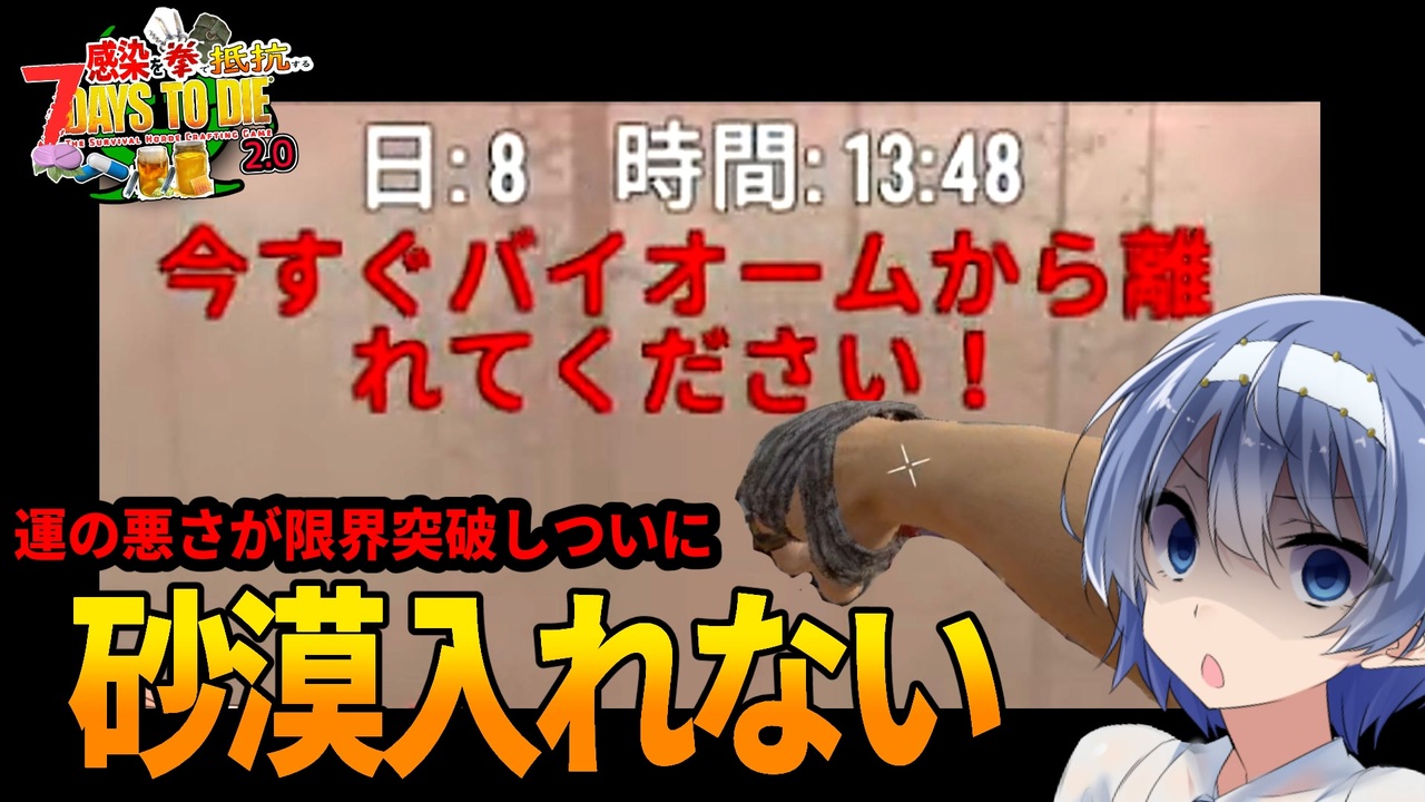 プライムデーで抱きまくらを買ったところ、<br>寝心地が良い反面かけ布団が剥げやすいという欠点があり、冷風が睡眠中直撃。<br>→見事に風邪を引き、1日中頭痛が止まらない&熱を出すというコンディション不良で1日遅れました。<br> ごめんなさい。<br><s>対策として抱き枕はつづみちゃんに代わってもらうことになりました</s><br><br>いつもの感染縛りに加えて、拳(銃)のみの超過酷な縛りとなります。<br>ちなみに2.0ではスレッジハンマーの本シリーズが追加されましたが、拳関係は全く強化されませんでした。<br><br>結月ゆかり(A.I.Voice 淫)、さとうささら(CevioAI でかああああ)、すずきつづみ(Cevio きゃあああ)琴葉茜・葵(A.I.Voice2)、ずんだもん(なのだ VoiceVOX) 春日部つむぎ(埼玉の何にでも優しい最強ギャル)ナースロボ_タイプT(手が滑るか錯乱しがち)もち子さん(もちぃ)※VoiceVOX<br>COEIROINKから松嘩りすくが賑やかしにやってきましたがリリンちゃん(ざぁ~こ)とクロワちゃん(んほ)も便乗して参加しました。<br>東北きりたん(っす!)とフリモメンもいます(VoicePEAK)<br>小樽高校から小春六花(抜けきらない中2設定)さんと夏色花梨先輩(◯カ)もやってきました。ポンコツです。<br>ゲスト<br>COEIROINK:つくよみちゃん<br><br>以上のまたしても人数が増えすぎたVOICEROID実況もといソフトウェアトーク実況でお送りいたします。<br><br>※グロテスク要素(欠損・首が飛んだり)が映り込んでしまうことがございます。ご注意ください。<br>※音量周りにご注意ください。<br /><span style="font-size: 16px;"><strong>バックパックサバイバーゾンビゲー</strong></span><br><span style="font-size: 18px;"><strong><a href="https://www.nicovideo.jp/watch/sm45887821" class="watch">sm45887821</a></strong></span><br><br>運全振りなThe WasteLand MOD(完結)<br><a href="https://www.nicovideo.jp/series/535958" target="_blank" rel="noopener">series/535958</a><br><br>パート1と単発まとめ<br><a href="https://www.nicovideo.jp/mylist/72399112" target="_blank" rel="noopener">mylist/72399112</a><br><br>その他<br><a href="https://www.nicovideo.jp/series/164391" target="_blank" rel="noopener">series/164391</a><br><br>ツイッター(現X)<br><a href="https://twitter.com/nec_gene" target="_blank" rel="noopener nofollow">https://twitter.com/nec_gene</a><br>ユーチューブ<br><a href="https://www.youtube.com/channel/UCTUIH2IZyXF_NY4NnUHWBWQ" target="_blank" rel="noopener nofollow">https://www.youtube.com/channel/UCTUIH2IZyXF_NY4NnUHWBWQ</a>