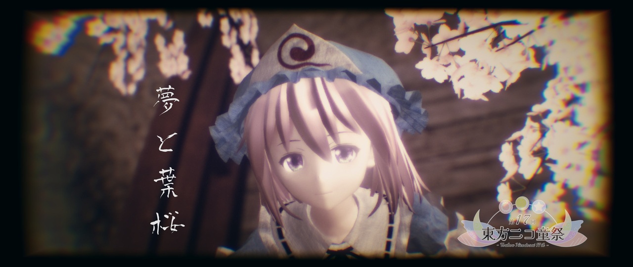 <strong>本作品は東方Project・上海アリス幻樂団の二次創作のダンス作品です。</strong><br><u>注意)他の方(うp主含む)が不愉快に思われること(お借りしてる作品等に関しても含む)や<br>公序良俗に反することや下ネタなどはコメントには書かないようお願いいたします。<br>そのような場合NG登録させていただきます。</u><br><br>「前回の作品は・・・去年の11月!?」<br>気が付けば8か月ほどMMDから離れていました。<br>そして一昨日ぐらいにSNSに浮上して「東方ニコ童祭」(<a href="https://www.nicovideo.jp/watch/sm44840800" class="watch">sm44840800</a>)のことを知り・・・<br>今回は諦めよう~って思っていましたが「MMDのリハビリ」ということで<br>無理やり参加することにしました。<br>かなり退化してしまったわけなので・・・<br>世界で2位の大きさの「スペリオル湖」ぐらいの優しい気持ちで<br>ご覧いただけたらと思います。<br><br>楽曲:「夢と葉桜」<br>作詞・作曲:青木月光様<br><br>本作品ボーカル:Akie秋絵様<br><br>モーション・表情・カメラ:reno様<br>※別曲のモーションを仕様しています。<br>※カメラ改変しております。<br><br>モデル:アールビット様/ゴマボウ様<br>瞳テクスチャ:のりしお様<br><br>ステージ:一護牛乳様/winglayer様/のりしお様/鯖缶様<br><br>エフェクト:そぼろ様/ikeno様/サンドマン様/月結様/winglayer様/NOMBIRI-YA様<br>jyoko様/のりしお様/おたもん様/ひいらぎ様/ヨーグルト姉様/ラテ様<br><br>ツール:樋口優様/舞力介入P様/KENくん様/窓屋様<br><br>リップ・制作:冴。