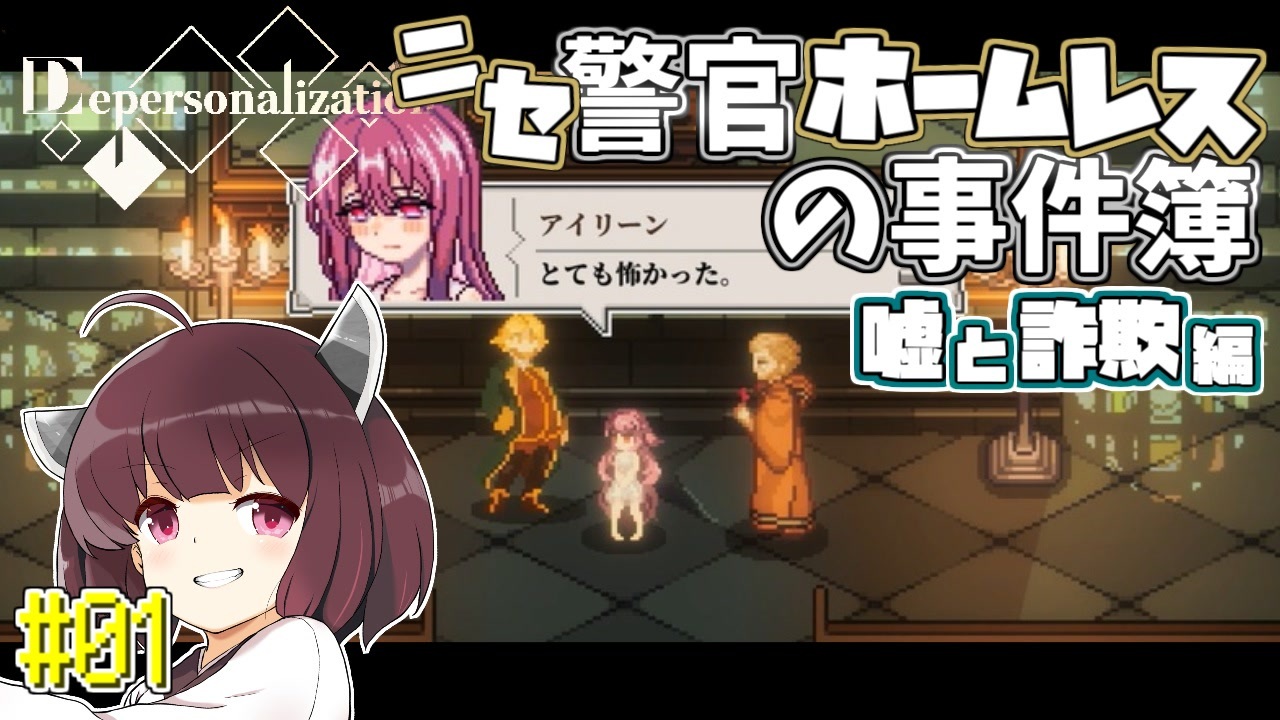 ようやく本編です。最初のシナリオは「嘘と詐欺」。<br>・・・偶然だけど偽警官に相応しいシナリオ名ですね?<br><br> <a href="https://www.nicovideo.jp/watch/sm44990939" class="watch">sm44990939</a>←前 次→<a href="https://www.nicovideo.jp/watch/sm45217335" class="watch">sm45217335</a><br> でぱーそならいぜーしょん:<a href="https://www.nicovideo.jp/mylist/77901344" target="_blank" rel="noopener">mylist/77901344</a><br><span style="font-size: 10px;">日本語訳が完了していないゲームなので「AutoTranslator」という自動翻訳modを使用。</span><br><br> サイバーパンク2077:<a href="https://www.nicovideo.jp/mylist/72929717" target="_blank" rel="noopener">mylist/72929717</a><br> きりたん実況part1集:<a href="https://www.nicovideo.jp/mylist/65852559" target="_blank" rel="noopener">mylist/65852559</a><br><br><span style="font-size: 10px;">ゲーム中の文章読み上げ:voicepeakきりたん</span><br><br><i>AutoTranslator先生の導入について</i><br><span style="font-size: 10px;"> 私の導入環境は<a href="https://www.nicovideo.jp/watch/sm44791385" class="watch">sm44791385</a>の冒頭部分の通りなのですが、<br> ゲームや環境によっては部分的に動いたりサッパリ動かなかったりします。むずい。<br> 上手く行かない場合、ゲーム中に「Alt+0(ゼロキー)」で開く管理パネルを見てみる、<br> デフォルトのgoogle先生翻訳に設定を戻す、全部最初から入れ直してみる、<br> steamの関連スレッドを調べてみるなどで何かヒントが見つかるかもしれません。<br> (ttps://steamcommunity.com/groups/ftbsl/discussions/0/3768985348698864328/)</span>