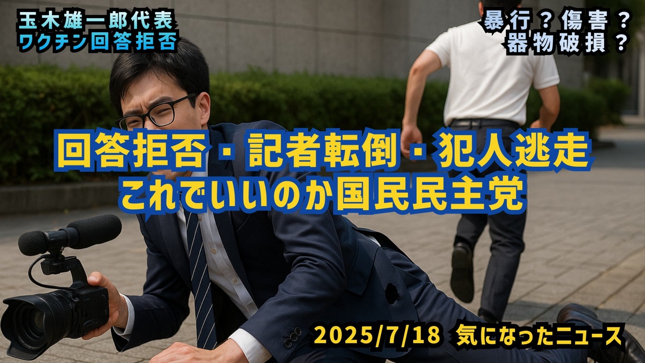 【暴行?傷害?】◆回答拒否 ・記者転倒・犯人逃走…これでいいのか国民民主党【玉木代表ワクチン回答拒否】<a href="https://x.com/JINKOUZOUKA_jp/status/1945695279304622521?t=XPExFqXOXzFAIqwgP16vrg&s=19" target="_blank" rel="noopener nofollow">https://x.com/JINKOUZOUKA_jp/status/1945695279304622521?t=XPExFqXOXzFAIqwgP16vrg&s=19</a><br><br><br>◆今回の台本<a href="https://keiichiro8140.hatenablog.com/entry/20250718111" target="_blank" rel="noopener nofollow">https://keiichiro8140.hatenablog.com/entry/20250718111</a><br><br><br>◆YouTubeチャンネル登録よろしくお願いします<a href="https://youtube.com/@k16_888?si=1S8pLN1Tf9bGiJyV" target="_blank" rel="noopener nofollow">https://youtube.com/@k16_888?si=1S8pLN1Tf9bGiJyV</a><br><br><br><br>◆もしも(BAN)の時のためのマイリンク集<a href="https://lit.link/K16_888" target="_blank" rel="noopener nofollow">https://lit.link/K16_888</a><br><br><br><br>気になったニュース 2025/7/18<br><br><br />著作権、肖像権に配慮して作成しております。<br><br>◆気になったニュースの台本!?<br>メモ代わりに作った台本をそのままあげてます<br><a href="https://keiichiro8140.hatenablog.com/." target="_blank" rel="noopener nofollow">https://keiichiro8140.hatenablog.com/.</a><br><br><br>ここからはシリーズ紹介<br><br><br>◆ ワクチン解毒・デトックス<br><a href="https://x.gd/fZweg" target="_blank" rel="noopener nofollow">https://x.gd/fZweg</a><br><br>◆ウイリアム・マキス博士のがん治療(イベルメクチン・フェンベンダゾール等)<br><a href="https://x.gd/AtFYS" target="_blank" rel="noopener nofollow">https://x.gd/AtFYS</a><br><br>◆予防接種健康被害救済制度<br><a href="https://x.gd/0xK9x" target="_blank" rel="noopener nofollow">https://x.gd/0xK9x</a><br><br>◆気になったニュース #1501~<br><br>◆ 【ショートver】気になったニュース<br><a href="https://x.gd/7MxXC" target="_blank" rel="noopener nofollow">https://x.gd/7MxXC</a><br><br>◆ 気になったニュース #1001~<br><a href="https://x.gd/Lp8gv" target="_blank" rel="noopener nofollow">https://x.gd/Lp8gv</a><br><br>◆ 気になったニュース #501~<br><a href="https://x.gd/EmbS4" target="_blank" rel="noopener nofollow">https://x.gd/EmbS4</a><br><br>◆ 気になったニュース #1~#500<br><a href="https://x.gd/uPhNb" target="_blank" rel="noopener nofollow">https://x.gd/uPhNb</a><br><br>◆ X(旧Twitter)・テレグラムで気になった情報<br><a href="https://x.gd/YG6FT" target="_blank" rel="noopener nofollow">https://x.gd/YG6FT</a><br><br>◆ 日比谷5万人パレードデ⚪生放送アーカイブ動画<br><a href="https://x.gd/3CHJv" target="_blank" rel="noopener nofollow">https://x.gd/3CHJv</a><br><br>◆日比谷5万人パレード⚪モのマイリスト作ってみました<br><a href="https://nico.ms/mylist/76828848?ref=sp_other" target="_blank" rel="noopener nofollow">https://nico.ms/mylist/76828848?ref=sp_other</a><br><br>◆3.30 令和の百姓⚪⚪<br><a href="https://www.nicovideo.jp/series/511791?ref=garage_share_other" target="_blank" rel="noopener nofollow">https://www.nicovideo.jp/series/511791?ref=garage_share_other</a><br><br>◆ 及川幸久さんの【XNEWS】シリーズ<br><a href="https://x.gd/3k78K" target="_blank" rel="noopener nofollow">https://x.gd/3k78K</a><br><br>◆これまでの動画<a href="https://x.gd/sPXoJ" target="_blank" rel="noopener nofollow">https://x.gd/sPXoJ</a><br><br>◆もしも(BAN)の時のためのマイリンク集<a href="https://lit.link/K-16_News44" target="_blank" rel="noopener nofollow">https://lit.link/K-16_News44</a><br><br>
