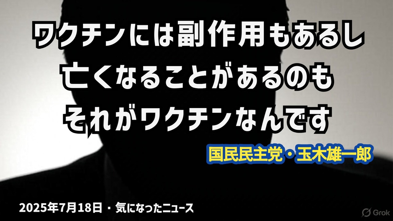 【ワクチンで亡くなることがあるのもワクチン】◆ワクチン発言と治験の誤情報に広がる怒り 政治家は釈明せず、謝罪もなし【国民民主党・玉木代表】<a href="https://x.com/JINKOUZOUKA_jp/status/1945837340498575402?t=ESjvNRnJpLANdMVb8cF3og&s=19" target="_blank" rel="noopener nofollow">https://x.com/JINKOUZOUKA_jp/status/1945837340498575402?t=ESjvNRnJpLANdMVb8cF3og&s=19</a><br><br><br><br>◆今回の台本<a href="https://keiichiro8140.hatenablog.com/entry/20250718888" target="_blank" rel="noopener nofollow">https://keiichiro8140.hatenablog.com/entry/20250718888</a><br><br><br>◆YouTubeチャンネル登録よろしくお願いします<a href="https://youtube.com/@k16_888?si=1S8pLN1Tf9bGiJyV" target="_blank" rel="noopener nofollow">https://youtube.com/@k16_888?si=1S8pLN1Tf9bGiJyV</a><br><br><br>◆もしも(BAN)の時のためのマイリンク集<a href="https://lit.link/K16_888" target="_blank" rel="noopener nofollow">https://lit.link/K16_888</a><br><br><br><br>気になったニュース 2025/7/18<br><br><br />著作権、肖像権に配慮して作成しております。<br><br>◆気になったニュースの台本!?<br>メモ代わりに作った台本をそのままあげてます<br><a href="https://keiichiro8140.hatenablog.com/." target="_blank" rel="noopener nofollow">https://keiichiro8140.hatenablog.com/.</a><br><br><br>ここからはシリーズ紹介<br><br><br>◆ ワクチン解毒・デトックス<br><a href="https://x.gd/fZweg" target="_blank" rel="noopener nofollow">https://x.gd/fZweg</a><br><br>◆ウイリアム・マキス博士のがん治療(イベルメクチン・フェンベンダゾール等)<br><a href="https://x.gd/AtFYS" target="_blank" rel="noopener nofollow">https://x.gd/AtFYS</a><br><br>◆予防接種健康被害救済制度<br><a href="https://x.gd/0xK9x" target="_blank" rel="noopener nofollow">https://x.gd/0xK9x</a><br><br>◆気になったニュース #1501~<br><br>◆ 【ショートver】気になったニュース<br><a href="https://x.gd/7MxXC" target="_blank" rel="noopener nofollow">https://x.gd/7MxXC</a><br><br>◆ 気になったニュース #1001~<br><a href="https://x.gd/Lp8gv" target="_blank" rel="noopener nofollow">https://x.gd/Lp8gv</a><br><br>◆ 気になったニュース #501~<br><a href="https://x.gd/EmbS4" target="_blank" rel="noopener nofollow">https://x.gd/EmbS4</a><br><br>◆ 気になったニュース #1~#500<br><a href="https://x.gd/uPhNb" target="_blank" rel="noopener nofollow">https://x.gd/uPhNb</a><br><br>◆ X(旧Twitter)・テレグラムで気になった情報<br><a href="https://x.gd/YG6FT" target="_blank" rel="noopener nofollow">https://x.gd/YG6FT</a><br><br>◆ 日比谷5万人パレードデ⚪生放送アーカイブ動画<br><a href="https://x.gd/3CHJv" target="_blank" rel="noopener nofollow">https://x.gd/3CHJv</a><br><br>◆日比谷5万人パレード⚪モのマイリスト作ってみました<br><a href="https://nico.ms/mylist/76828848?ref=sp_other" target="_blank" rel="noopener nofollow">https://nico.ms/mylist/76828848?ref=sp_other</a><br><br>◆3.30 令和の百姓⚪⚪<br><a href="https://www.nicovideo.jp/series/511791?ref=garage_share_other" target="_blank" rel="noopener nofollow">https://www.nicovideo.jp/series/511791?ref=garage_share_other</a><br><br>◆ 及川幸久さんの【XNEWS】シリーズ<br><a href="https://x.gd/3k78K" target="_blank" rel="noopener nofollow">https://x.gd/3k78K</a><br><br>◆これまでの動画<a href="https://x.gd/sPXoJ" target="_blank" rel="noopener nofollow">https://x.gd/sPXoJ</a><br><br>◆もしも(BAN)の時のためのマイリンク集<a href="https://lit.link/K-16_News44" target="_blank" rel="noopener nofollow">https://lit.link/K-16_News44</a><br><br>