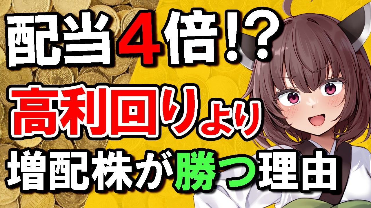 配当金が4倍になった…そのカラクリ、知ってますか?<br><br>2025年も折り返し。後輩ちゃんの不労所得(配当金)も順調に伸びています。今回の動画では2024年→2025年で配当金が約35,000円アップした理由や、「増配率」「年平均成長率」をもとに、どんな株が将来の配当モンスター(化け株)になるのかを解説!<br><br>きりたんの保有株 年平均成長率ランキングも公開!<br><br><br>【関連資料】<br>・株の配当金に関する調査(2024年6月) 日興フロッギー白書 「株の配当金、いくらほしい?」<br><a href="https://prtimes.jp/main/html/rd/p/000000182.000019056.html?utm_source=chatgpt.com" target="_blank" rel="noopener nofollow">https://prtimes.jp/main/html/rd/p/000000182.000019056.html?utm_source=chatgpt.com</a><br><br>・生活や実務に役立つ計算サイト<br><a href="https://keisan.site/exec/system/1317092435" target="_blank" rel="noopener nofollow">https://keisan.site/exec/system/1317092435</a><br><br>・配当金支払額成長率 | 増配率<br><a href="https://zaimani.com/financial-indicators/dividend-payment-amount-cagr/" target="_blank" rel="noopener nofollow">https://zaimani.com/financial-indicators/dividend-payment-amount-cagr/</a><br><br><br>【免責事項】<br>【免責事項】 この動画は情報提供を目的としたものであり、特定の金融商品や投資行動を勧誘・推奨するものではありません。 投資に関する最終的な判断はご自身で行い、リスクを十分にご理解の上でお願いいたします。