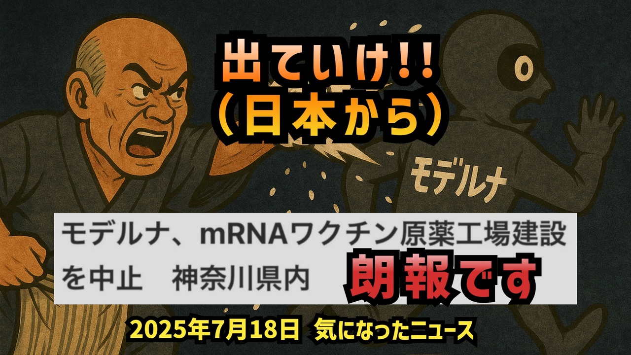 【朗報】◆皆様、参院選前におめでとうございます【モデルナmRNA原薬製造施設計画中止】<br><br>2025年7月、モデルナが日本で進めていたmRNA原薬製造工場の建設計画を突如中止。2023年に経産省の補助対象となり、日本のmRNA国内供給体制の要とされていたはずの事業が、2年足らずで「環境の変化」を理由に見送られました。一方で研究用施設の建屋は完成済み。SNSでは「毒ワクチンがバレた」「国民の拒否が効いた」といった声が広がっています。グローバリズムに抗うこの一手が、次の展開への序章なのか――。医療の支配構造に光を当てる一報です。<a href="https://x.com/mt9jyo/status/1946116343708925985?t=_143WQrWwe1wCoVhrVVTZw&s=19" target="_blank" rel="noopener nofollow">https://x.com/mt9jyo/status/1946116343708925985?t=_143WQrWwe1wCoVhrVVTZw&s=19</a><br><br><br>◆今回の台本<a href="https://keiichiro8140.hatenablog.com/entry/20250718" target="_blank" rel="noopener nofollow">https://keiichiro8140.hatenablog.com/entry/20250718</a><br><br><br>◆もしも(BAN)の時のためのマイリンク集<a href="https://lit.link/K16_888" target="_blank" rel="noopener nofollow">https://lit.link/K16_888</a><br><br><br>気になったニュース 2025/7/18<br><br><br />著作権、肖像権に配慮して作成しております。<br><br>◆気になったニュースの台本!?<br>メモ代わりに作った台本をそのままあげてます<br><a href="https://keiichiro8140.hatenablog.com/." target="_blank" rel="noopener nofollow">https://keiichiro8140.hatenablog.com/.</a><br><br><br>ここからはシリーズ紹介<br><br><br>◆ ワクチン解毒・デトックス<br><a href="https://x.gd/fZweg" target="_blank" rel="noopener nofollow">https://x.gd/fZweg</a><br><br>◆ウイリアム・マキス博士のがん治療(イベルメクチン・フェンベンダゾール等)<br><a href="https://x.gd/AtFYS" target="_blank" rel="noopener nofollow">https://x.gd/AtFYS</a><br><br>◆予防接種健康被害救済制度<br><a href="https://x.gd/0xK9x" target="_blank" rel="noopener nofollow">https://x.gd/0xK9x</a><br><br>◆気になったニュース #1501~<br><br>◆ 【ショートver】気になったニュース<br><a href="https://x.gd/7MxXC" target="_blank" rel="noopener nofollow">https://x.gd/7MxXC</a><br><br>◆ 気になったニュース #1001~<br><a href="https://x.gd/Lp8gv" target="_blank" rel="noopener nofollow">https://x.gd/Lp8gv</a><br><br>◆ 気になったニュース #501~<br><a href="https://x.gd/EmbS4" target="_blank" rel="noopener nofollow">https://x.gd/EmbS4</a><br><br>◆ 気になったニュース #1~#500<br><a href="https://x.gd/uPhNb" target="_blank" rel="noopener nofollow">https://x.gd/uPhNb</a><br><br>◆ X(旧Twitter)・テレグラムで気になった情報<br><a href="https://x.gd/YG6FT" target="_blank" rel="noopener nofollow">https://x.gd/YG6FT</a><br><br>◆ 日比谷5万人パレードデ⚪生放送アーカイブ動画<br><a href="https://x.gd/3CHJv" target="_blank" rel="noopener nofollow">https://x.gd/3CHJv</a><br><br>◆日比谷5万人パレード⚪モのマイリスト作ってみました<br><a href="https://nico.ms/mylist/76828848?ref=sp_other" target="_blank" rel="noopener nofollow">https://nico.ms/mylist/76828848?ref=sp_other</a><br><br>◆3.30 令和の百姓⚪⚪<br><a href="https://www.nicovideo.jp/series/511791?ref=garage_share_other" target="_blank" rel="noopener nofollow">https://www.nicovideo.jp/series/511791?ref=garage_share_other</a><br><br>◆ 及川幸久さんの【XNEWS】シリーズ<br><a href="https://x.gd/3k78K" target="_blank" rel="noopener nofollow">https://x.gd/3k78K</a><br><br>◆これまでの動画<a href="https://x.gd/sPXoJ" target="_blank" rel="noopener nofollow">https://x.gd/sPXoJ</a><br><br>◆もしも(BAN)の時のためのマイリンク集<a href="https://lit.link/K-16_News44" target="_blank" rel="noopener nofollow">https://lit.link/K-16_News44</a><br><br>