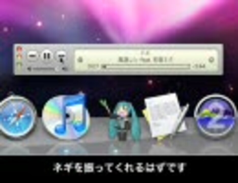 <a href="https://www.nicovideo.jp/watch/sm4377055" class="watch">sm4377055</a>の続きです。あまりに暇ではなかったのですが、前回のをちょっと改良してみました。BGMはIevan Polkka:<a href="https://www.nicovideo.jp/watch/sm982882" class="watch">sm982882</a>と<a href="https://www.nicovideo.jp/watch/sm3505467" class="watch">sm3505467</a>と、途中<a href="https://www.nicovideo.jp/watch/sm1817563" class="watch">sm1817563</a>、<a href="https://www.nicovideo.jp/watch/sm1097445" class="watch">sm1097445</a>をお借りしました。画像はたまごさんのをお借りしました:<a href="http://www.pocopoco.cc/" target="_blank" rel="noopener nofollow">http://www.pocopoco.cc/</a> <br /><br /><b>(2009/04/07)</b> 最新版を公開しました。バージョン1.0.4です。 <br /><b>(2011/07/22)</b> Mac OS X Lionでの動作を確認しました。 <br /><br />公式サイト: <a href="http://sm4377055.sakuratan.com/" target="_blank" rel="noopener nofollow">http://sm4377055.sakuratan.com/</a><br />