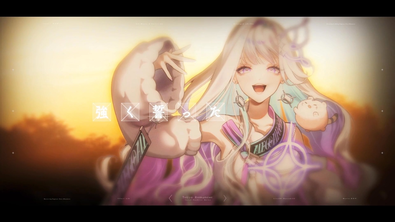▼各種デジタル音源販売<br><a href="https://www.tunecore.co.jp/artists/AlEGO" target="_blank" rel="noopener nofollow">https://www.tunecore.co.jp/artists/AlEGO</a><br>▼【オリ曲】東京ロマンサー<br><a href="https://youtu.be/CSZ413IEpLU" target="_blank" rel="noopener nofollow">https://youtu.be/CSZ413IEpLU</a><br><br>All Music & Lyrics:kn <br>Arranged:yUsUke <br>Recording & Mixing Engineer:Kozo Miyamoto <br>Masterring Engineer:Kozo Miyamoto <br>Illust:ash<br>Live2D:natsuki52<br>Movie:あめや<br>ーーーーーーーーーーーーーーーーー<br>ああこの詩が届くように<br><br>見つめる先 浮かぶ景色<br>果てなき壁 色欲 渦を巻く空に<br>優しげに微笑んでるのか<br>無気力な僕 僅かな希望求め<br><br>最終列車 飛び乗り駆け出す<br>星の音と一緒に<br>街を見ては彩るネオンさえ<br>空虚な嘘<br><br>君と最後に交わしたあの約束<br>未だ果たせなくて<br>この世界で叫び続けて<br>泣いて 壊して<br>踊るチープなライトを纏う影<br>何が、見えてますか?<br>今鳴り響け 解放の詩<br>僕は信じている<br>ああこの詩が届くように<br><br>君の声が聞こえてくる<br>導かれるまま 想うまま衝動の元に<br>祈る思いを手繰り寄せ<br>歌っている光に向かい何度も<br><br>振り返らない 雨は上がっている<br>残酷な刻の夢<br>沈む夕日もう一度あの場所へ<br>君と共に<br><br>ヘッドライトに霞む 杞憂な声<br>何も気取らなくていい<br>擬態していくこの街灯り<br>泣いて 壊して<br>僅かな希望 光 手を伸ばす<br>少年は最後に言った<br>ここで生きる 握り締めた手は<br>強く誓った素直に<br>ああこの詩が届くように<br><br>振り返らない 雨は上がっている<br>残酷な刻の夢<br>沈む夕日もう一度あの場所へ<br>君と共に<br><br>君と最後に交わしたあの約束<br>未だ果たせなくて<br>この世界で叫び続けて<br>泣いて 壊して<br>踊るチープなライトを纏う影<br>何が、見えてますか?<br>今鳴り響け 解放の詩<br>僕は信じている<br>ああこの詩が届くように<br>ーーーーーーーーーーーーーーーーーーー<br />『めいくと一緒に青春つくろう?』 <br><a href="https://www.youtube.com/@mashiromeiku" target="_blank" rel="noopener nofollow">https://www.youtube.com/@mashiromeiku</a><br>♡youtubeにて週5回配信♡ <br>・週に1回の歌枠🎵(土曜日10:00) <br>・ゲーム(アクションRPGや短編ホラゲなど🎵)🎮 <br>・雑談(映画・アニメ・バーチャル界隈語ろう☆)<br><br><br>💬 🎤配信ルーティン🎧 <br>平日は20:30~<br>休日(土日祝)は10:00~<br>から配信してます💙 <br>♡SNS♡ 真白めいく <br><a href="https://x.com/meiku_alego" target="_blank" rel="noopener nofollow">https://x.com/meiku_alego</a> <br>所属グループ AlEGO(オルエゴ) <br><a href="https://x.com/alego_info" target="_blank" rel="noopener nofollow">https://x.com/alego_info</a><br>