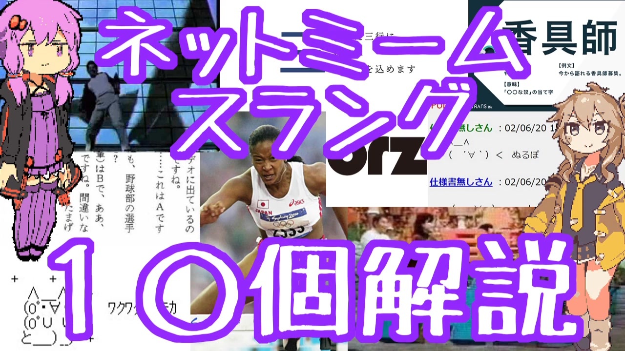 ネットでよく見かけるネタの元ネタなどを10個解説しています<br><br>Cパートあるよおじさん「Cパートあるよ」<br><br>※本編後の方が長いかもしれません。すみません<br><br>1.キボンヌ<br>2.ぬるぽ<br>3.今北産業<br>4.キタ―――(゚∀゚)―――― !!<br>5.香具師<br>6.wktk<br>7.DQN<br>8.orz<br>9.たまげたなあ<br>10.鮫島事件<br><br><br>前⇒<a href="https://www.nicovideo.jp/watch/sm45202020" class="watch">sm45202020</a><br>次⇒<a href="https://www.nicovideo.jp/watch/sm45367348" class="watch">sm45367348</a><br><br>part1⇒<a href="https://www.nicovideo.jp/watch/sm43894948" class="watch">sm43894948</a><br>解説済みのネタ一覧⇒<a href="https://docs.google.com/spreadsheets/d/13ZNY49m_mK0AZokz-TjV85o_aGCffPzBl7MtOX9wdow/edit?gid=0#gid=0" target="_blank" rel="noopener nofollow">https://docs.google.com/spreadsheets/d/13ZNY49m_mK0AZokz-TjV85o_aGCffPzBl7MtOX9wdow/edit?gid=0#gid=0</a><br><br>雪さんのポケポケ最強証明⇒<a href="https://www.nicovideo.jp/series/497427" target="_blank" rel="noopener">series/497427</a><br>ゆかりさんのマダミス談義⇒<a href="https://www.nicovideo.jp/series/474362" target="_blank" rel="noopener">series/474362</a><br>ふつうの軽音部ふり返り⇒<a href="https://www.nicovideo.jp/series/490000" target="_blank" rel="noopener">series/490000</a><br>結月ゆかりがBUMPの好きな曲を10曲、好きに語る。⇒<a href="https://www.nicovideo.jp/watch/sm44816622" class="watch">sm44816622</a><br><br>【お借りしたもの】<br>くのださん<br>結月ゆかり 立ち絵<br><a href="https://seiga.nicovideo.jp/seiga/im10653504" target="_blank" rel="noopener nofollow">https://seiga.nicovideo.jp/seiga/im10653504</a><br><br>坂本アヒルさん<br>春日部つむぎ立ち絵素材<br><a href="https://seiga.nicovideo.jp/seiga/im10849150" target="_blank" rel="noopener nofollow">https://seiga.nicovideo.jp/seiga/im10849150</a><br><br>苦情など⇒<a href="https://x.com/extra403" target="_blank" rel="noopener nofollow">https://x.com/extra403</a><br>ようつべ版⇒<a href="https://youtu.be/BmKCtYyrQ98" target="_blank" rel="noopener nofollow">https://youtu.be/BmKCtYyrQ98</a>
