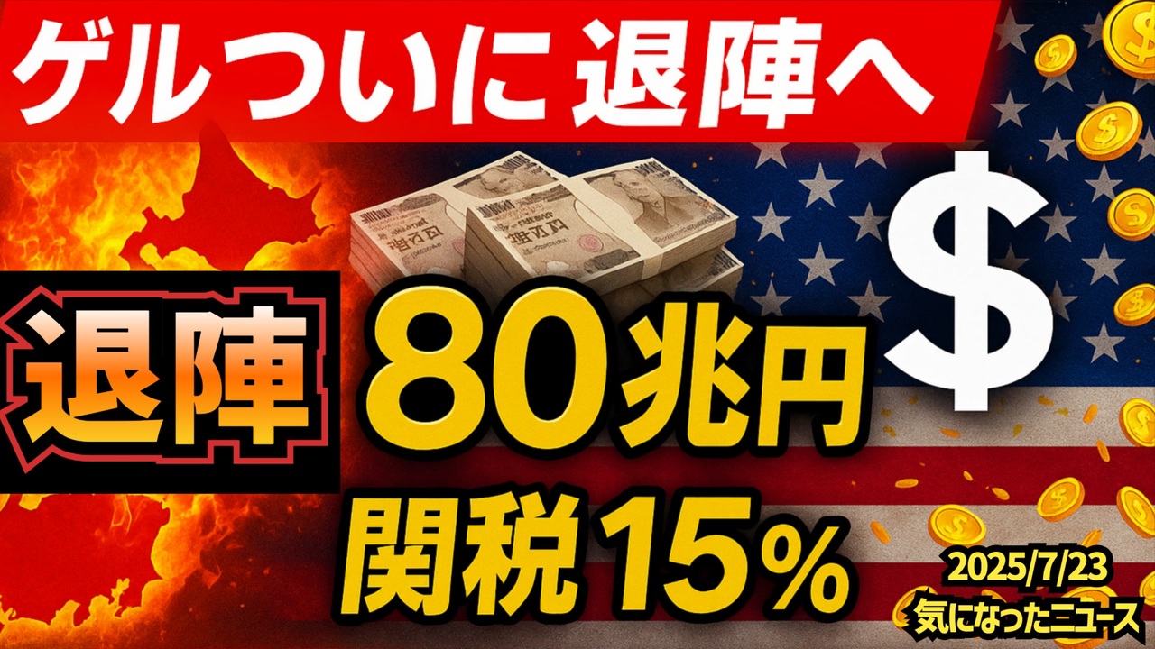 ◆ゲルついに退陣へ ~ ゲルの置き土産は関税一律15%とアメリカへの投資約80兆円(内利益の90%はアメリカへw)<a href="https://x.com/Coco2Poppin/status/1947842766408433704?t=1yWcma7IKJKlUs3PhBvSXA&s=19" target="_blank" rel="noopener nofollow">https://x.com/Coco2Poppin/status/1947842766408433704?t=1yWcma7IKJKlUs3PhBvSXA&s=19</a><br><br><br>◆今回の台本<a href="https://keiichiro8140.hatenablog.com/entry/20250723333" target="_blank" rel="noopener nofollow">https://keiichiro8140.hatenablog.com/entry/20250723333</a><br><br><br>◆YouTubeチャンネル登録よろしくお願いします<a href="https://youtube.com/@k16_888?si=1S8pLN1Tf9bGiJyV" target="_blank" rel="noopener nofollow">https://youtube.com/@k16_888?si=1S8pLN1Tf9bGiJyV</a><br><br><br>◆もしも(BAN)の時のためのマイリンク集<a href="https://lit.link/K16_888" target="_blank" rel="noopener nofollow">https://lit.link/K16_888</a><br><br><br>気になったニュース2025/7/23<br><br><br>◆もし「良かった」と思っていただけたらコーヒー1杯分のご支援いただけると動画制作の励みになります☕<a href="https://coff.ee/k16_888" target="_blank" rel="noopener nofollow">https://coff.ee/k16_888</a><br><br><br />著作権、肖像権に配慮して作成しております。<br><br>◆気になったニュースの台本!?<br>メモ代わりに作った台本をそのままあげてます<br><a href="https://keiichiro8140.hatenablog.com/." target="_blank" rel="noopener nofollow">https://keiichiro8140.hatenablog.com/.</a><br><br><br>ここからはシリーズ紹介<br><br><br>◆ ワクチン解毒・デトックス<br><a href="https://x.gd/fZweg" target="_blank" rel="noopener nofollow">https://x.gd/fZweg</a><br><br>◆ウイリアム・マキス博士のがん治療(イベルメクチン・フェンベンダゾール等)<br><a href="https://x.gd/AtFYS" target="_blank" rel="noopener nofollow">https://x.gd/AtFYS</a><br><br>◆予防接種健康被害救済制度<br><a href="https://x.gd/0xK9x" target="_blank" rel="noopener nofollow">https://x.gd/0xK9x</a><br><br>◆気になったニュース #1501~<br><br>◆ 【ショートver】気になったニュース<br><a href="https://x.gd/7MxXC" target="_blank" rel="noopener nofollow">https://x.gd/7MxXC</a><br><br>◆ 気になったニュース #1001~<br><a href="https://x.gd/Lp8gv" target="_blank" rel="noopener nofollow">https://x.gd/Lp8gv</a><br><br>◆ 気になったニュース #501~<br><a href="https://x.gd/EmbS4" target="_blank" rel="noopener nofollow">https://x.gd/EmbS4</a><br><br>◆ 気になったニュース #1~#500<br><a href="https://x.gd/uPhNb" target="_blank" rel="noopener nofollow">https://x.gd/uPhNb</a><br><br>◆ X(旧Twitter)・テレグラムで気になった情報<br><a href="https://x.gd/YG6FT" target="_blank" rel="noopener nofollow">https://x.gd/YG6FT</a><br><br>◆ 日比谷5万人パレードデ⚪生放送アーカイブ動画<br><a href="https://x.gd/3CHJv" target="_blank" rel="noopener nofollow">https://x.gd/3CHJv</a><br><br>◆日比谷5万人パレード⚪モのマイリスト作ってみました<br><a href="https://nico.ms/mylist/76828848?ref=sp_other" target="_blank" rel="noopener nofollow">https://nico.ms/mylist/76828848?ref=sp_other</a><br><br>◆3.30 令和の百姓⚪⚪<br><a href="https://www.nicovideo.jp/series/511791?ref=garage_share_other" target="_blank" rel="noopener nofollow">https://www.nicovideo.jp/series/511791?ref=garage_share_other</a><br><br>◆ 及川幸久さんの【XNEWS】シリーズ<br><a href="https://x.gd/3k78K" target="_blank" rel="noopener nofollow">https://x.gd/3k78K</a><br><br>◆これまでの動画<a href="https://x.gd/sPXoJ" target="_blank" rel="noopener nofollow">https://x.gd/sPXoJ</a><br><br>◆もしも(BAN)の時のためのマイリンク集<a href="https://lit.link/K-16_News44" target="_blank" rel="noopener nofollow">https://lit.link/K-16_News44</a><br><br>