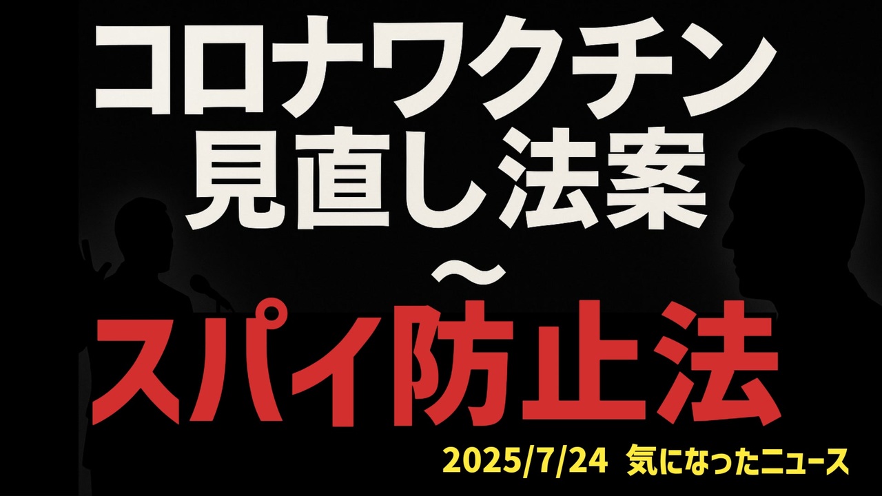 ◆コロナワクチン見直し法案 ~ そして『スパイ防止法』では党派を超えたあの比例最多得票数弁護士議員が共闘の噂!?<br><br>◇コロナワクチン見直法案<a href="https://x.com/Drponchi/status/1947850259708694585?t=Guc-yrXawSNXn5MjvnQMWw&s=19" target="_blank" rel="noopener nofollow">https://x.com/Drponchi/status/1947850259708694585?t=Guc-yrXawSNXn5MjvnQMWw&s=19</a><br><br>◇スパイ防止法<a href="https://youtu.be/zhXOfUx9opE" target="_blank" rel="noopener nofollow">https://youtu.be/zhXOfUx9opE</a><br><br><br>◆今回の台本<a href="https://keiichiro8140.hatenablog.com/entry/20250724444" target="_blank" rel="noopener nofollow">https://keiichiro8140.hatenablog.com/entry/20250724444</a><br><br><br>◆YouTubeチャンネル登録よろしくお願いします<a href="https://youtube.com/@k16_888?si=1S8pLN1Tf9bGiJyV" target="_blank" rel="noopener nofollow">https://youtube.com/@k16_888?si=1S8pLN1Tf9bGiJyV</a><br><br><br>◆もしも(BAN)の時のためのマイリンク集<a href="https://lit.link/K16_888" target="_blank" rel="noopener nofollow">https://lit.link/K16_888</a><br><br><br>気になったニュース 2025/7/24<br><br><br />著作権、肖像権に配慮して作成しております。<br><br>◆気になったニュースの台本!?<br>メモ代わりに作った台本をそのままあげてます<br><a href="https://keiichiro8140.hatenablog.com/." target="_blank" rel="noopener nofollow">https://keiichiro8140.hatenablog.com/.</a><br><br><br>ここからはシリーズ紹介<br><br><br>◆ ワクチン解毒・デトックス<br><a href="https://x.gd/fZweg" target="_blank" rel="noopener nofollow">https://x.gd/fZweg</a><br><br>◆ウイリアム・マキス博士のがん治療(イベルメクチン・フェンベンダゾール等)<br><a href="https://x.gd/AtFYS" target="_blank" rel="noopener nofollow">https://x.gd/AtFYS</a><br><br>◆予防接種健康被害救済制度<br><a href="https://x.gd/0xK9x" target="_blank" rel="noopener nofollow">https://x.gd/0xK9x</a><br><br>◆気になったニュース #1501~<br><br>◆ 【ショートver】気になったニュース<br><a href="https://x.gd/7MxXC" target="_blank" rel="noopener nofollow">https://x.gd/7MxXC</a><br><br>◆ 気になったニュース #1001~<br><a href="https://x.gd/Lp8gv" target="_blank" rel="noopener nofollow">https://x.gd/Lp8gv</a><br><br>◆ 気になったニュース #501~<br><a href="https://x.gd/EmbS4" target="_blank" rel="noopener nofollow">https://x.gd/EmbS4</a><br><br>◆ 気になったニュース #1~#500<br><a href="https://x.gd/uPhNb" target="_blank" rel="noopener nofollow">https://x.gd/uPhNb</a><br><br>◆ X(旧Twitter)・テレグラムで気になった情報<br><a href="https://x.gd/YG6FT" target="_blank" rel="noopener nofollow">https://x.gd/YG6FT</a><br><br>◆ 日比谷5万人パレードデ⚪生放送アーカイブ動画<br><a href="https://x.gd/3CHJv" target="_blank" rel="noopener nofollow">https://x.gd/3CHJv</a><br><br>◆日比谷5万人パレード⚪モのマイリスト作ってみました<br><a href="https://nico.ms/mylist/76828848?ref=sp_other" target="_blank" rel="noopener nofollow">https://nico.ms/mylist/76828848?ref=sp_other</a><br><br>◆3.30 令和の百姓⚪⚪<br><a href="https://www.nicovideo.jp/series/511791?ref=garage_share_other" target="_blank" rel="noopener nofollow">https://www.nicovideo.jp/series/511791?ref=garage_share_other</a><br><br>◆ 及川幸久さんの【XNEWS】シリーズ<br><a href="https://x.gd/3k78K" target="_blank" rel="noopener nofollow">https://x.gd/3k78K</a><br><br>◆これまでの動画<a href="https://x.gd/sPXoJ" target="_blank" rel="noopener nofollow">https://x.gd/sPXoJ</a><br><br>◆もしも(BAN)の時のためのマイリンク集<a href="https://lit.link/K-16_News44" target="_blank" rel="noopener nofollow">https://lit.link/K-16_News44</a><br><br>