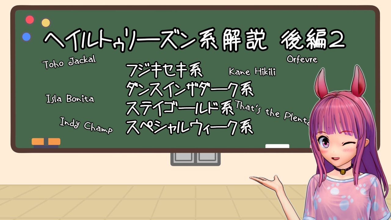ご視聴ありがとうございます<br>サンデー系の続きです<br>がんばって1週間で作りました<br>初年度産駒から4世代目までのサイアーラインを紹介します<br><br><br>【参考サイト】<br>JBISサーチ様<br><a href="https://www.jbis.or.jp/index.html" target="_blank" rel="noopener nofollow">https://www.jbis.or.jp/index.html</a><br>netkeiba様<br><a href="https://www.netkeiba.com/" target="_blank" rel="noopener nofollow">https://www.netkeiba.com/</a><br><br><br>前回:サンデー系直仔編:<a href="https://www.nicovideo.jp/watch/sm45209565" class="watch">sm45209565</a><br>次回:ひじき祭競走馬の馬名:<a href="https://www.nicovideo.jp/watch/sm45333745" class="watch">sm45333745</a><br>競馬解説動画マイリスト:<a href="https://www.nicovideo.jp/mylist/71482582" target="_blank" rel="noopener">mylist/71482582</a><br><br>ヘイルトゥリーズン系前編:<a href="https://www.nicovideo.jp/watch/sm42339313" class="watch">sm42339313</a><br>ヘイルトゥリーズン系中編:<a href="https://www.nicovideo.jp/watch/sm42405522" class="watch">sm42405522</a><br><br>BGM:<br>MusMus様<br><a href="https://musmus.main.jp/" target="_blank" rel="noopener nofollow">https://musmus.main.jp/</a><br><br>【競馬関係動画】<br>牧場見学シリーズ:<a href="https://www.nicovideo.jp/mylist/74947383" target="_blank" rel="noopener">mylist/74947383</a><br>解説動画シリーズ:<a href="https://www.nicovideo.jp/mylist/71482582" target="_blank" rel="noopener">mylist/71482582</a><br><br>【他のシリーズ】<br>ウイポ動画もしてました<br>マイリスト:<a href="https://www.nicovideo.jp/mylist/77471806" target="_blank" rel="noopener">mylist/77471806</a><br><br>他にツーリング動画も上げています<br>ツーリング動画マイリスト:<a href="https://www.nicovideo.jp/mylist/76440962" target="_blank" rel="noopener">mylist/76440962</a><br><br>X(ツイッター)<br><a href="https://twitter.com/MGixxer150" target="_blank" rel="noopener nofollow">https://twitter.com/MGixxer150</a>
