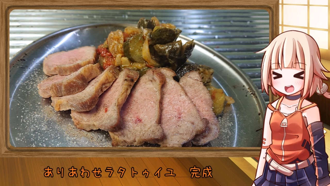 みなさんこんにちは<br>今年なぜか夏野菜で餌付けされてるかなへびです<br>なんかいっぱいもらうんで全部煮ました<br>クタクタに煮た野菜はソースとしてパスタにしても美味しいです<br>煮ちゃえば冷凍ききますしネ<br><br>豚は塩振って常温戻したのグリル突っこんで弱火放置<br>金串刺して火が入ったの確認しただけのヤツです<br>味塩コショー美味しい<br><br>なんか気分で上げた散歩動画<br>→ <a href="https://www.nicovideo.jp/watch/sm45218584" class="watch">sm45218584</a><br><br>※ 本シリーズで紹介してる作り方はあくまで手軽に済ませる<br> 事を前提にした構成になっています<br> なのでガチ勢の方々は可愛いおねちゃん眺めててくださいな<br><br><br>なにかご要望や質問、日々の私の生態等あればTwitterまで<br>ツイッター @higanbananosaku