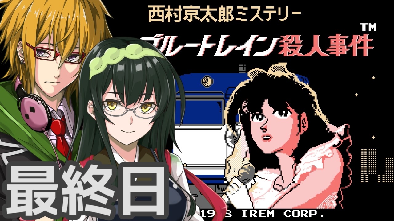 2025年7月 ファミコン動画投稿祭3の参加作品です。<br>アイレムの推理アドベンチャーゲーム「ブルートレイン殺人事件」のフルボイスプレイです。<br>通常のフルボイスプレイの他、主人公のセリフを補完し、音声だけ聞いても話がわかるようにしてあります。<br>グロテスクor暴力的な表現があるかもしれないのでご注意ください。<br>ゲームの攻略情報、シナリオ、隠し要素などのネタばれをふんだんに含みます。<br><br>■フルボイスキャスト<br>十津川警部:Voicepeak男性6<br>亀井刑事:Voicepeak男性7<br>西本刑事:Voicepeak 男性2<br>広森明美:Voicepeak 京町セイカ<br>ナレーション:A.I.Voice夜語トバリ<br>Coeiroink ネルカウニ<br>Voicepeak 彩澄りりせ<br>Coeiroink クリノクロア<br>Voiceroid 紲星あかり<br>Coeiroink 白痴ー<br><br>■案内役<br>Voiceroid水奈瀬コウ、東北ずん子<br><br>■その他使用素材<br>・ゲーム「ブルートレイン殺人事件」:アイレム株式会社<br>・立ち絵・アイコン:物見戸、輪廻、こーすけさんたまりあ、アジシオ、青トキエ、MtU、かれい<br>・ファミコン動画投稿祭3ロゴ:穂梅