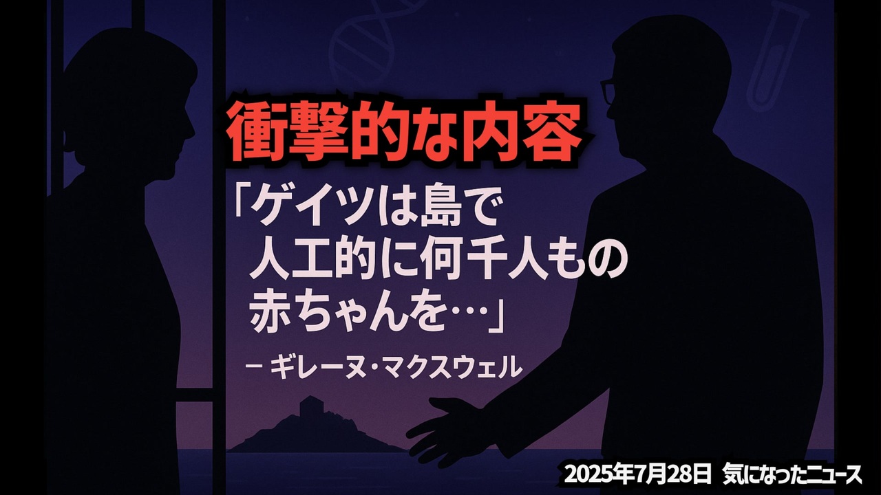 【テスト投稿】ビル・ゲイツはエプスタイン島に何千人もの赤ちゃんを人工的に生み出していた!?【陰謀回】<a href="https://x.com/tpvsean/status/1949565347805192569?t=EMYBA0mYyHFHWQaaBYQJ0w&s=19" target="_blank" rel="noopener nofollow">https://x.com/tpvsean/status/1949565347805192569?t=EMYBA0mYyHFHWQaaBYQJ0w&s=19</a><br><br>◆今回の台本<a href="https://keiichiro8140.hatenablog.com/entry/202507288884444" target="_blank" rel="noopener nofollow">https://keiichiro8140.hatenablog.com/entry/202507288884444</a><br><br>◆チャンネル登録よろしくお願いします<a href="https://youtube.com/@k16_888?si=1S8pLN1Tf9bGiJyV" target="_blank" rel="noopener nofollow">https://youtube.com/@k16_888?si=1S8pLN1Tf9bGiJyV</a><br><br>◆今回の動画<br><br>◆もしも(BAN)の時のためのマイリンク集<a href="https://lit.link/K16_888" target="_blank" rel="noopener nofollow">https://lit.link/K16_888</a><br><br>気になったニュース 2025/7/28<br><br><br />著作権、肖像権に配慮して作成しております。<br><br>◆気になったニュースの台本!?<br>メモ代わりに作った台本をそのままあげてます<br><a href="https://keiichiro8140.hatenablog.com/." target="_blank" rel="noopener nofollow">https://keiichiro8140.hatenablog.com/.</a><br><br><br>ここからはシリーズ紹介<br><br><br>◆ ワクチン解毒・デトックス<br><a href="https://x.gd/fZweg" target="_blank" rel="noopener nofollow">https://x.gd/fZweg</a><br><br>◆ウイリアム・マキス博士のがん治療(イベルメクチン・フェンベンダゾール等)<br><a href="https://x.gd/AtFYS" target="_blank" rel="noopener nofollow">https://x.gd/AtFYS</a><br><br>◆予防接種健康被害救済制度<br><a href="https://x.gd/0xK9x" target="_blank" rel="noopener nofollow">https://x.gd/0xK9x</a><br><br>◆気になったニュース #1501~<br><br>◆ 【ショートver】気になったニュース<br><a href="https://x.gd/7MxXC" target="_blank" rel="noopener nofollow">https://x.gd/7MxXC</a><br><br>◆ 気になったニュース #1001~<br><a href="https://x.gd/Lp8gv" target="_blank" rel="noopener nofollow">https://x.gd/Lp8gv</a><br><br>◆ 気になったニュース #501~<br><a href="https://x.gd/EmbS4" target="_blank" rel="noopener nofollow">https://x.gd/EmbS4</a><br><br>◆ 気になったニュース #1~#500<br><a href="https://x.gd/uPhNb" target="_blank" rel="noopener nofollow">https://x.gd/uPhNb</a><br><br>◆ X(旧Twitter)・テレグラムで気になった情報<br><a href="https://x.gd/YG6FT" target="_blank" rel="noopener nofollow">https://x.gd/YG6FT</a><br><br>◆ 日比谷5万人パレードデ⚪生放送アーカイブ動画<br><a href="https://x.gd/3CHJv" target="_blank" rel="noopener nofollow">https://x.gd/3CHJv</a><br><br>◆日比谷5万人パレード⚪モのマイリスト作ってみました<br><a href="https://nico.ms/mylist/76828848?ref=sp_other" target="_blank" rel="noopener nofollow">https://nico.ms/mylist/76828848?ref=sp_other</a><br><br>◆3.30 令和の百姓⚪⚪<br><a href="https://www.nicovideo.jp/series/511791?ref=garage_share_other" target="_blank" rel="noopener nofollow">https://www.nicovideo.jp/series/511791?ref=garage_share_other</a><br><br>◆ 及川幸久さんの【XNEWS】シリーズ<br><a href="https://x.gd/3k78K" target="_blank" rel="noopener nofollow">https://x.gd/3k78K</a><br><br>◆これまでの動画<a href="https://x.gd/sPXoJ" target="_blank" rel="noopener nofollow">https://x.gd/sPXoJ</a><br><br>◆もしも(BAN)の時のためのマイリンク集<a href="https://lit.link/K-16_News44" target="_blank" rel="noopener nofollow">https://lit.link/K-16_News44</a><br><br>