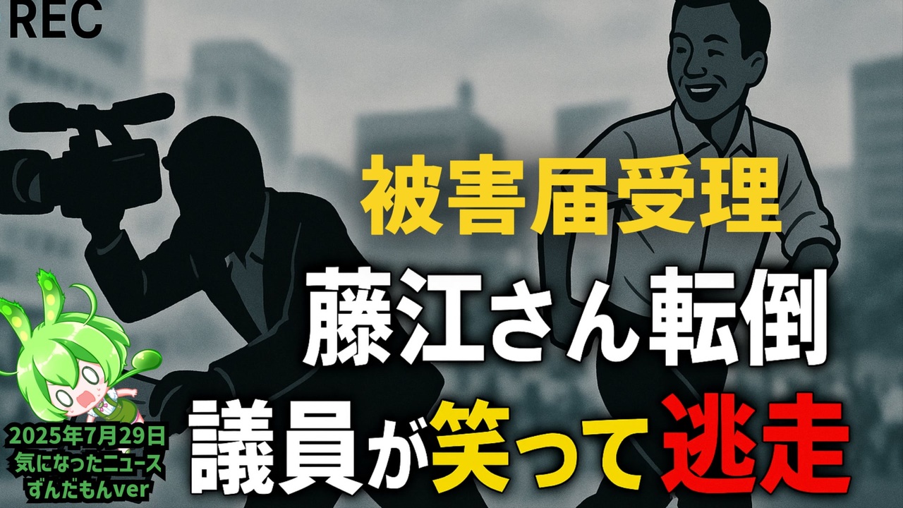 【テスト投稿中】◆衝撃!国民民主党議員による転倒事件!藤江さんが被害届提出で真相明らかに!【ずんだもんver】<a href="https://x.com/JINKOUZOUKA_jp/status/1949712117009146205?t=PVHQ6C0dX8W2m3xRARi96g&s=19" target="_blank" rel="noopener nofollow">https://x.com/JINKOUZOUKA_jp/status/1949712117009146205?t=PVHQ6C0dX8W2m3xRARi96g&s=19</a><br><br>◆今回の台本<a href="https://keiichiro8140.hatenablog.com/entry/20250729888999" target="_blank" rel="noopener nofollow">https://keiichiro8140.hatenablog.com/entry/20250729888999</a><br><br>◆チャンネル登録よろしくお願いします<a href="https://youtube.com/@k16_888?si=1S8pLN1Tf9bGiJyV" target="_blank" rel="noopener nofollow">https://youtube.com/@k16_888?si=1S8pLN1Tf9bGiJyV</a><br><br>◆もしも(BAN)の時のためのマイリンク集<a href="https://lit.link/K16_888" target="_blank" rel="noopener nofollow">https://lit.link/K16_888</a><br><br>動画音声:VOICEVOX:ずんだもん <a href="https://voicevox.hiroshiba.jp/" target="_blank" rel="noopener nofollow">https://voicevox.hiroshiba.jp/</a> <br>立ち絵:坂本アヒルさん<a href="https://sp.seiga.nicovideo.jp/seiga/#!/im10788496" target="_blank" rel="noopener nofollow">https://sp.seiga.nicovideo.jp/seiga/#!/im10788496</a><br><br><br>気になったニュース 2025/7/29<br><br><br />著作権、肖像権に配慮して作成しております。<br><br>◆気になったニュースの台本!?<br>メモ代わりに作った台本をそのままあげてます<br><a href="https://keiichiro8140.hatenablog.com/." target="_blank" rel="noopener nofollow">https://keiichiro8140.hatenablog.com/.</a><br><br><br>ここからはシリーズ紹介<br><br><br>◆ ワクチン解毒・デトックス<br><a href="https://x.gd/fZweg" target="_blank" rel="noopener nofollow">https://x.gd/fZweg</a><br><br>◆ウイリアム・マキス博士のがん治療(イベルメクチン・フェンベンダゾール等)<br><a href="https://x.gd/AtFYS" target="_blank" rel="noopener nofollow">https://x.gd/AtFYS</a><br><br>◆予防接種健康被害救済制度<br><a href="https://x.gd/0xK9x" target="_blank" rel="noopener nofollow">https://x.gd/0xK9x</a><br><br>◆気になったニュース #1501~<br><br>◆ 【ショートver】気になったニュース<br><a href="https://x.gd/7MxXC" target="_blank" rel="noopener nofollow">https://x.gd/7MxXC</a><br><br>◆ 気になったニュース #1001~<br><a href="https://x.gd/Lp8gv" target="_blank" rel="noopener nofollow">https://x.gd/Lp8gv</a><br><br>◆ 気になったニュース #501~<br><a href="https://x.gd/EmbS4" target="_blank" rel="noopener nofollow">https://x.gd/EmbS4</a><br><br>◆ 気になったニュース #1~#500<br><a href="https://x.gd/uPhNb" target="_blank" rel="noopener nofollow">https://x.gd/uPhNb</a><br><br>◆ X(旧Twitter)・テレグラムで気になった情報<br><a href="https://x.gd/YG6FT" target="_blank" rel="noopener nofollow">https://x.gd/YG6FT</a><br><br>◆ 日比谷5万人パレードデ⚪生放送アーカイブ動画<br><a href="https://x.gd/3CHJv" target="_blank" rel="noopener nofollow">https://x.gd/3CHJv</a><br><br>◆日比谷5万人パレード⚪モのマイリスト作ってみました<br><a href="https://nico.ms/mylist/76828848?ref=sp_other" target="_blank" rel="noopener nofollow">https://nico.ms/mylist/76828848?ref=sp_other</a><br><br>◆3.30 令和の百姓⚪⚪<br><a href="https://www.nicovideo.jp/series/511791?ref=garage_share_other" target="_blank" rel="noopener nofollow">https://www.nicovideo.jp/series/511791?ref=garage_share_other</a><br><br>◆ 及川幸久さんの【XNEWS】シリーズ<br><a href="https://x.gd/3k78K" target="_blank" rel="noopener nofollow">https://x.gd/3k78K</a><br><br>◆これまでの動画<a href="https://x.gd/sPXoJ" target="_blank" rel="noopener nofollow">https://x.gd/sPXoJ</a><br><br>◆もしも(BAN)の時のためのマイリンク集<a href="https://lit.link/K-16_News44" target="_blank" rel="noopener nofollow">https://lit.link/K-16_News44</a><br><br>
