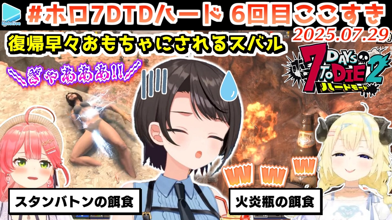 トワ視点はありませんでした。<br><br><a href="#" class="seekTime" data-seekTime="00:00" onclick="seekNicoPlayer('#00:00'); return false;">#00:00</a> おかえりスバルちゃん<br><a href="#" class="seekTime" data-seekTime="00:55" onclick="seekNicoPlayer('#00:55'); return false;">#00:55</a> 次の拠点案<br><a href="#" class="seekTime" data-seekTime="01:13" onclick="seekNicoPlayer('#01:13'); return false;">#01:13</a> スバルを迎えに<br><a href="#" class="seekTime" data-seekTime="01:40" onclick="seekNicoPlayer('#01:40'); return false;">#01:40</a> 物騒なわため<br><a href="#" class="seekTime" data-seekTime="02:04" onclick="seekNicoPlayer('#02:04'); return false;">#02:04</a> スタンバトンの痛みを知るスバル<br><a href="#" class="seekTime" data-seekTime="03:57" onclick="seekNicoPlayer('#03:57'); return false;">#03:57</a> 鼻かみルームを作ろう<br><a href="#" class="seekTime" data-seekTime="04:17" onclick="seekNicoPlayer('#04:17'); return false;">#04:17</a> ウキウキわため<br><a href="#" class="seekTime" data-seekTime="05:39" onclick="seekNicoPlayer('#05:39'); return false;">#05:39</a> 鼻かむルーム建設<br><a href="#" class="seekTime" data-seekTime="06:29" onclick="seekNicoPlayer('#06:29'); return false;">#06:29</a> 今日のわため<br><a href="#" class="seekTime" data-seekTime="07:05" onclick="seekNicoPlayer('#07:05'); return false;">#07:05</a> たまごっちに釣られるトワ様<br><a href="#" class="seekTime" data-seekTime="08:27" onclick="seekNicoPlayer('#08:27'); return false;">#08:27</a> 道路を走れ<br><a href="#" class="seekTime" data-seekTime="10:38" onclick="seekNicoPlayer('#10:38'); return false;">#10:38</a> ビリビリ天丼<br><br>元動画様はこちら<br>【 ホロ7DTDハード】DAY6/アロエを大回収!!! 砂漠バイオーム編【ホロライブ/白上フブキ】<br><a href="https://youtu.be/6D0c5VJ0JAg" target="_blank" rel="noopener nofollow">https://youtu.be/6D0c5VJ0JAg</a><br><br>【ホロ7DTDハード】お久しぶりです!!!!!!!!ゾンビVS人間のバトルしゅばあああああああああああああああ!!!!!:7days to die【ホロライブ/大空スバル】<br><a href="https://youtu.be/rSOeMd0ThiU" target="_blank" rel="noopener nofollow">https://youtu.be/rSOeMd0ThiU</a><br><br>【 ホロ7DTDハード 】襲撃拠点をどうする??砂漠でサバイバル生活【大神ミオ視点】<br><a href="https://youtu.be/rJIfCiNupaA" target="_blank" rel="noopener nofollow">https://youtu.be/rJIfCiNupaA</a><br><br>6【ホロ7DTDハード】砂漠だあああ‼ハードモードゾンビの世界で生き残るにぇ!!!!!【ホロライブ/さくらみこ】<br><a href="https://youtu.be/n_Mgw9xtRcs" target="_blank" rel="noopener nofollow">https://youtu.be/n_Mgw9xtRcs</a><br><br>【 DAY6 | ホロ7DTDハード 】砂漠でクエスト回すぞ~~!🏜🧟【 猫又おかゆ視点/ホロライブ 】<br><a href="https://youtu.be/jCzBZNp0j8k" target="_blank" rel="noopener nofollow">https://youtu.be/jCzBZNp0j8k</a><br><br>【 ホロ7DTDハード | DAY6 】DAY6!砂漠のバイオームに初上陸!7Days to Die!【角巻わため/ホロライブ4期生】<br><a href="https://youtu.be/QjH6L0V-X8Q" target="_blank" rel="noopener nofollow">https://youtu.be/QjH6L0V-X8Q</a><br><br>フブキCh。白上フブキ <a href="https://t.co/R9TNhC7sPO" target="_blank" rel="noopener nofollow">https://t.co/R9TNhC7sPO</a><br>Subaru Ch. 大空スバル <a href="https://t.co/1XIcn8rNbM" target="_blank" rel="noopener nofollow">https://t.co/1XIcn8rNbM</a><br>Mio Channel 大神ミオ <a href="https://t.co/srC9Gb4Mxi" target="_blank" rel="noopener nofollow">https://t.co/srC9Gb4Mxi</a><br>Miko Ch. さくらみこ <a href="https://t.co/FM8eBkuiOO" target="_blank" rel="noopener nofollow">https://t.co/FM8eBkuiOO</a><br>Okayu Ch. 猫又おかゆ <a href="https://t.co/JoeI3u9YjS" target="_blank" rel="noopener nofollow">https://t.co/JoeI3u9YjS</a><br>Watame Ch. 角巻わため <a href="https://t.co/gE06SdvpNX" target="_blank" rel="noopener nofollow">https://t.co/gE06SdvpNX</a><br>Towa Ch. 常闇トワ <a href="https://t.co/w6M3gpLfyP" target="_blank" rel="noopener nofollow">https://t.co/w6M3gpLfyP</a><br /><span style="color: #b7b7b7; font-size: 10px;">ホロライブ切り抜き/なめたけ <a href="https://t.co/CBwJLnYR2c" target="_blank" rel="noopener nofollow">https://t.co/CBwJLnYR2c</a></span>
