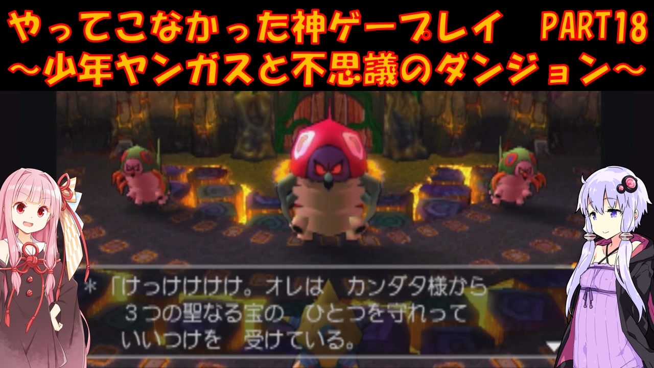 PS2 少年ヤンガスと不思議のダンジョンをプレイ<br>ゆかりさんはメジャーじゃないゲームをやる俺カッケー族だったのでドラクエをやったことがありませんでした(DSのⅤ以外)<br><br>茜:クッソ熱いところのボスにムシを配置するセンス流石よな<br>ゆ:フレイムとかにしてもよかっただろうに<br><br>PART1:<a href="https://www.nicovideo.jp/watch/sm45104666" target="_blank" rel="noopener nofollow">https://www.nicovideo.jp/watch/sm45104666</a><br><br>各DQシリーズ第1回リンク<br>DQ1:<a href="https://www.nicovideo.jp/watch/sm41819145" target="_blank" rel="noopener nofollow">https://www.nicovideo.jp/watch/sm41819145</a><br>DQ2:<a href="https://www.nicovideo.jp/watch/sm41895278" target="_blank" rel="noopener nofollow">https://www.nicovideo.jp/watch/sm41895278</a><br>DQ3:<a href="https://www.nicovideo.jp/watch/sm42034398" target="_blank" rel="noopener nofollow">https://www.nicovideo.jp/watch/sm42034398</a><br>DQ4:<a href="https://www.nicovideo.jp/watch/sm42520974" target="_blank" rel="noopener nofollow">https://www.nicovideo.jp/watch/sm42520974</a><br>DQ5:<a href="https://www.nicovideo.jp/watch/sm42848575" target="_blank" rel="noopener nofollow">https://www.nicovideo.jp/watch/sm42848575</a><br>DQ6:<a href="https://www.nicovideo.jp/watch/sm43080264" target="_blank" rel="noopener nofollow">https://www.nicovideo.jp/watch/sm43080264</a><br>DQ7:<a href="https://www.nicovideo.jp/watch/sm43851863" target="_blank" rel="noopener nofollow">https://www.nicovideo.jp/watch/sm43851863</a><br>DQ8:<a href="https://www.nicovideo.jp/watch/sm44676588" target="_blank" rel="noopener nofollow">https://www.nicovideo.jp/watch/sm44676588</a><br>DQM1:<a href="https://www.nicovideo.jp/watch/sm43525709" target="_blank" rel="noopener nofollow">https://www.nicovideo.jp/watch/sm43525709</a><br>DQMCH:<a href="https://www.nicovideo.jp/watch/sm44443421" target="_blank" rel="noopener nofollow">https://www.nicovideo.jp/watch/sm44443421</a><br><br>動画内で使用させていただいた素材<br>【イラスト】<br>結月ゆかり→ペテン師様:<a href="https://seiga.nicovideo.jp/seiga/im5494168" target="_blank" rel="noopener nofollow">https://seiga.nicovideo.jp/seiga/im5494168</a><br>琴葉茜→ユメのオワリ様:<a href="https://seiga.nicovideo.jp/seiga/im10706241" target="_blank" rel="noopener nofollow">https://seiga.nicovideo.jp/seiga/im10706241</a><br><br>【音声】<br>A.I.Voice:琴葉茜<br><a href="https://aivoice.jp/product/kotonoha/" target="_blank" rel="noopener nofollow">https://aivoice.jp/product/kotonoha/</a><br><br>A.I.Voice:結月ゆかり<br><a href="https://aivoice.jp/product/yukari/" target="_blank" rel="noopener nofollow">https://aivoice.jp/product/yukari/</a><br><br>【その他素材】<br><br>この動画で利用している株式会社スクウェア・エニックスを代表とする共同著作者が権利を所有する著作物及びスギヤマ工房有限会社が権利を所有する楽曲の転載・配布は禁止いたします。<br>© 2006 ARMOR PROJECT/BIRD STUDIO/SQUARE ENIX All Rights Reserved.<br>© SUGIYAMA KOBO
