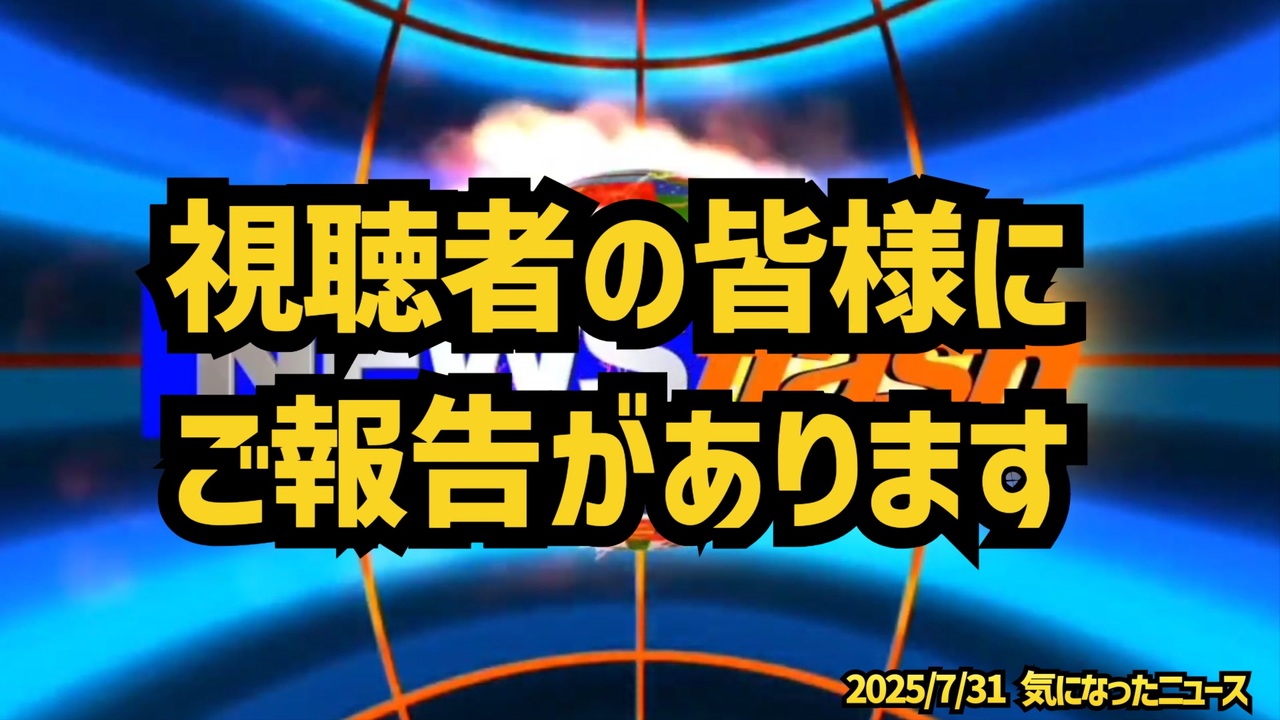 動画に関する大事なご報告です<br><br><br>◆今回の台本<a href="https://keiichiro8140.hatenablog.com/entry/2025073199999" target="_blank" rel="noopener nofollow">https://keiichiro8140.hatenablog.com/entry/2025073199999</a><br><br><br><br />著作権、肖像権に配慮して作成しております。<br><br>◆気になったニュースの台本!?<br>メモ代わりに作った台本をそのままあげてます<br><a href="https://keiichiro8140.hatenablog.com/." target="_blank" rel="noopener nofollow">https://keiichiro8140.hatenablog.com/.</a><br><br><br>ここからはシリーズ紹介<br><br><br>◆ ワクチン解毒・デトックス<br><a href="https://x.gd/fZweg" target="_blank" rel="noopener nofollow">https://x.gd/fZweg</a><br><br>◆ウイリアム・マキス博士のがん治療(イベルメクチン・フェンベンダゾール等)<br><a href="https://x.gd/AtFYS" target="_blank" rel="noopener nofollow">https://x.gd/AtFYS</a><br><br>◆予防接種健康被害救済制度<br><a href="https://x.gd/0xK9x" target="_blank" rel="noopener nofollow">https://x.gd/0xK9x</a><br><br>◆気になったニュース #1501~<br><br>◆ 【ショートver】気になったニュース<br><a href="https://x.gd/7MxXC" target="_blank" rel="noopener nofollow">https://x.gd/7MxXC</a><br><br>◆ 気になったニュース #1001~<br><a href="https://x.gd/Lp8gv" target="_blank" rel="noopener nofollow">https://x.gd/Lp8gv</a><br><br>◆ 気になったニュース #501~<br><a href="https://x.gd/EmbS4" target="_blank" rel="noopener nofollow">https://x.gd/EmbS4</a><br><br>◆ 気になったニュース #1~#500<br><a href="https://x.gd/uPhNb" target="_blank" rel="noopener nofollow">https://x.gd/uPhNb</a><br><br>◆ X(旧Twitter)・テレグラムで気になった情報<br><a href="https://x.gd/YG6FT" target="_blank" rel="noopener nofollow">https://x.gd/YG6FT</a><br><br>◆ 日比谷5万人パレードデ⚪生放送アーカイブ動画<br><a href="https://x.gd/3CHJv" target="_blank" rel="noopener nofollow">https://x.gd/3CHJv</a><br><br>◆日比谷5万人パレード⚪モのマイリスト作ってみました<br><a href="https://nico.ms/mylist/76828848?ref=sp_other" target="_blank" rel="noopener nofollow">https://nico.ms/mylist/76828848?ref=sp_other</a><br><br>◆3.30 令和の百姓⚪⚪<br><a href="https://www.nicovideo.jp/series/511791?ref=garage_share_other" target="_blank" rel="noopener nofollow">https://www.nicovideo.jp/series/511791?ref=garage_share_other</a><br><br>◆ 及川幸久さんの【XNEWS】シリーズ<br><a href="https://x.gd/3k78K" target="_blank" rel="noopener nofollow">https://x.gd/3k78K</a><br><br>◆これまでの動画<a href="https://x.gd/sPXoJ" target="_blank" rel="noopener nofollow">https://x.gd/sPXoJ</a><br><br>◆もしも(BAN)の時のためのマイリンク集<a href="https://lit.link/K-16_News44" target="_blank" rel="noopener nofollow">https://lit.link/K-16_News44</a><br><br>