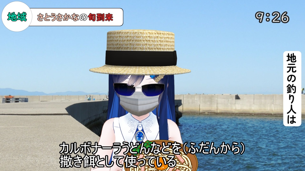 <span style="font-size: 24px;">あぇ?この子湊音ちゃんでねぇなぁ!?双葉さんどごの!!<br>おめぇもおぼえでらべ!?同じクラスだったべなぁ!<br>あれまぁ~おっぎぐなっでまだぁ~!</span><br><br><br><br><br>使用素材<br>ソフトウェアトーク<br>VoiSona_Talk さとうささら、すずきつづみ、双葉湊音、小春六花<br>VOICEPEAK 小春六花<br><br>動画素材:NHKクリエイティブライブラリー<br>打ち寄せる波 ズームアウト(三重県 七里御浜)<br><a href="https://www2.nhk.or.jp/archives/movies/?id=D0002021191_00000" target="_blank" rel="noopener nofollow">https://www2.nhk.or.jp/archives/movies/?id=D0002021191_00000</a><br>波打ち際の釣り人(三重県 七里御浜)<br><a href="https://www2.nhk.or.jp/archives/movies/?id=D0002021190_00000" target="_blank" rel="noopener nofollow">https://www2.nhk.or.jp/archives/movies/?id=D0002021190_00000</a><br><br>音素材:効果音ラボ 水面に石投げ2<br><a href="https://soundeffect-lab.info/" target="_blank" rel="noopener nofollow">https://soundeffect-lab.info/</a><br> VSQplus 波 26<br><a href="https://vsq.co.jp/plus/" target="_blank" rel="noopener nofollow">https://vsq.co.jp/plus/</a><br>写真AC:<br>ケラマブルーの海面 背景画像 ID:24708546<br>堤防釣り ID:26083286<br>イカ釣りのエギ ID:27620407<br>イラストAC:<br>カルボナーラうどん-4c ID:22852683<br>ニコニコモンズ:<br>NHK ニューススタジオ背景 <a href="https://commons.nicovideo.jp/works/nc268388" target="_blank" rel="noopener">nc268388</a><br>テレビ局風ニューステロップベースC <a href="https://commons.nicovideo.jp/works/nc222156" target="_blank" rel="noopener">nc222156</a><br>ニコニコ静画:<br>からきし式_さとうさかな <a href="https://seiga.nicovideo.jp/seiga/im10892271" target="_blank" rel="noopener">im10892271</a><br>双葉湊音 公式MMDモデル <a href="https://3d.nicovideo.jp/works/td88813" target="_blank" rel="noopener">td88813</a><br>マスク【MMDアクセサリ配布】 <a href="https://seiga.nicovideo.jp/seiga/im10081740" target="_blank" rel="noopener">im10081740</a><br>【MMD-OMF5参加作品】多機能型サングラス <a href="https://seiga.nicovideo.jp/seiga/im4876465" target="_blank" rel="noopener">im4876465</a><br>【MMD】麦わら帽子アクセサリ <a href="https://seiga.nicovideo.jp/seiga/im2312867" target="_blank" rel="noopener">im2312867</a><br>