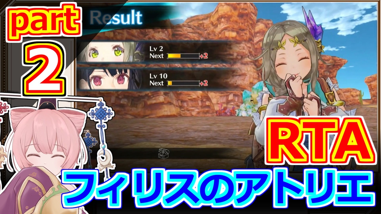 ソフィーRTA(<a href="https://www.nicovideo.jp/series/522874" target="_blank" rel="noopener">series/522874</a>)に続き、フィリスのアトリエのRTAです<br>週2ペースで更新予定ですので、よろしくお願いします!<br><br>◇注意事項<br>この動画にはフィリスのアトリエ並びに、<br>アトリエシリーズ全般のネタバレが含まれます。<br>ご視聴の際はご注意ください。<br>---------------------------------------------------------------------------------------------<br>◇著作権表示<br>©コーエーテクモゲームス<br>---------------------------------------------------------------------------------------------<br><span style="font-size: 18px;">最新作!</span><br><span style="color: #cc0000; font-size: 24px;"><strong>紅</strong></span><span style="font-size: 24px;">の錬金術士と</span><span style="color: #666666; font-size: 24px;"><strong>白</strong></span><span style="font-size: 24px;">の守護者</span> <span style="color: #b7b7b7; font-size: 10px;">〜レスレリアーナのアトリエ〜</span><br><br><span style="font-size: 24px;">2025/09/26 </span><span style="font-size: 18px;">発売決定!!!!!!</span><br><br>↓ホームページのリンク<br><strong><a href="https://atelier.games/resleriana_rw/jp/" target="_blank" rel="noopener nofollow">https://atelier.games/resleriana_rw/jp/</a></strong><br><br>---------------------------------------------------------------------------------------------<br>◇レギュレーション<br>難易度:Normal<br>計測区間:NewGame選択~エルトナの扉の前で『錬金術を究める!』を選択した瞬間<br>ルール:①公認試験で70点以上を取り、ソフィーを撃破する<br> ②双神エムエルを撃破する<br> ③DLC衣装の使用は禁止